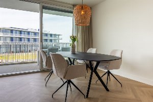 De ruime luxe ingerichte keuken is voorzien van luxe inbouwapparatuur zoals een vaatwasser, twee ovens, inductiekookplaat, koel-vriescombinatie en wijnklimaatkast. Voor de echte koffieliefhebber is er een Nespresso koffiemachine aanwezig. Aan de sfeervolle eettafel geniet u van avonden lang tafelen met uw hele gezelschap. In de inpandige berging heeft u de beschikking over een wasmachine en wasdroger. Tevens is er een extra berging waar u de fietsen kunt stallen. Het appartement heeft twee privé parkeerplaatsen en een eigen ligplaats in de jachthaven (Lengte: max. 8 meter. Diepgang: max. 2 - 2,5 meter). Zo kunt u uw eigen boot afmeren bij uw appartement en op ieder gewenst moment het Veerse Meer op varen voor een dagtocht naar Middelburg of het pittoreske Veere.