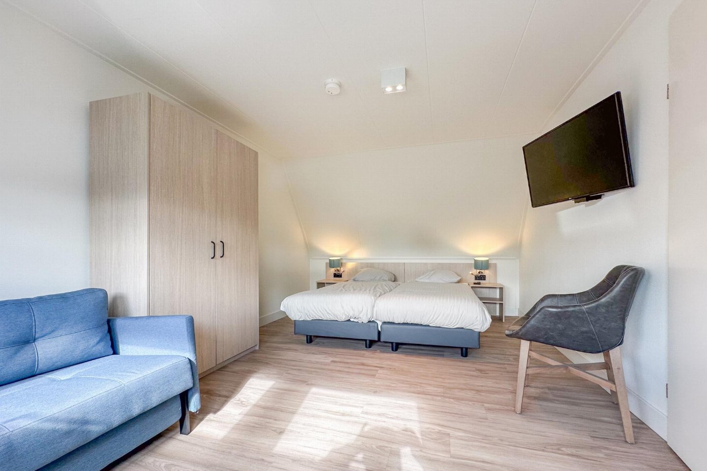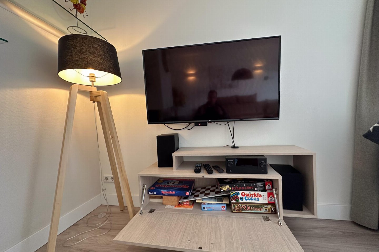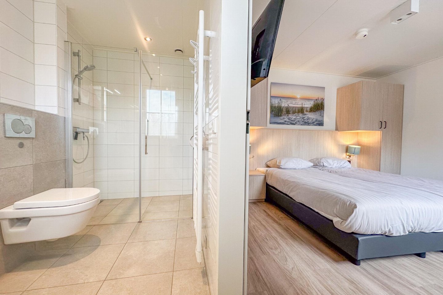 Begane grond: (hal, open keuken(waterkoker, fornuis, afzuigkap, koffiezetapparaat(nespresso cups), oven, magnetron, afwasmachine, koelkast( vriesvak)), woon/eetkamer(TV(flatscreen, smart TV), eettafel, sfeerhaard, zithoek), slaapkamer met badkamer(2x 1-pers. bed, douche, wastafel, wc), toilet(wc), berging(wasdroger, wasmachine, stofzuiger))