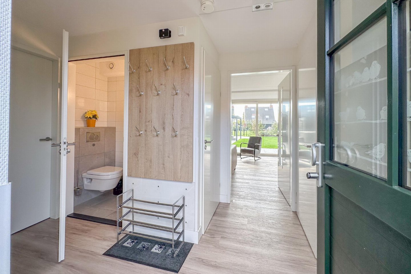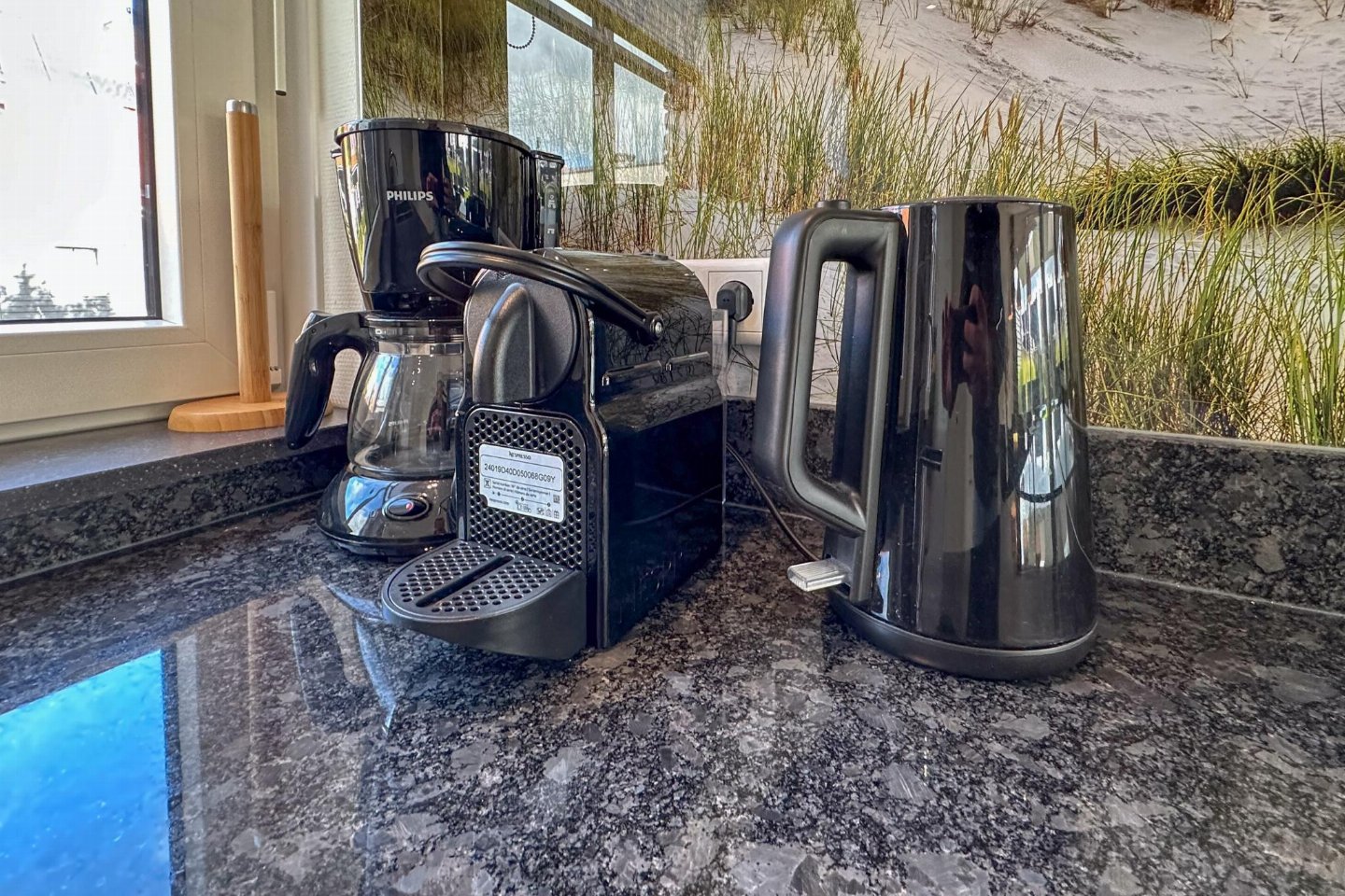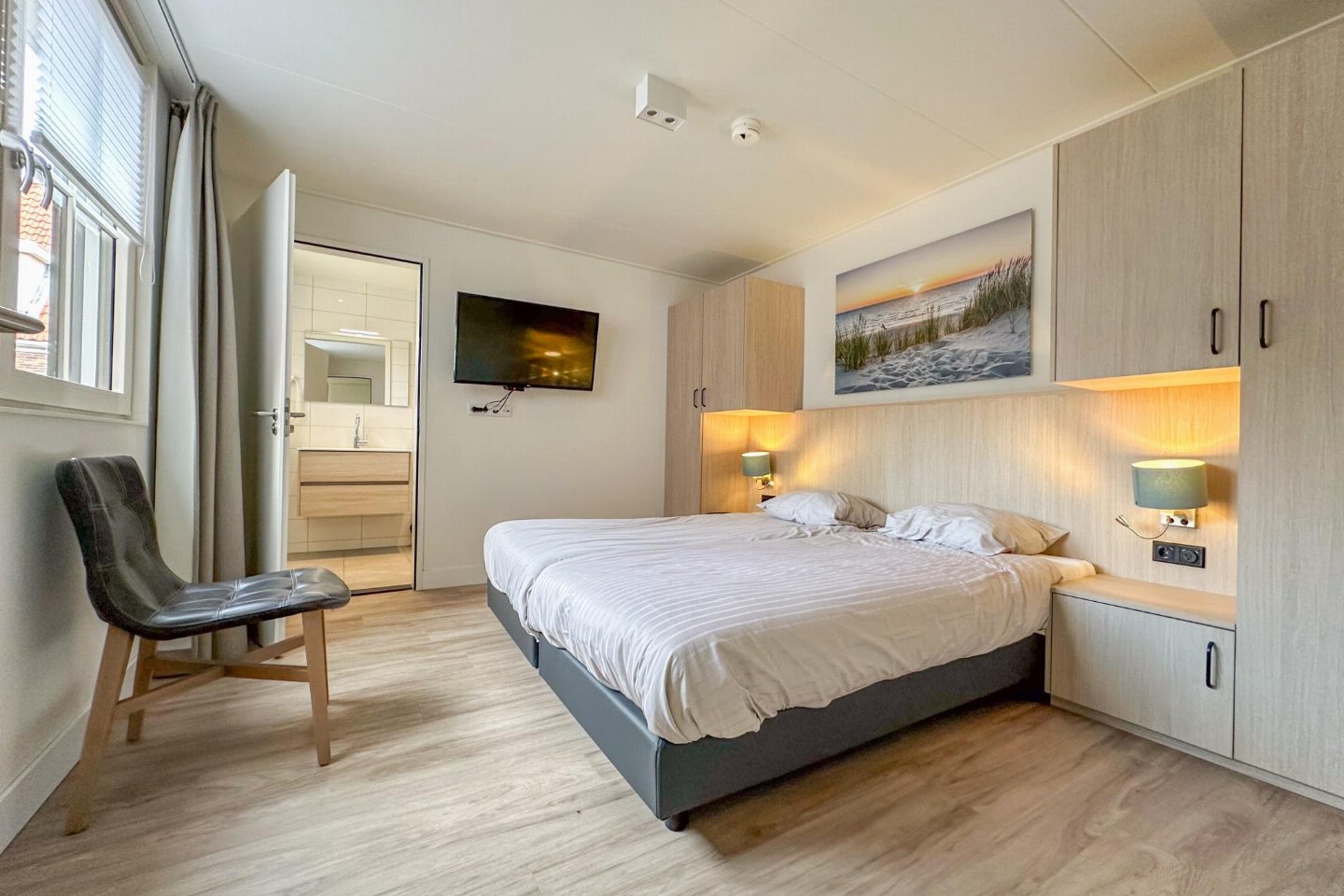 Begane grond: (hal, open keuken(waterkoker, fornuis, afzuigkap, koffiezetapparaat(nespresso cups), oven, magnetron, afwasmachine, koelkast( vriesvak)), woon/eetkamer(TV(flatscreen, smart TV), eettafel, sfeerhaard, zithoek), slaapkamer met badkamer(2x 1-pers. bed, douche, wastafel, wc), toilet(wc), berging(wasdroger, wasmachine, stofzuiger))