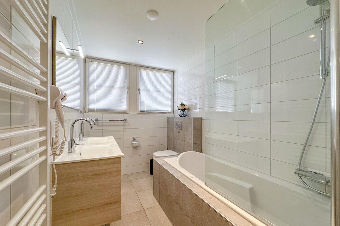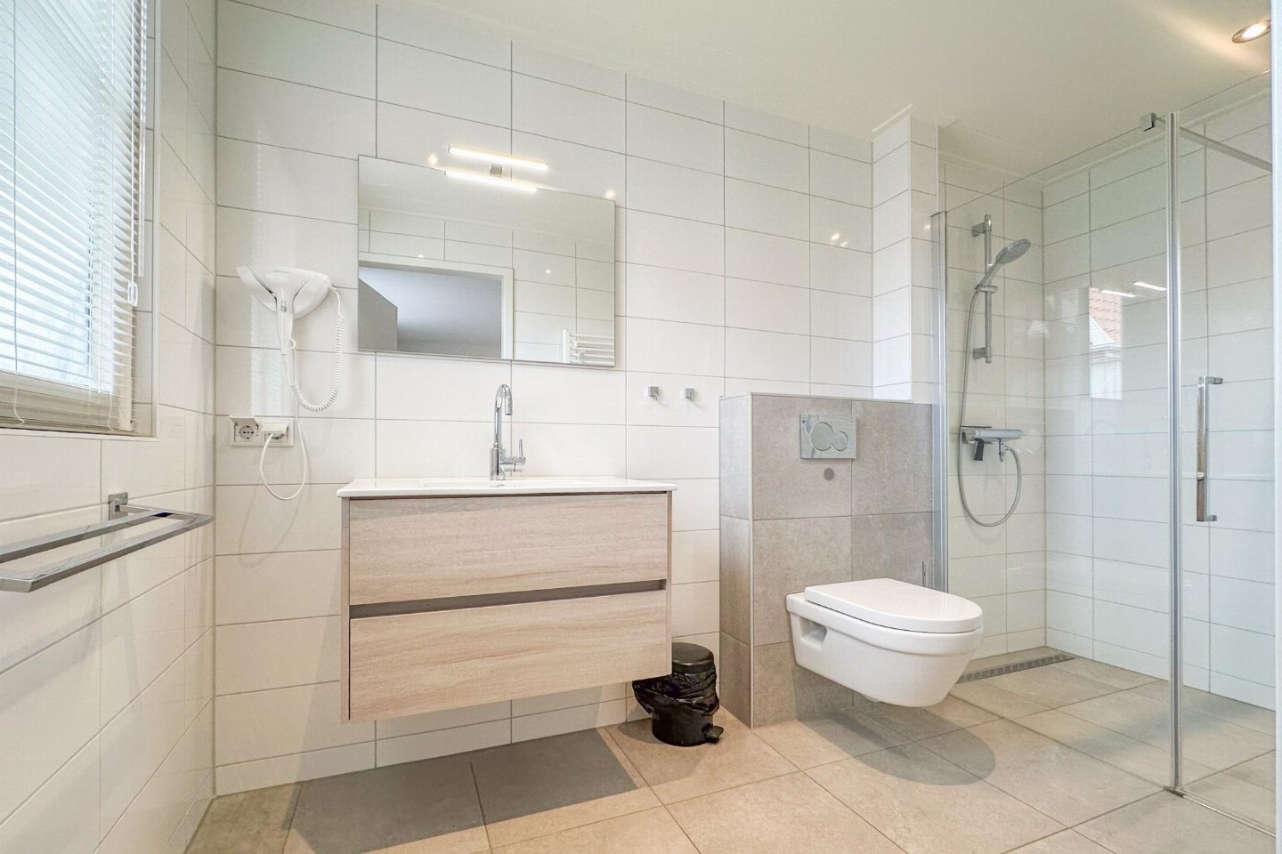 Op de 1e etage: (2x slaapkamer(2x 1-pers. bed(90 x 210 cm), TV(flatscreen)), badkamer(ligbad, douche, wastafel, wc, haardroger), overloop, traphekje)
