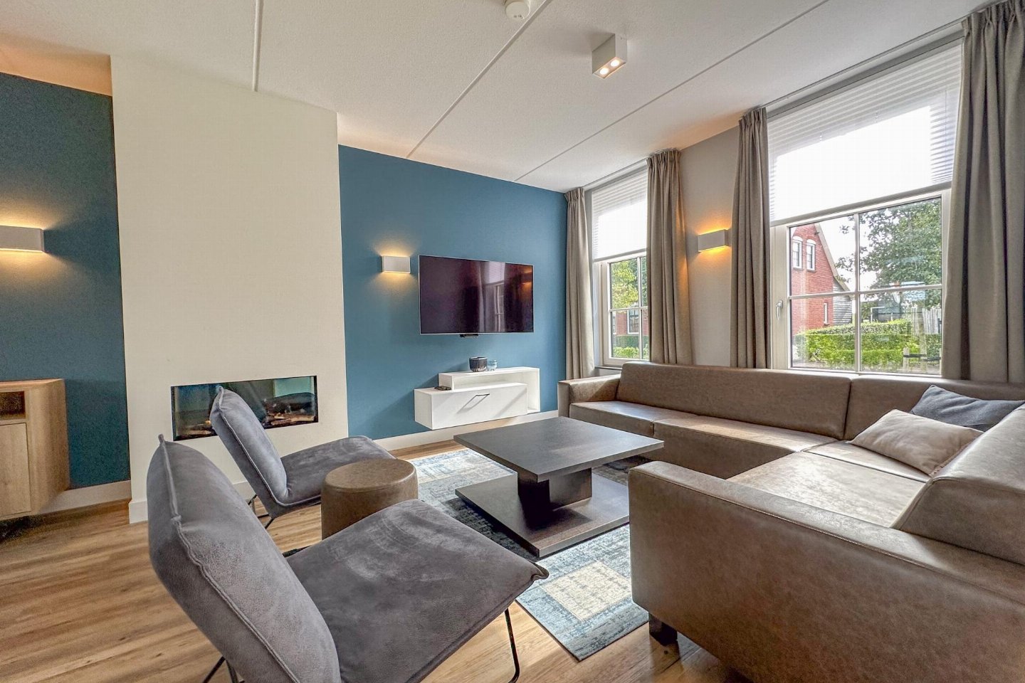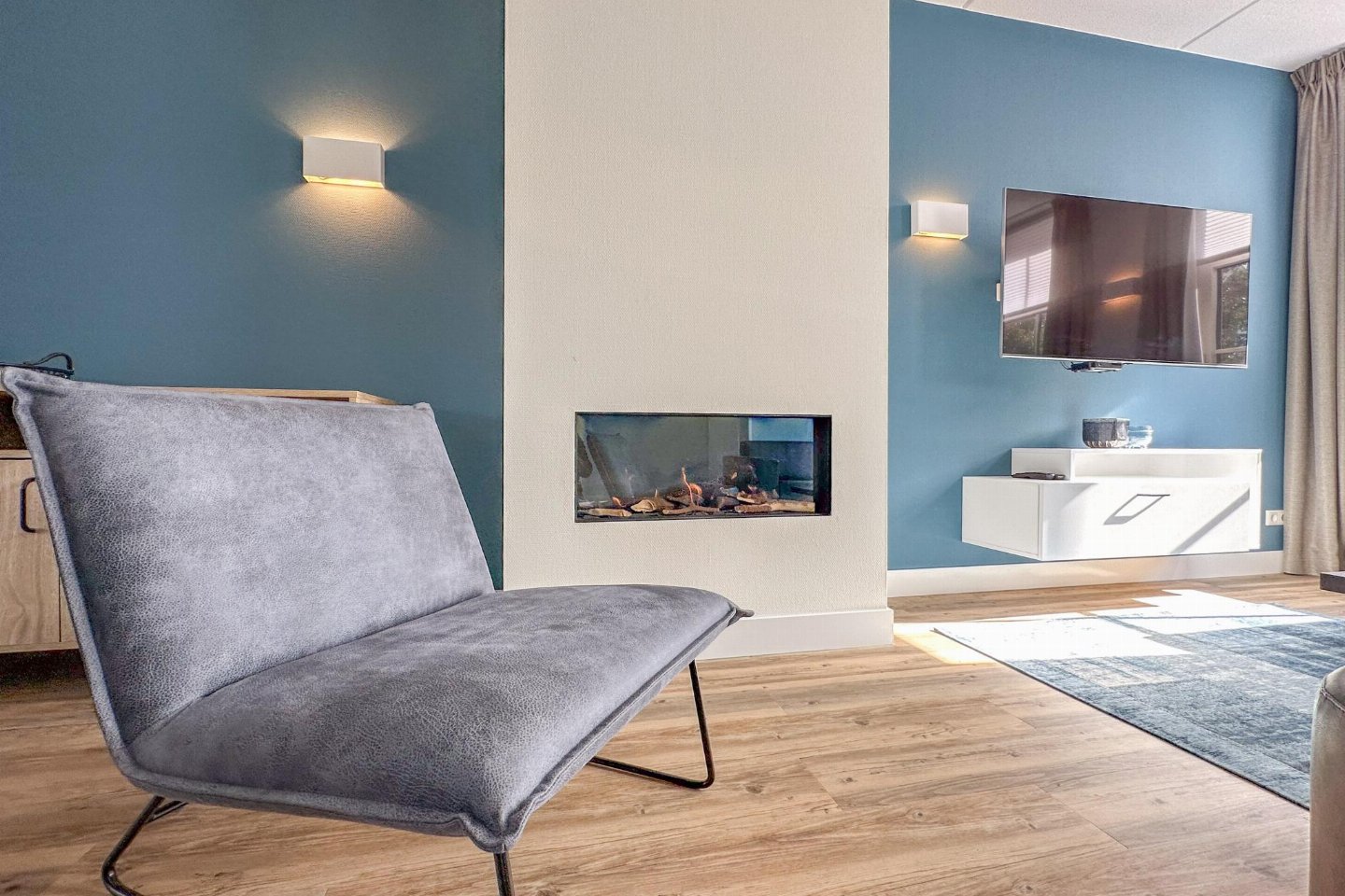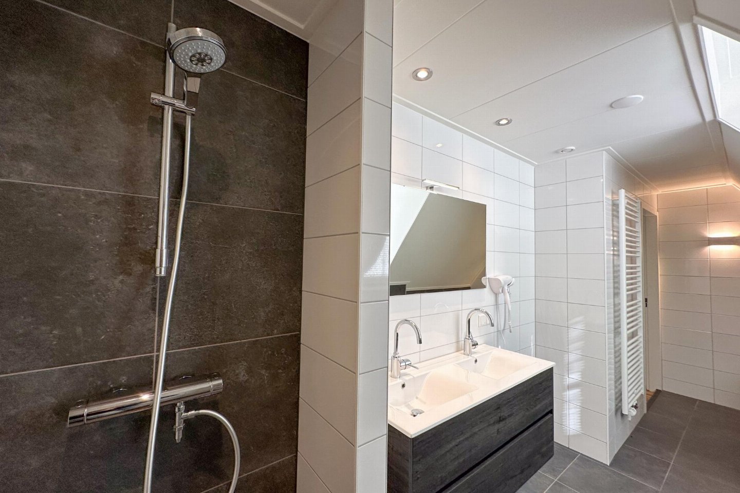 Begane grond: open keuken met waterkoker, fornuis, afzuigkap, koffiezetapparaat(nespresso cups), oven, magnetron, afwasmachine, koelkast( vriesvak) , woon/eetkamer met TV(flatscreen, smart TV), eettafel, sfeerhaard, zithoek , slaapkamer met badkamer met 2x 1-pers. bed(90 x 210 cm), douche, wastafel, wc, airconditioning, haardroger , badkamer met douche, sunshower, sauna, wc, wasmachine , toilet met wc , berging met stofzuiger