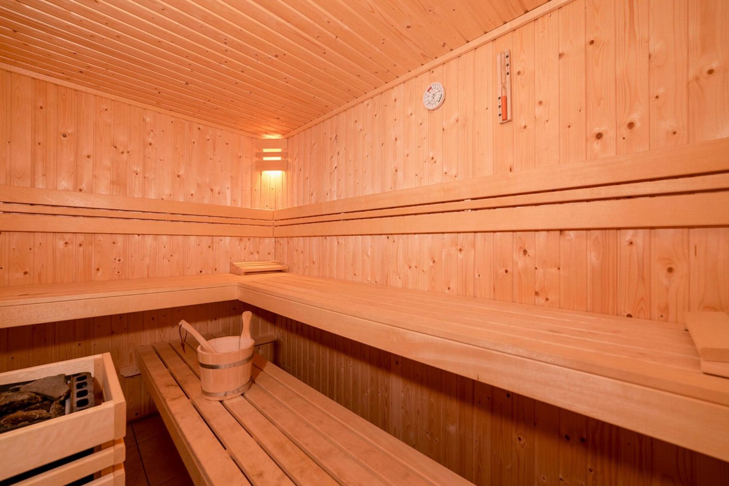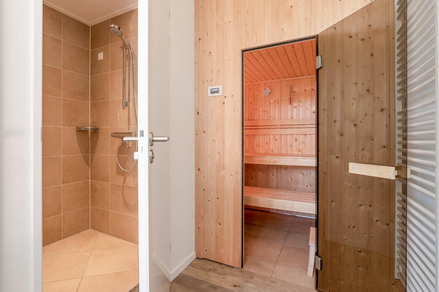 Begane grond: (open keuken(waterkoker, fornuis, afzuigkap, koffiezetapparaat(nespresso cups), oven, magnetron, afwasmachine, koelkast( vriesvak)), woon/eetkamer(TV(flatscreen, smart TV), eettafel, sfeerhaard, zithoek), slaapkamer met badkamer(2x 1-pers. bed(90 x 210 cm), TV(flatscreen), douche, sunshower, wastafel, wc, haardroger), badkamer(douche, sauna, wc), toilet(wc), berging(wasdroger, wasmachine, stofzuiger))