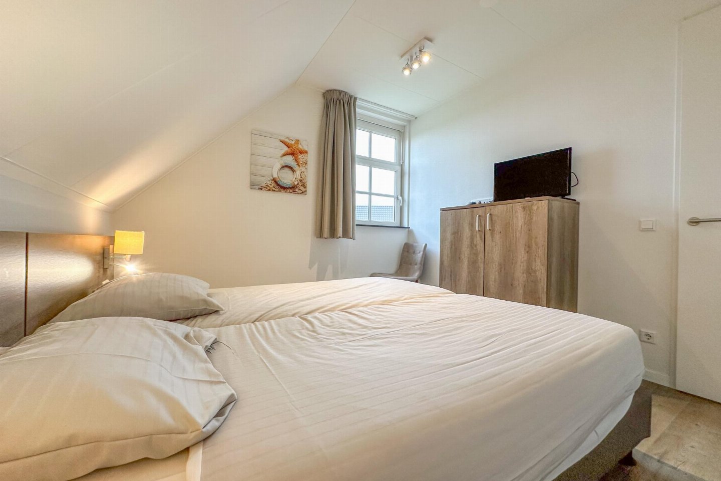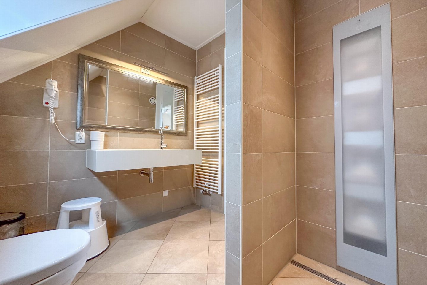 Op de 1e etage: (4x slaapkamer(2x 1-pers. bed(90 x 210 cm), TV(flatscreen)), badkamer(ligbad, douche, wastafel, wc, haardroger), badkamer(douche, sunshower, wastafel, wc, haardroger))