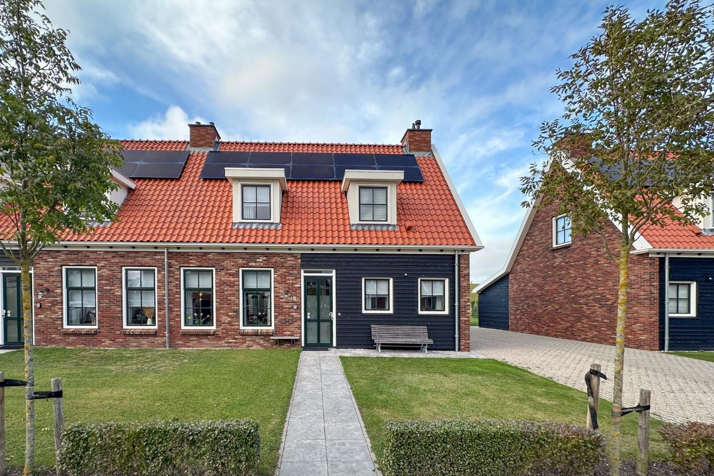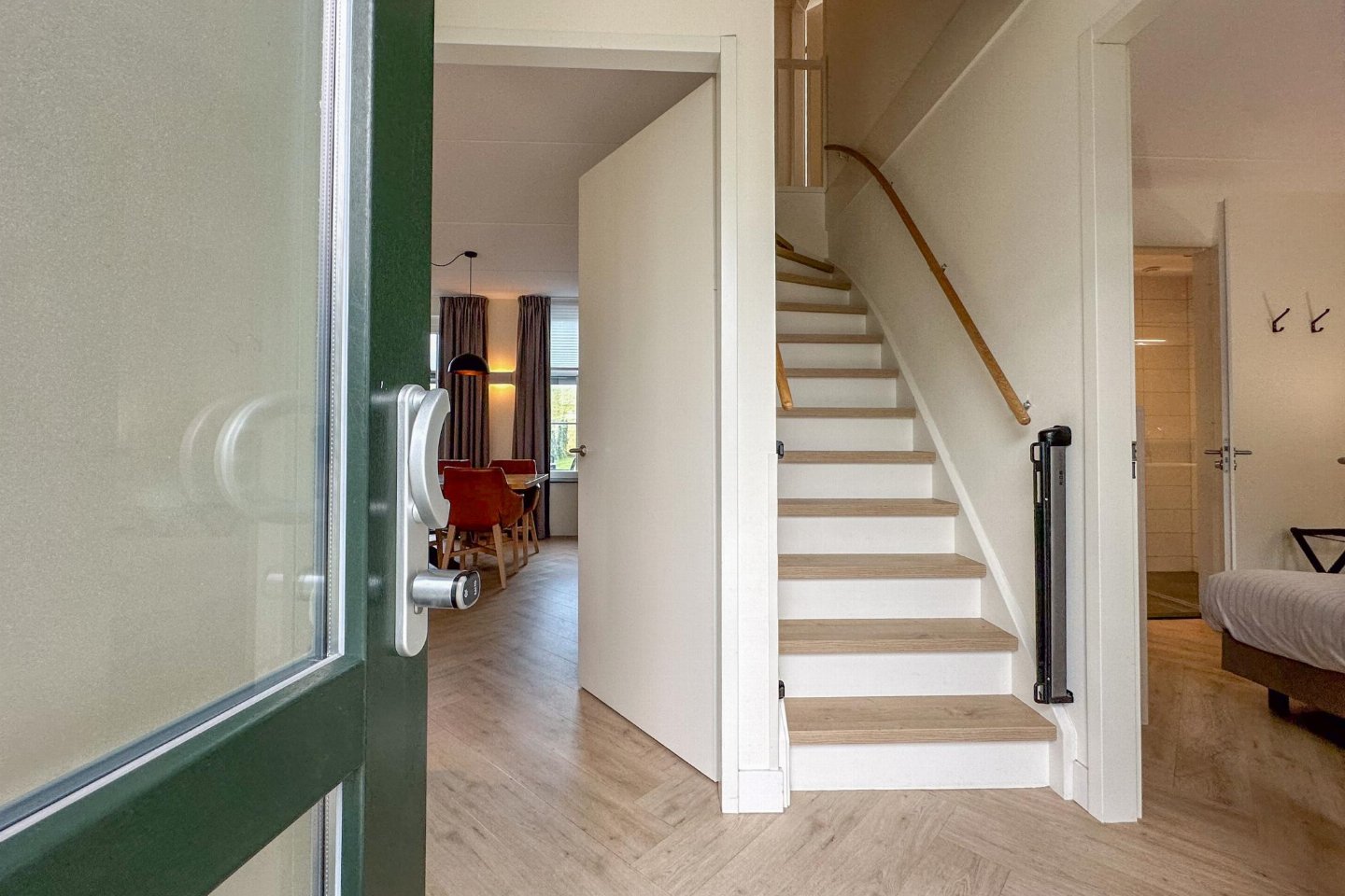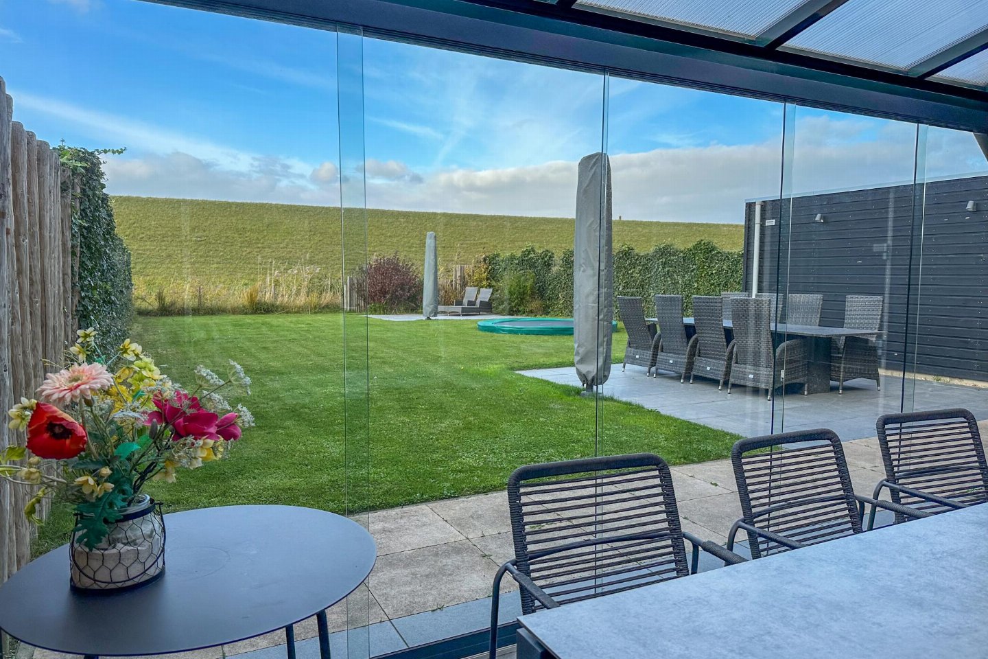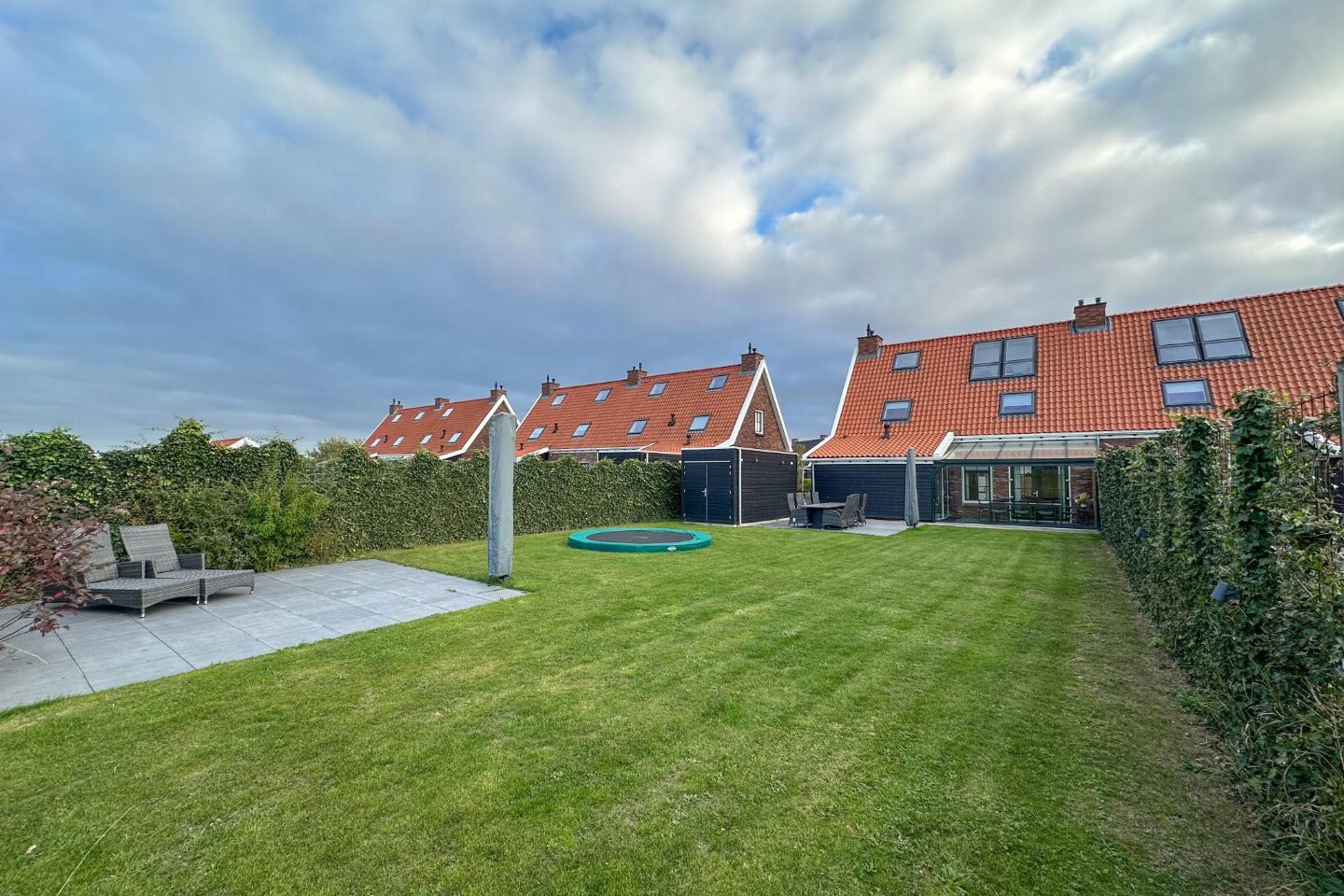 Dit half vrijstaande vakantiehuis omarmt je als je binnen komt. De fijne sfeer door de frisse meubels en sfeerhaard, laten je gelijk thuis voelen. De overdekte en beschutte veranda, met zicht op de diepe tuin met lounge hoek en trampoline, is de plek voor gezellig samen eten.