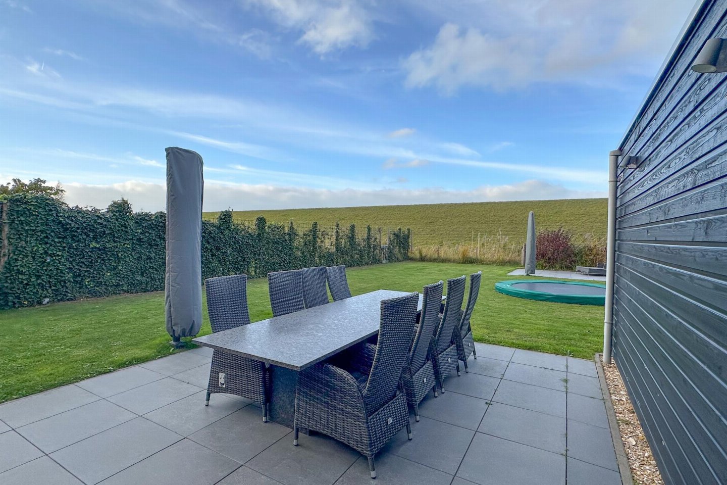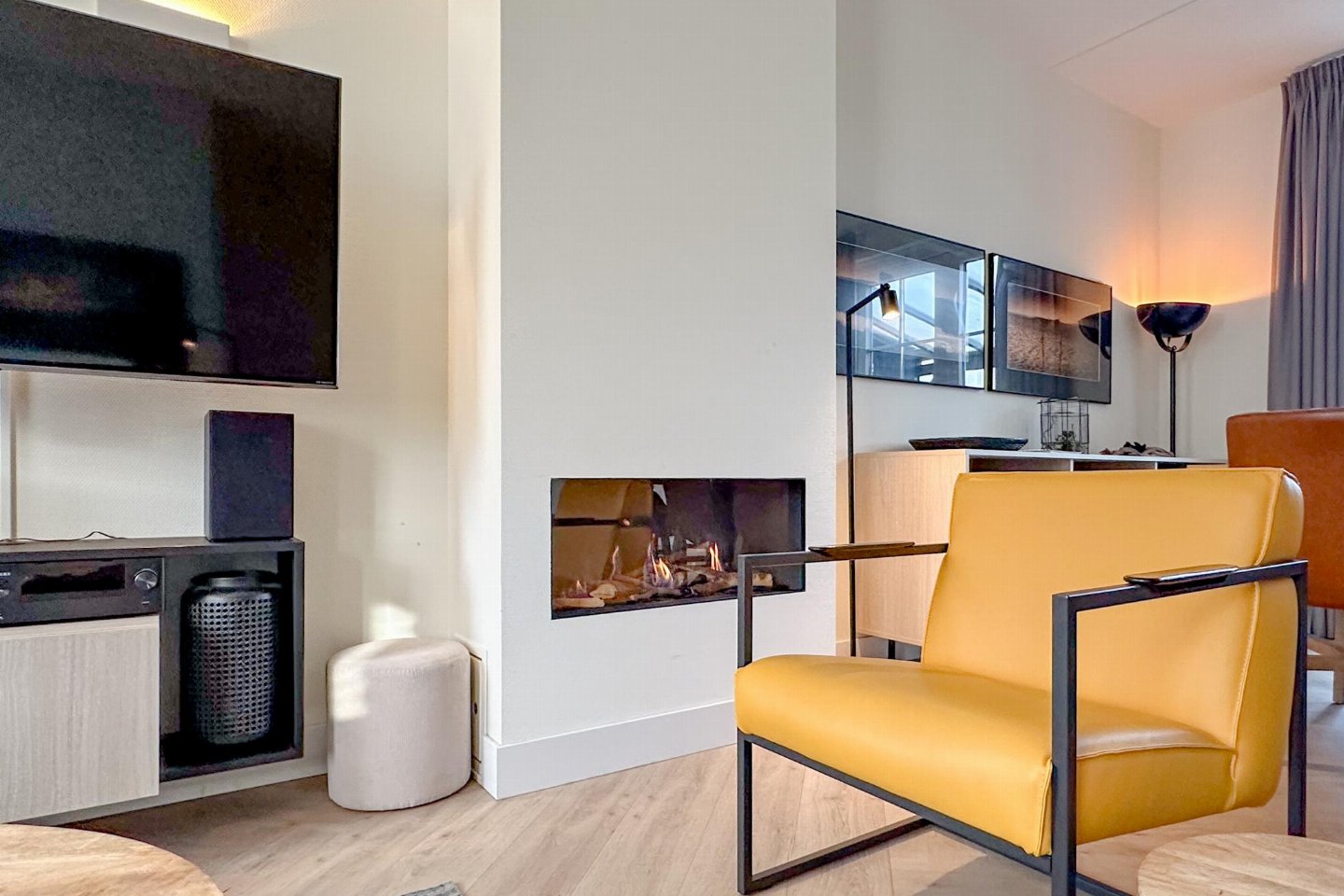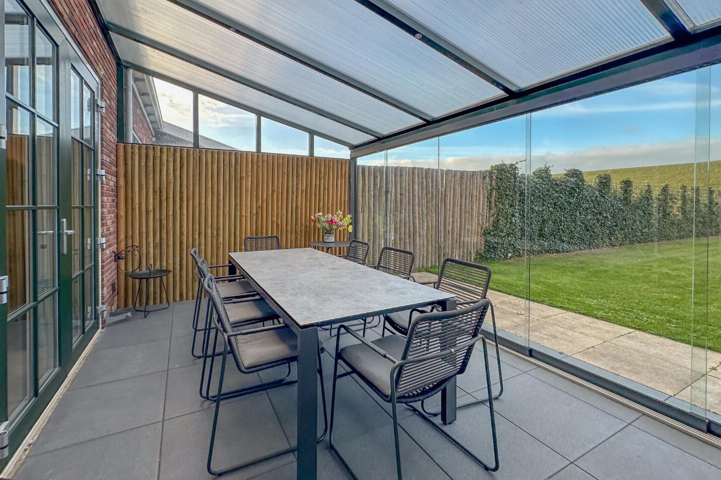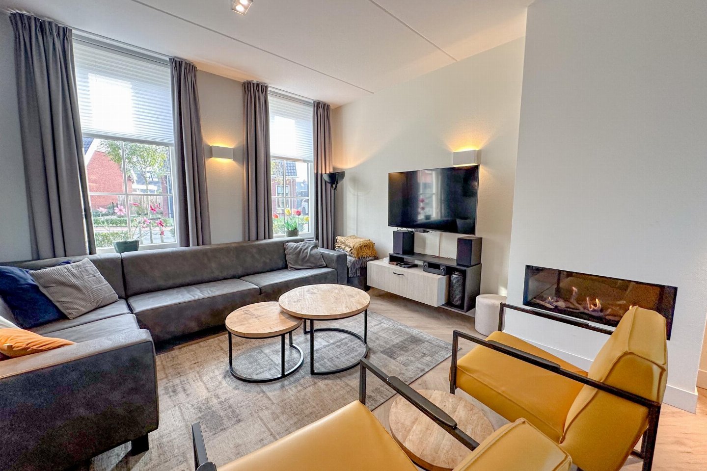 Dit half vrijstaande vakantiehuis omarmt je als je binnen komt. De fijne sfeer door de frisse meubels en sfeerhaard, laten je gelijk thuis voelen. De overdekte en beschutte veranda, met zicht op de diepe tuin met lounge hoek en trampoline, is de plek voor gezellig samen eten.
