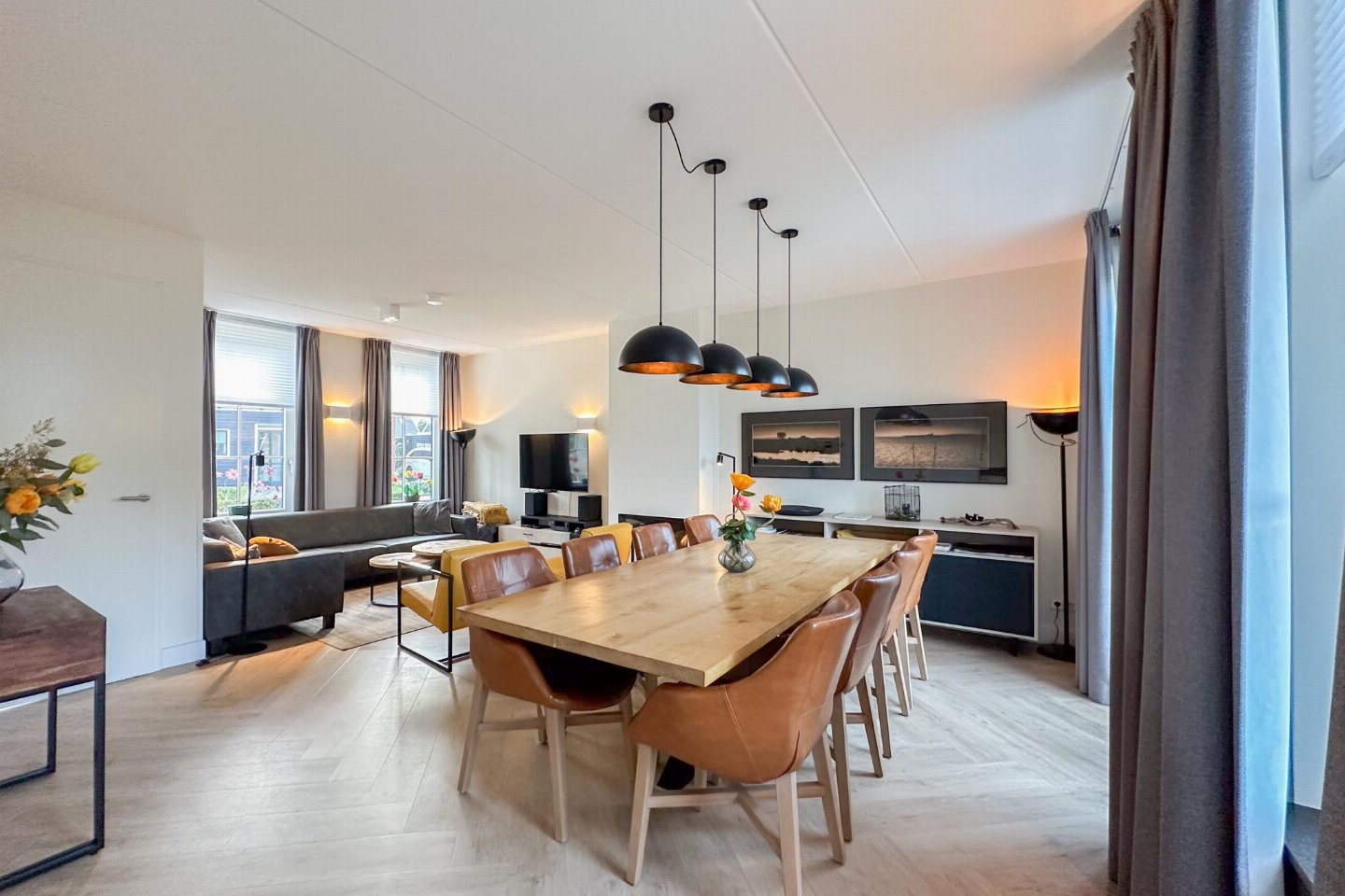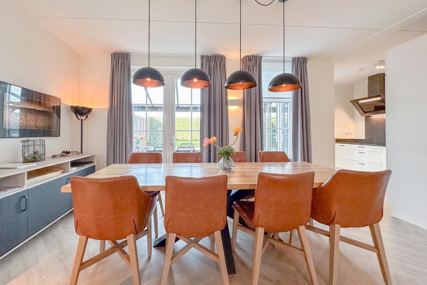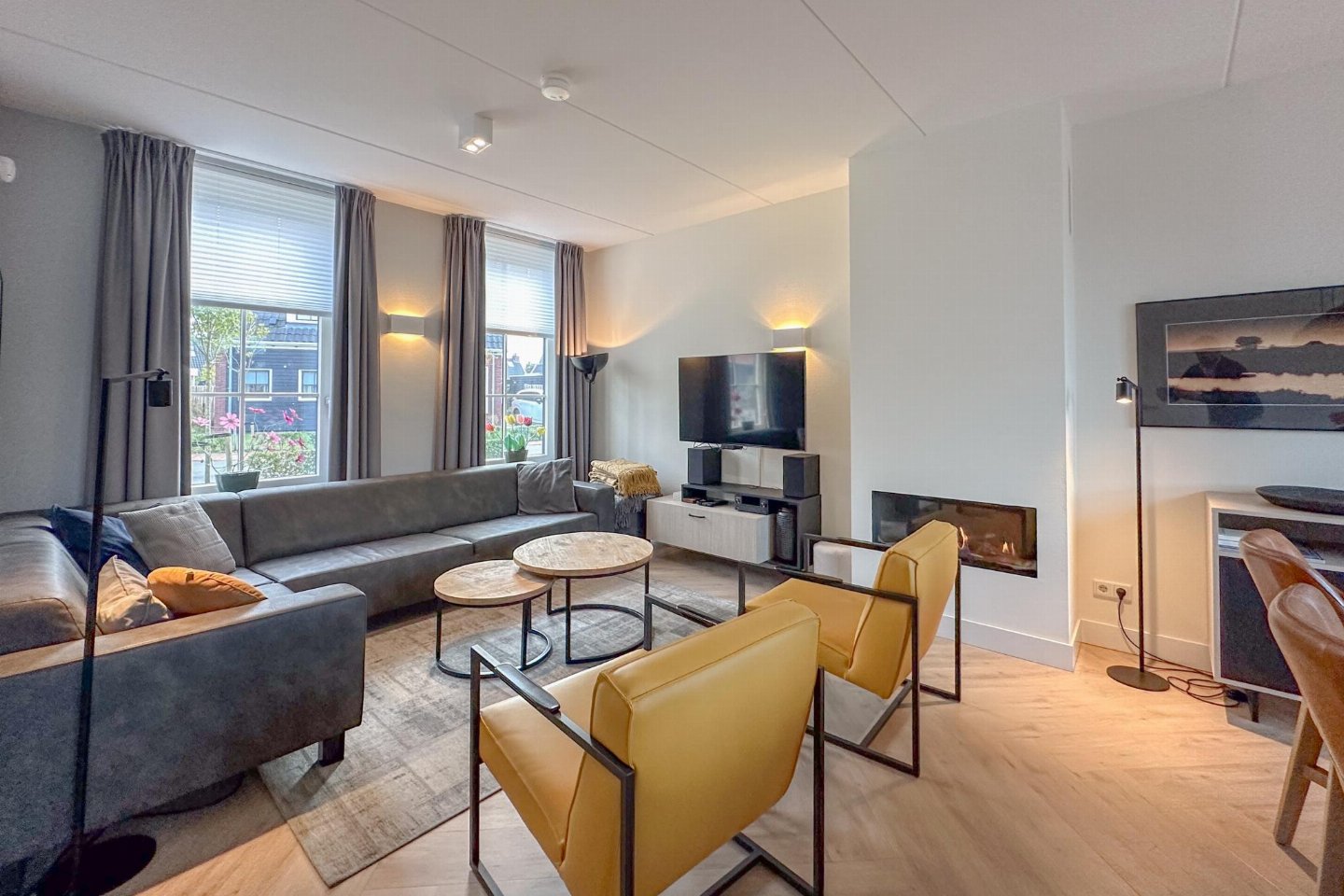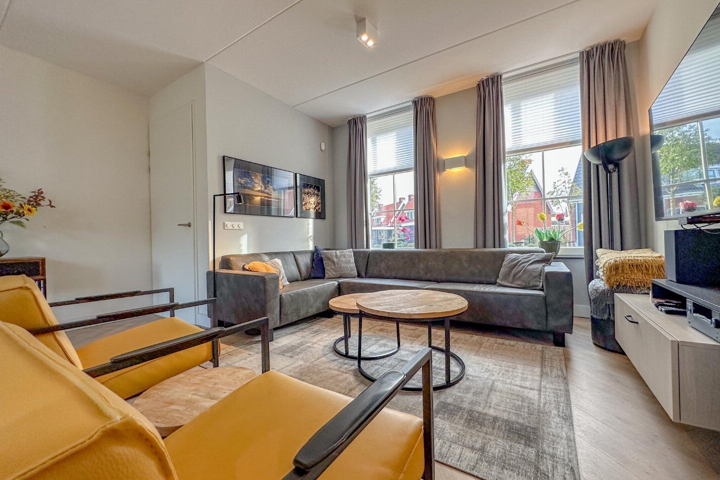 Dit half vrijstaande vakantiehuis omarmt je als je binnen komt. De fijne sfeer door de frisse meubels en sfeerhaard, laten je gelijk thuis voelen. De overdekte en beschutte veranda, met zicht op de diepe tuin met lounge hoek en trampoline, is de plek voor gezellig samen eten.