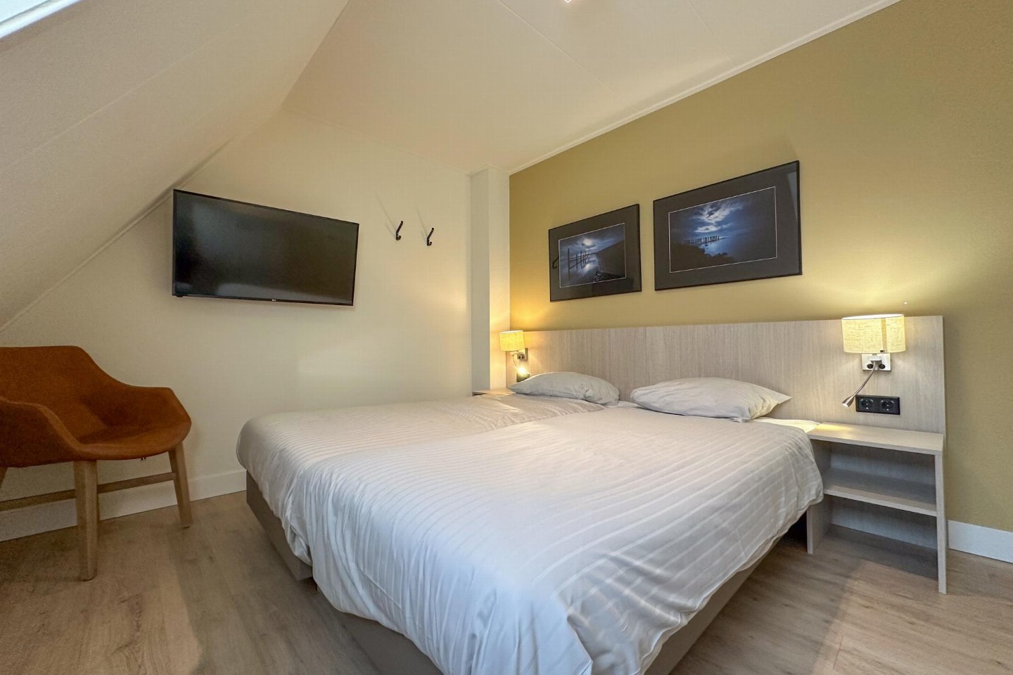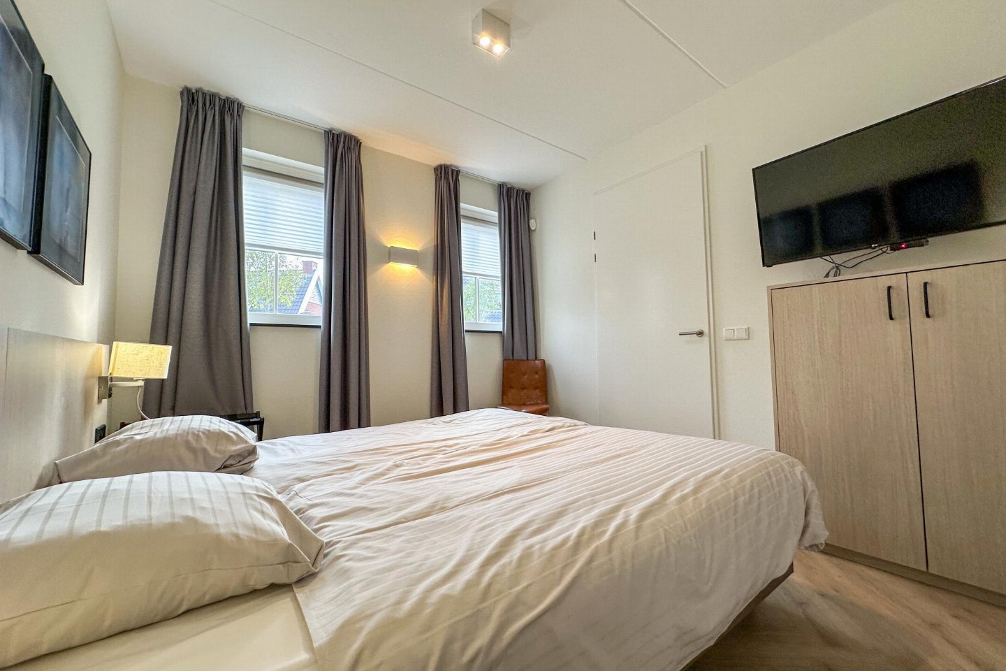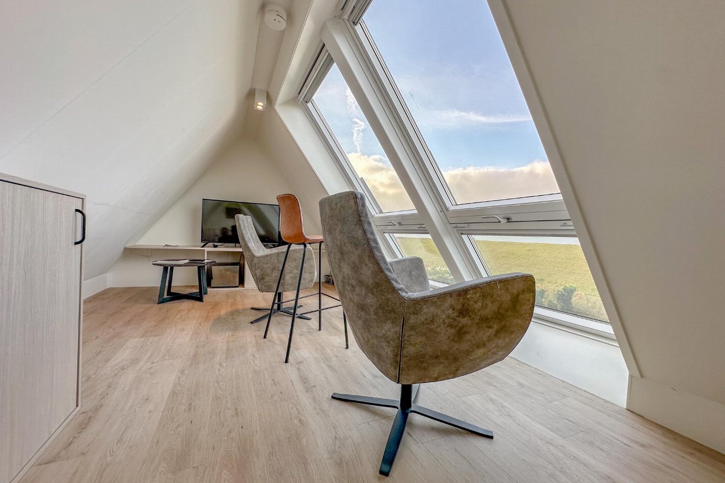 Op de 1e etage: 3x slaapkamer met 1-pers. bed, 1-pers. bed, TV(flatscreen) , badkamer, overloop, traphekje