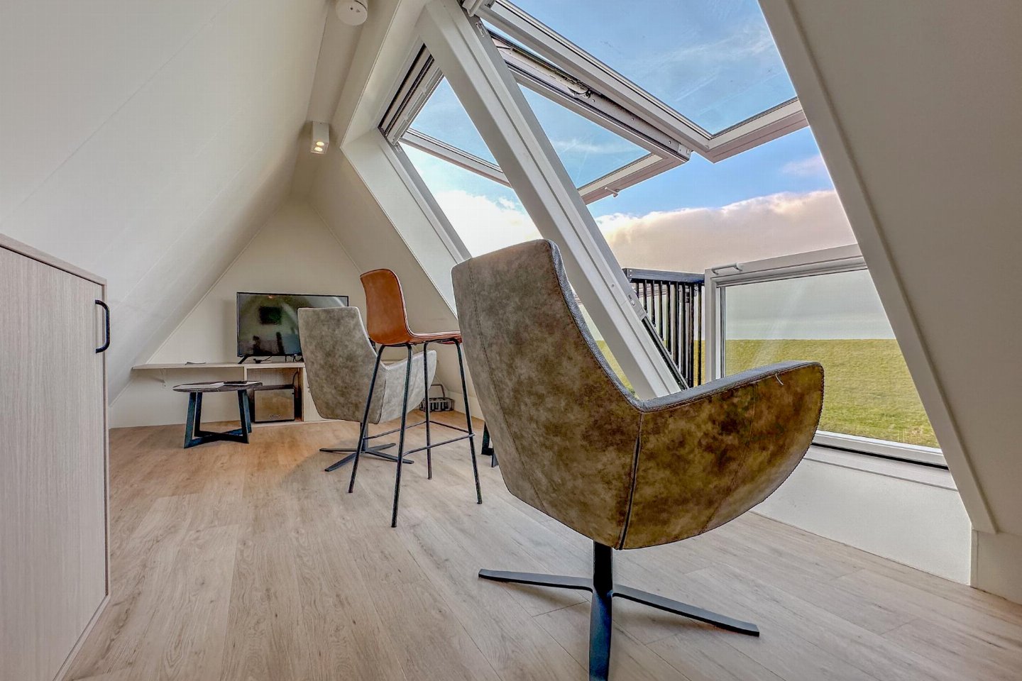Dit half vrijstaande vakantiehuis omarmt je als je binnen komt. De fijne sfeer door de frisse meubels en sfeerhaard, laten je gelijk thuis voelen. De overdekte en beschutte veranda, met zicht op de diepe tuin met lounge hoek en trampoline, is de plek voor gezellig samen eten. De wellness ruimte sauna en sunshower maken het luxe gevoel compleet. Extra bijzonder is de bovenste etage waar je de schuinen ramen kunt openklappen tot balkon vanwaar je zicht hebt op de Zeelandbrug en de Oosterschelde