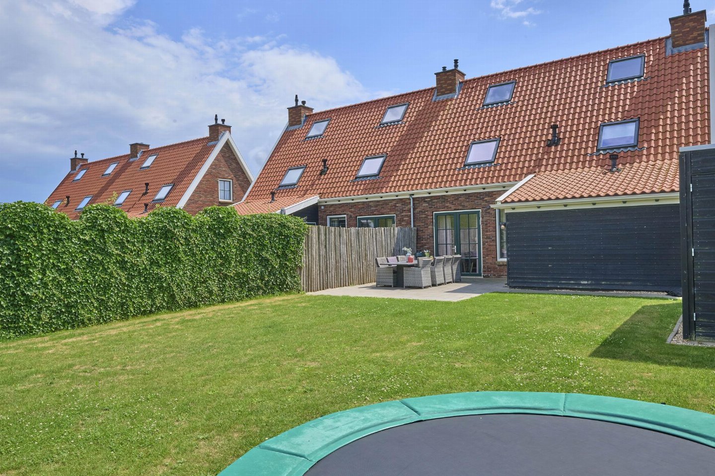 terras, tuin(privé, omheind), fietsenberging, 2x parking, 1x parking(op algemene parkeerplaats), speeltoestellen(gedeeld met andere gasten), 1x kinderbed (excl. beddengoed)(tegen betaling), 1x kinderstoel(tegen betaling), Volleybalterrein(gedeeld met andere gasten), Oplaadmogelijkheid voor elektrische auto's