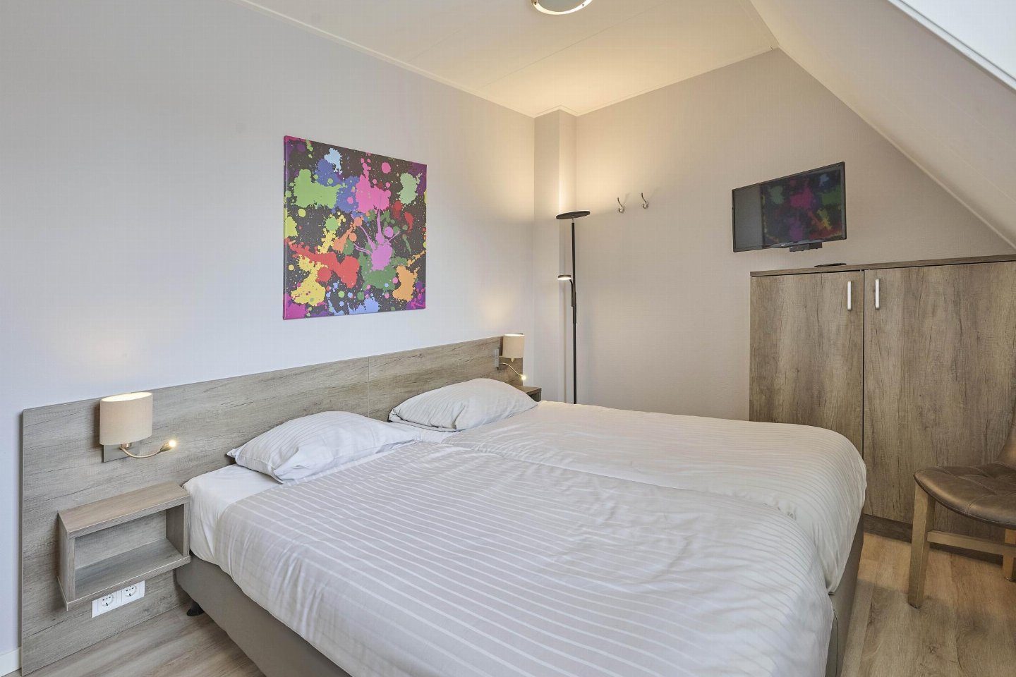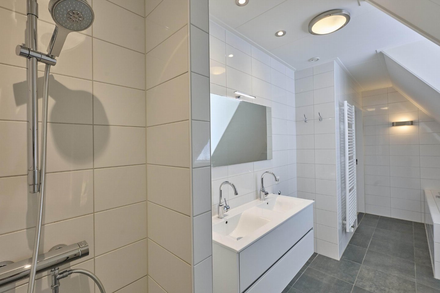 Op de 1e etage: 3x slaapkamer met 2x 1-pers. bed(90 x 210 cm), TV(flatscreen) , badkamer met ligbad, douche, wastafel, wc, haardroger , overloop, traphekje
