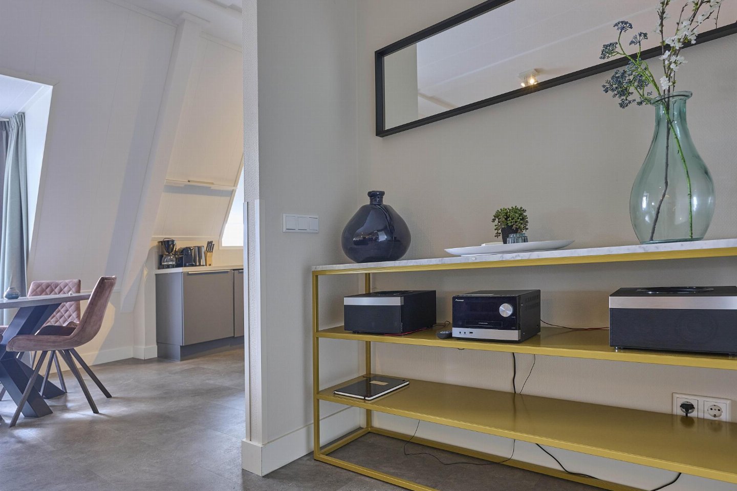 Op de 2e etage: open keuken met eettafel(4 personen), waterkoker, fornuis(4 kookplaten), koffiezetapparaat(filtermaling, nespresso cups), oven, magnetron, afwasmachine, koelkast( vriesvak) , woon/eetkamer met TV(flatscreen, smart TV), eettafel, stereo-installatie , slaapkamer met badkamer met 2x 1-pers. bed(90 x 210 cm), TV(flatscreen, smart TV), ligbad, douche, sauna(privé), wastafel, wc, haardroger , slaapkamer met badkamer met 2x 1-pers. bed(90 x 210 cm), TV(flatscreen, smart TV), douche, wastafel, wc, haardroger , toilet met wc , balkon, verwarming(CV, vloerverwarming)
