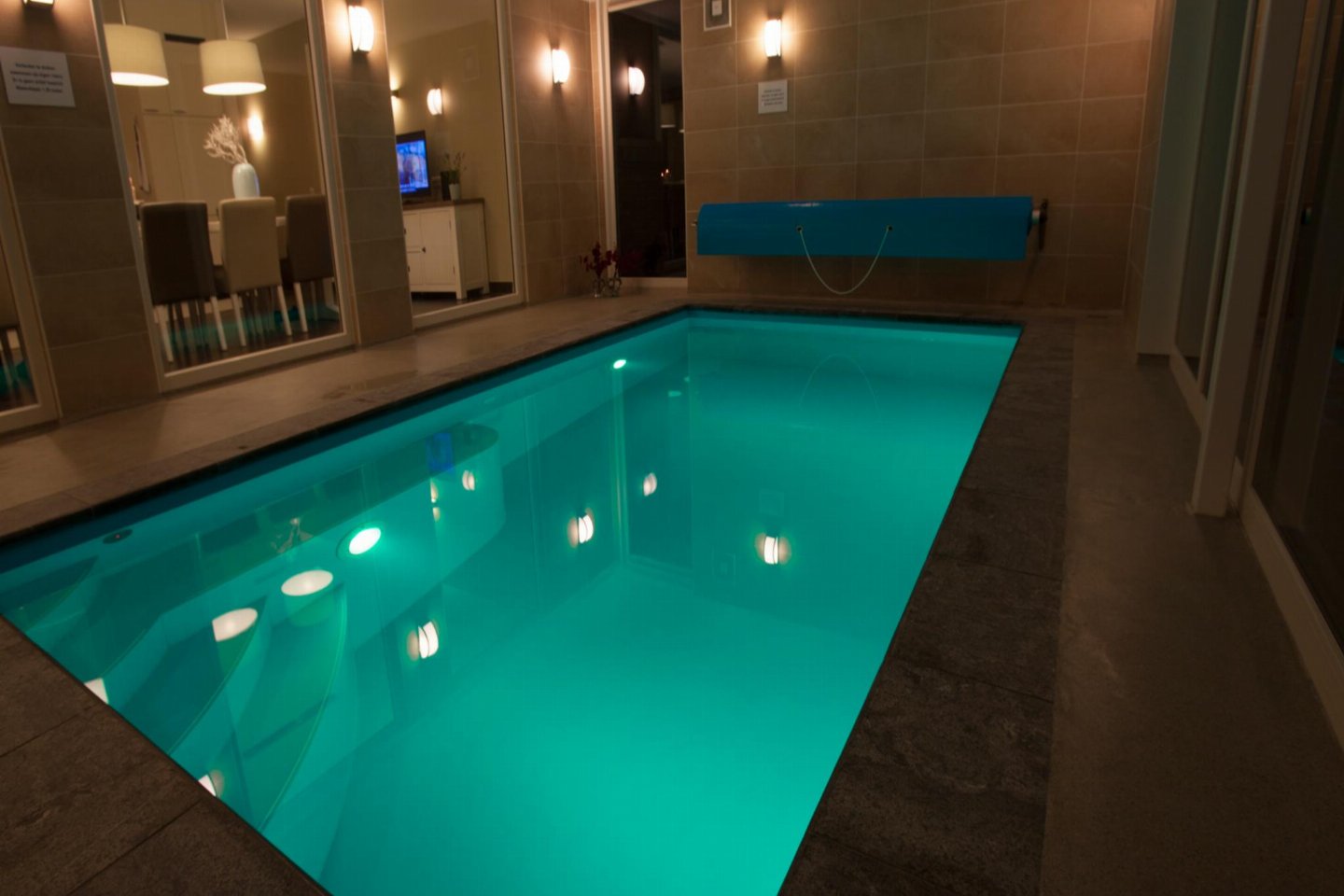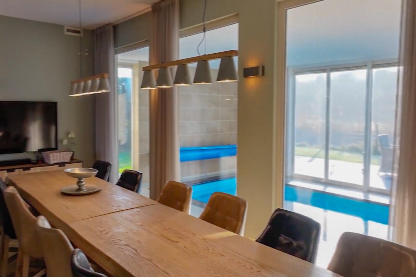 Begane grond: woonkeuken met TV(smart TV, Nederlandse zender(s), Duitse zender(s), internationale zender(s)), eettafel(12 personen), waterkoker, fornuis(4 kookplaten), koffiezetapparaat(nespresso cups), oven, magnetron, afwasmachine, koelkast( vriesvak) , 4x slaapkamer met badkamer met 2x 1-pers. bed(90 x 210 cm), TV(flatscreen), douche, wastafel, wc, haardroger , recreatieruimte met douche, sunshower, sauna(privé) , zwembad(privé, verwarmd, overdekt, binnen, diepte: 1.3 - 1.4m, geopend van Jan t/m Dec)
