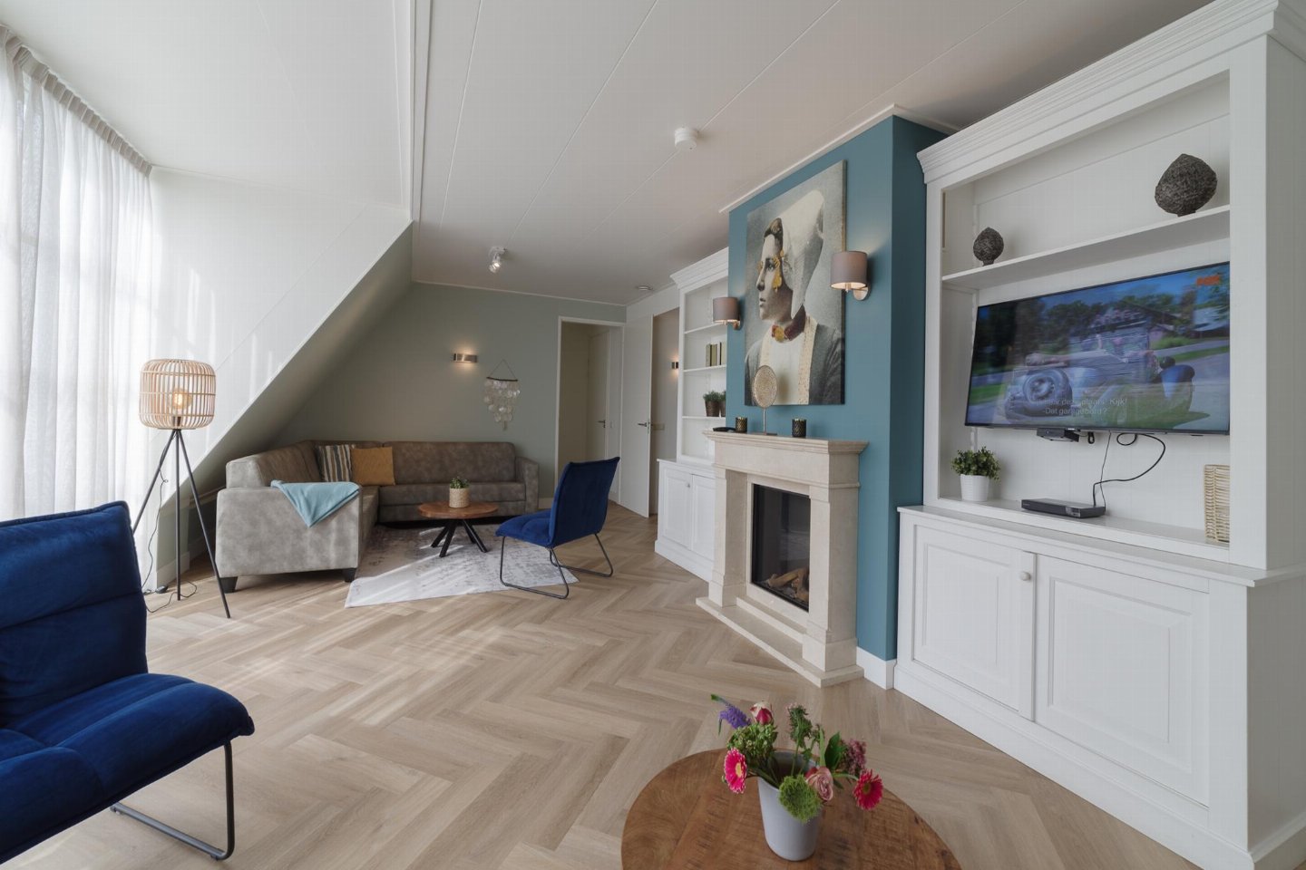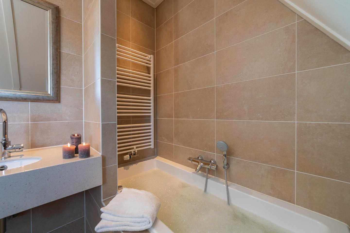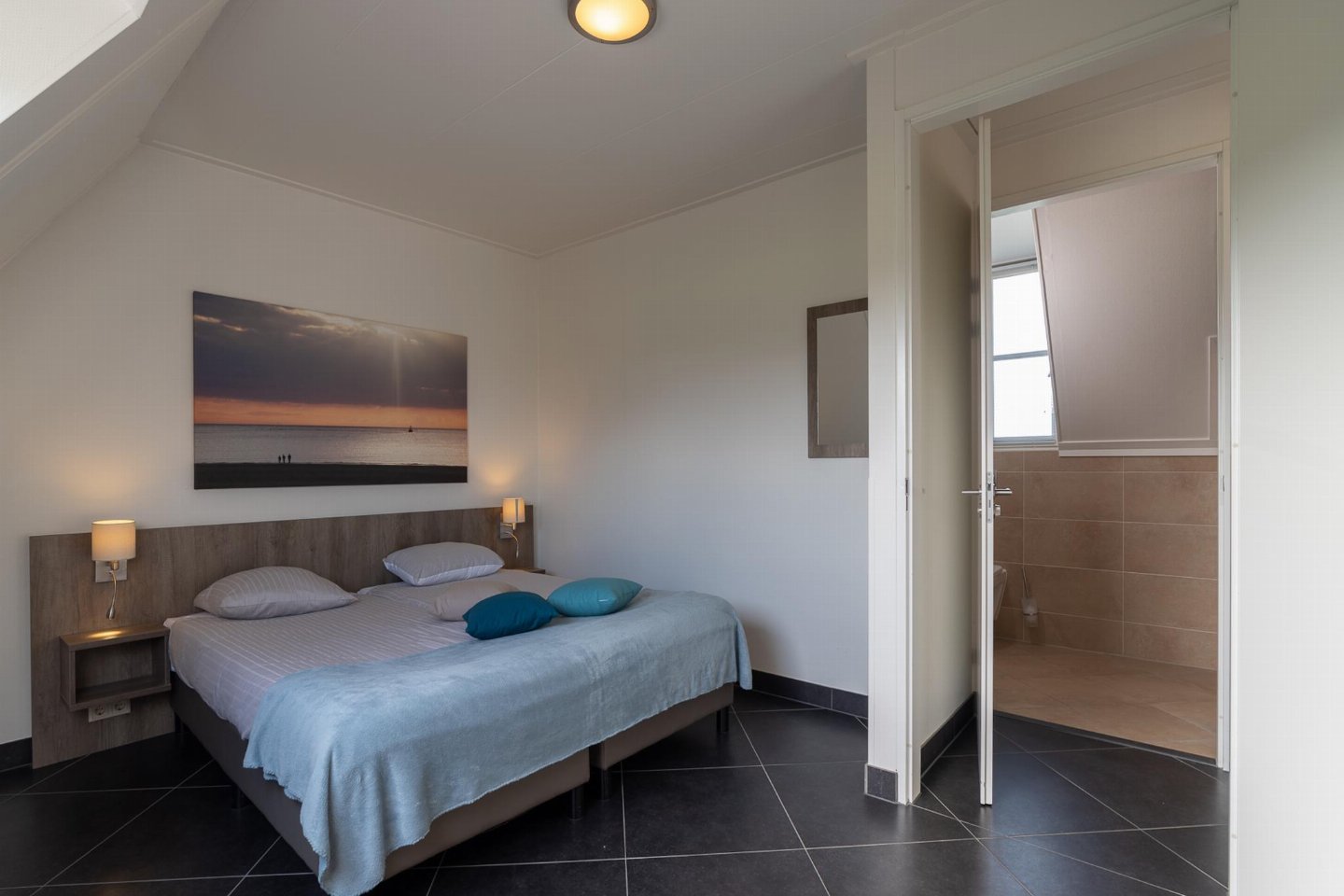 Op de 1e etage: woon/eetkamer met TV(flatscreen, smart TV), sfeerhaard, zithoek, koelkast , 2x slaapkamer met badkamer met 2x 1-pers. bed(90 x 210 cm), TV(flatscreen), ligbad, douche, wastafel, haardroger , dakterras