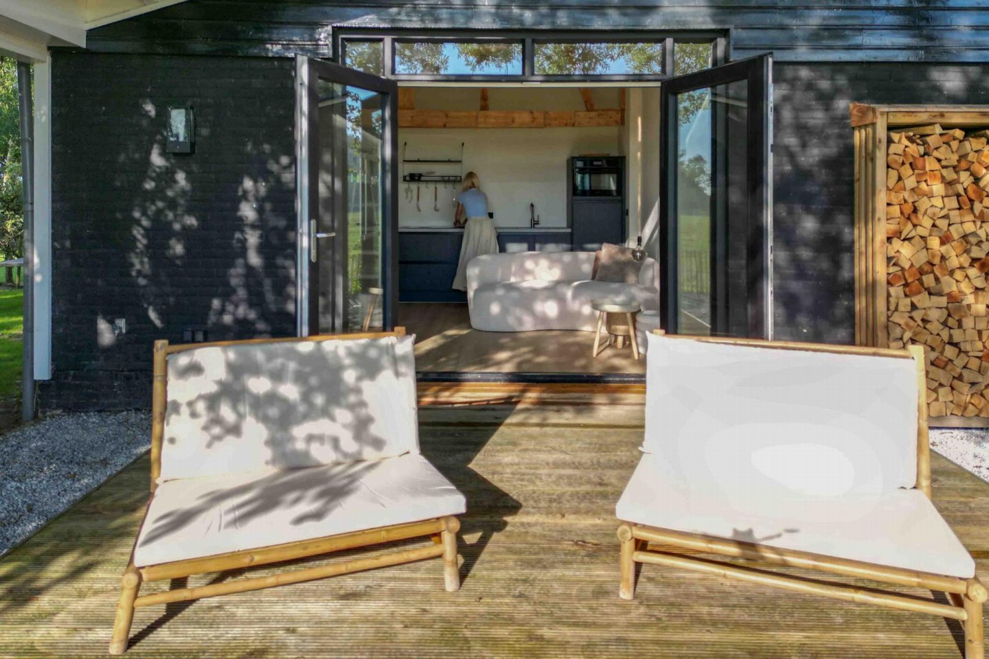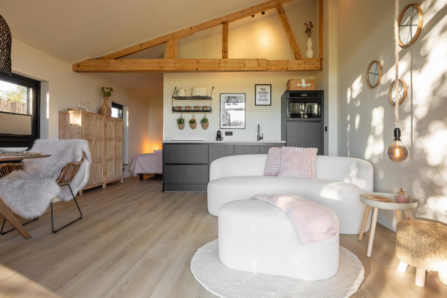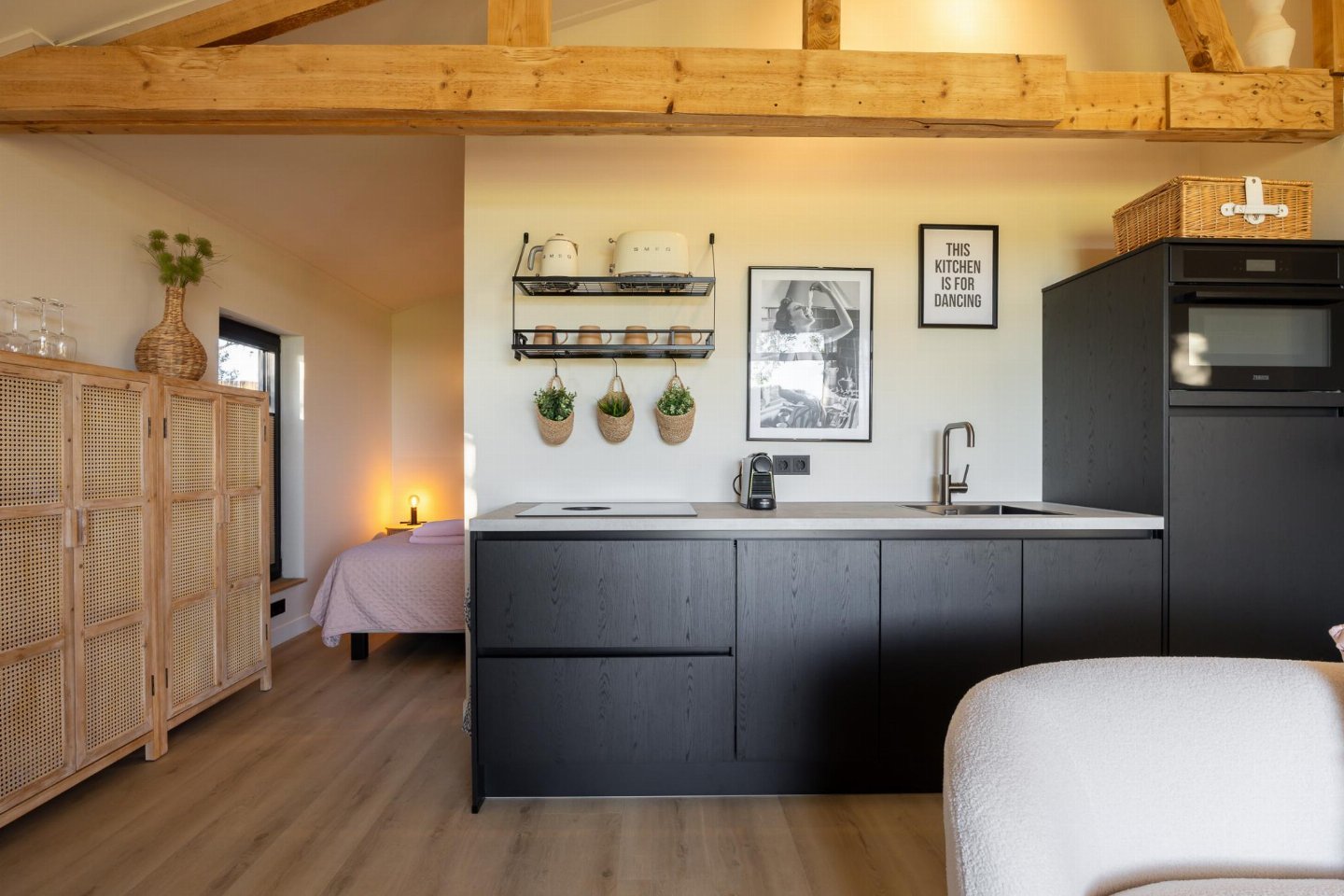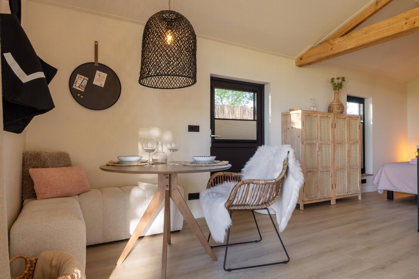 Knus tweepersoons verblijf met zitruimte, open keuken en eetgedeelte. Buiten een eigen tuin met terras om rustig te zitten. Wasmachine en droger aanwezig en privéparkeerplaats op het terrein. bed , badkamer met douche, wastafel tuin(privé, deels omheind) met sauna , 1x kinderbed (excl.