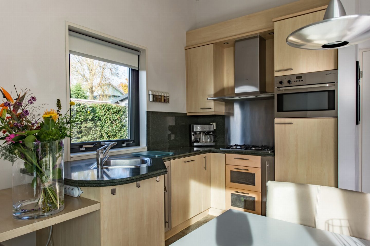 De ruime lichte woonkamer met open keuken is voorzien van een knusse gashaard, flatscreen SMART-TV met digitale televisie en extra buitenlandse zenders. Vanuit de woonkamer heeft u via de schuifpui toegang naar een overdekt terras met comfortabele tuinmeubelen en de beschutte tuin met veel privacy. De grote 8-persoons eettafel verbindt het woongedeelte met de keuken. De keuken is volledig uitgerust met o.a. een combimagnetron, vaatwasser en een gecombineerd espresso / filter koffiezetapparaat. In de bijkeuken staan een wasmachine en droger tot uw beschikking.