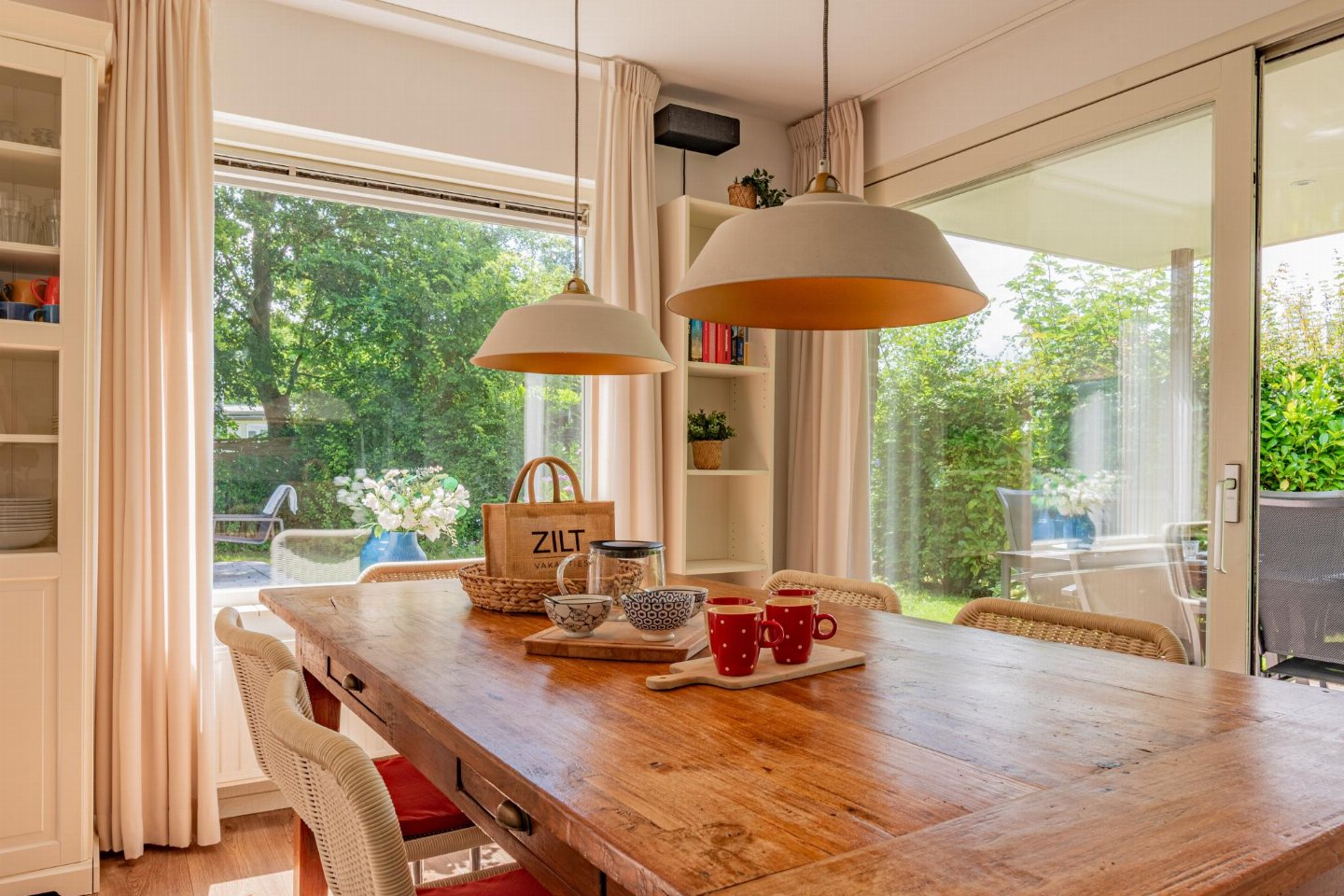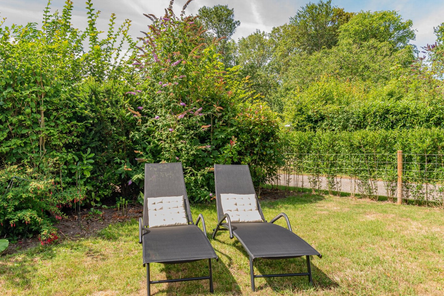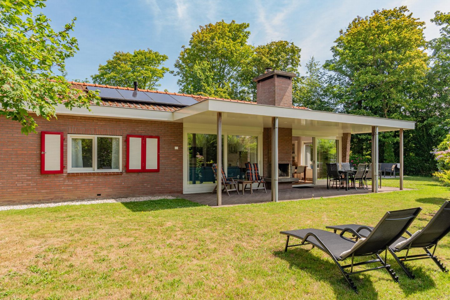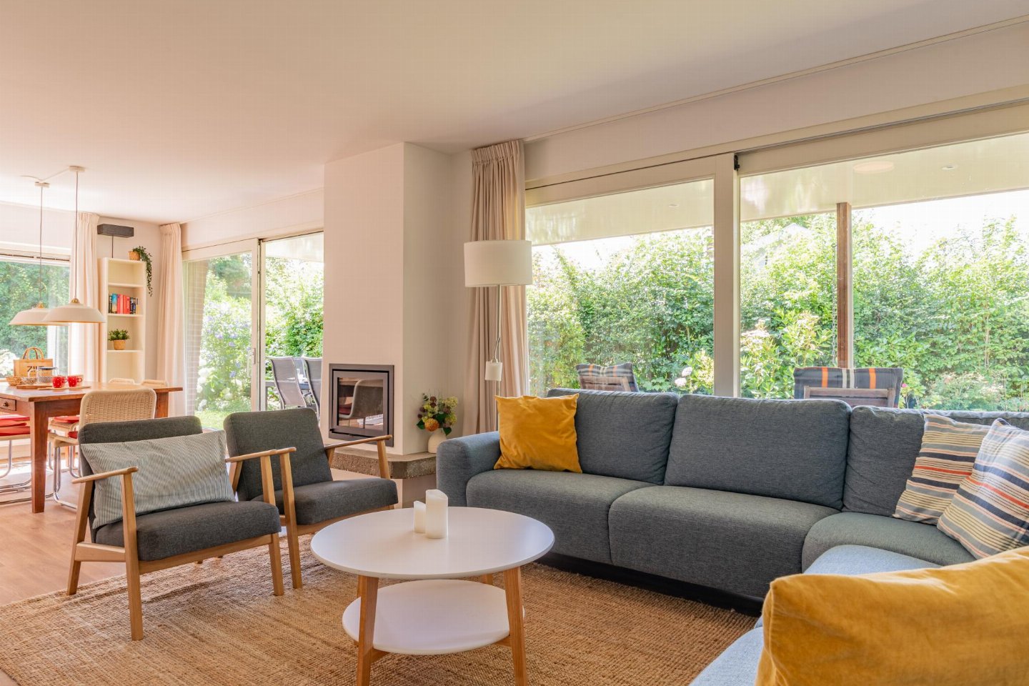 Vrijstaande 6-persoons bungalow aan de voet van de duinen bij het Banjaardstrand. Een lichte, comfortabele woning met een warme woonkamer en houtkachel, verbonden met een open keuken. De bungalow beschikt over drie slaapkamers, waarvan één met een ensuite badkamer, plus een tweede badkamer en een apart toilet. Buiten geniet je van een overdekt terras en een ruime, groene tuin met veel privacy