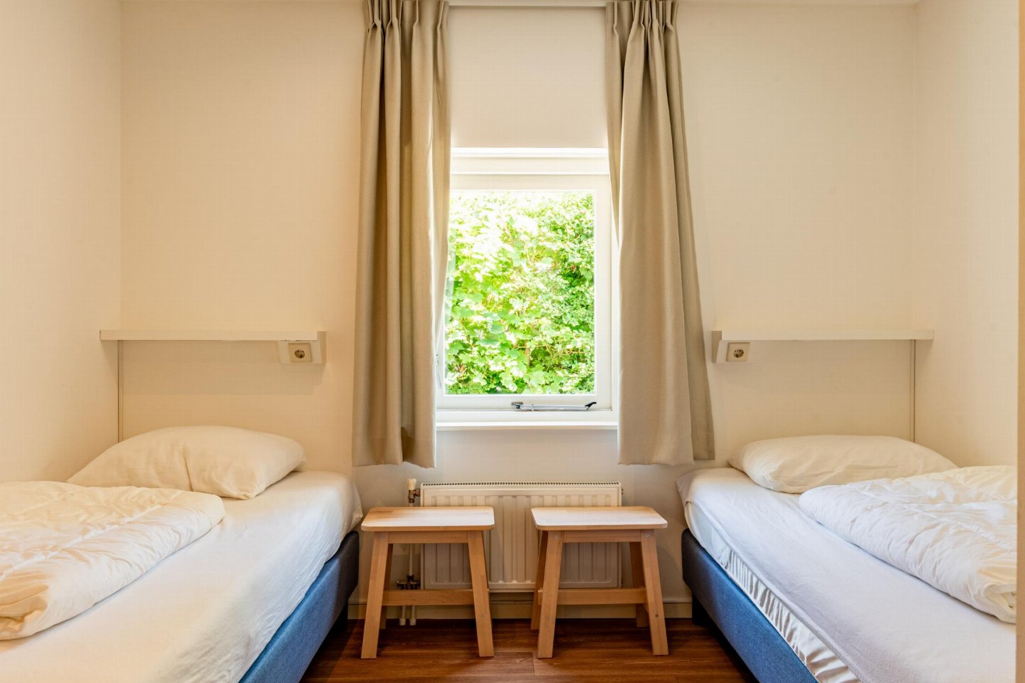 Begane grond: woonkamer met zithoek , keuken met fornuis, afzuigkap, koffiezetapparaat(nespresso cups), oven, afwasmachine, koel-/vriescombinatie , slaapkamer met 1-pers. bed, 1-pers. bed , slaapkamer met 2-pers. bed , slaapkamer met 1-pers. bed, 1-pers. bed , badkamer met douche, wastafel , badkamer met douche, wastafel , tuin(privé, omheind)