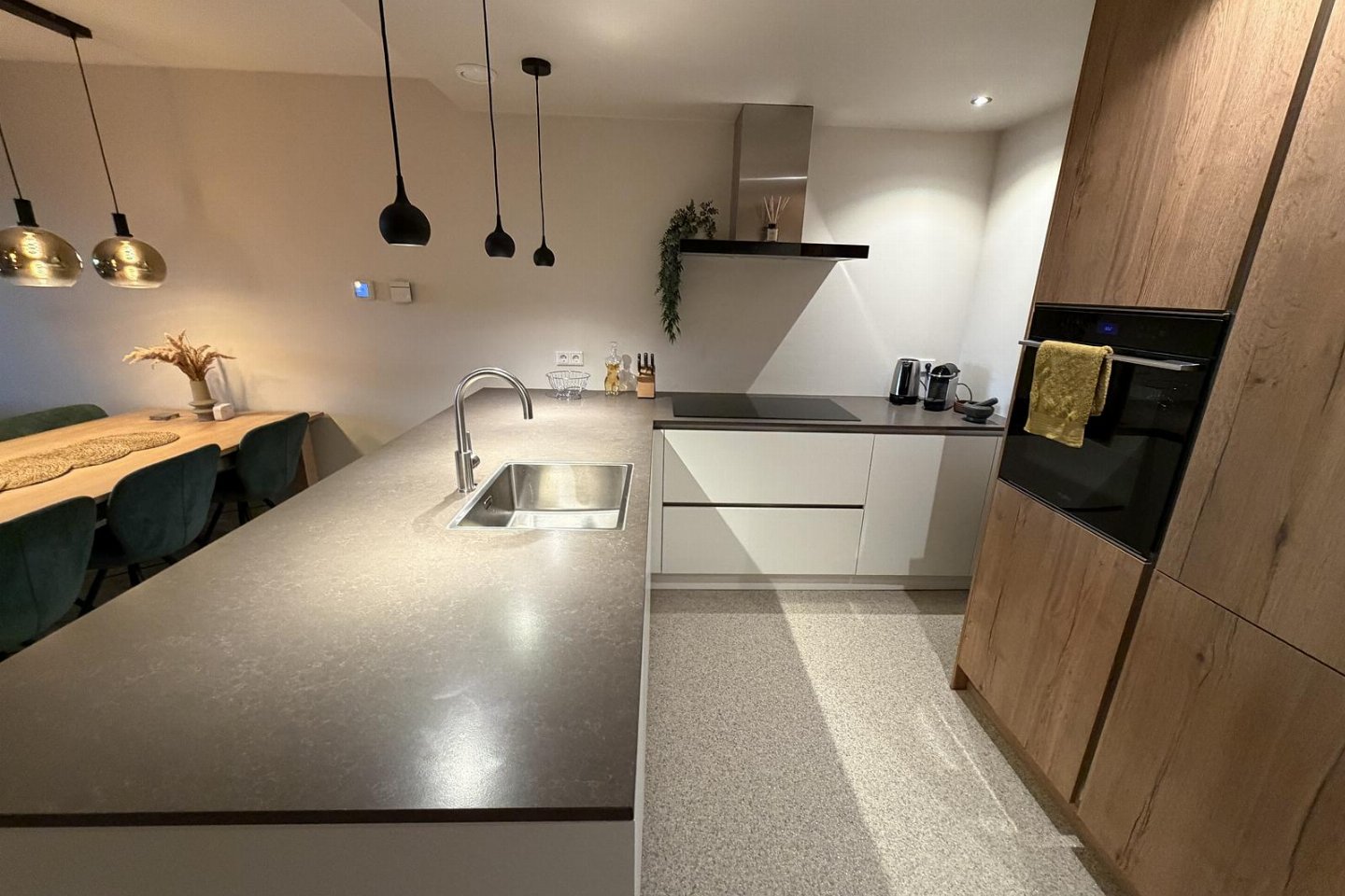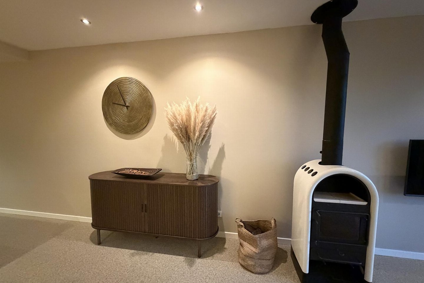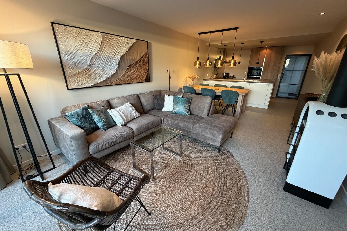 Vanuit de woonkamer en luxe open keuken heeft u een panoramisch uitzicht over het meer. De woonkamer is voorzien van een flatscreen en een sfeervolle houtkachel. De moderne open keuken is voorzien van alle comfort en heeft o.a. een grote inductiekookplaat, een vaatwasser, een grote koel-vriescombinatie, een oven en een Nespresso koffiemachine.