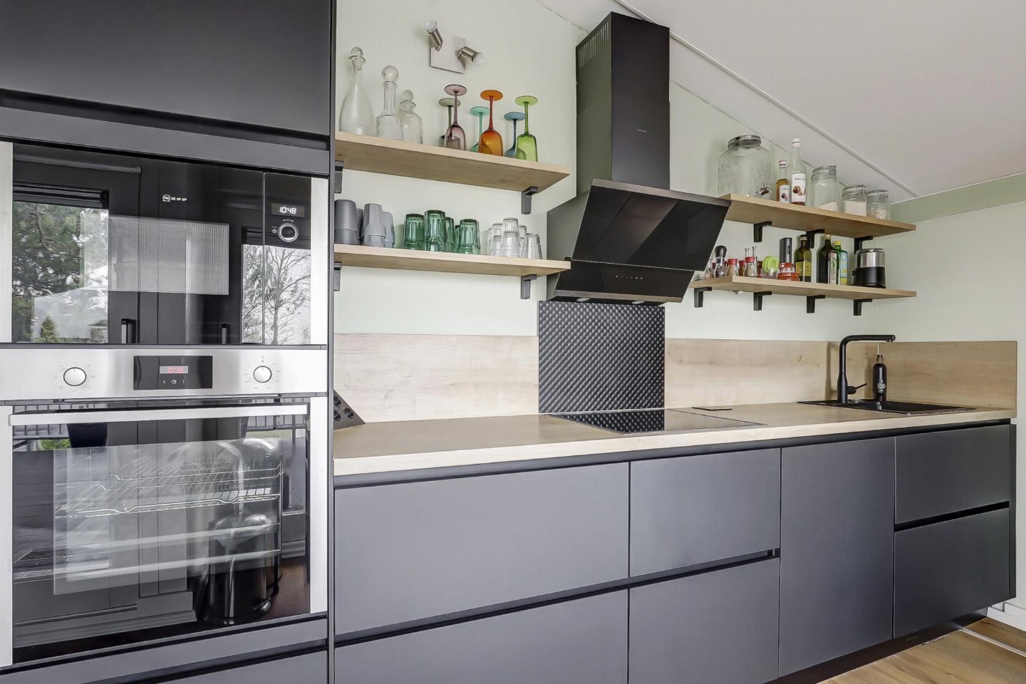 Op de 1e etage: woonkamer met zithoek , eetkamer met eettafel , open keuken met fornuis, koffiezetapparaat(nespresso cups), oven, combimagnetron, afwasmachine, koelkast, vriezer