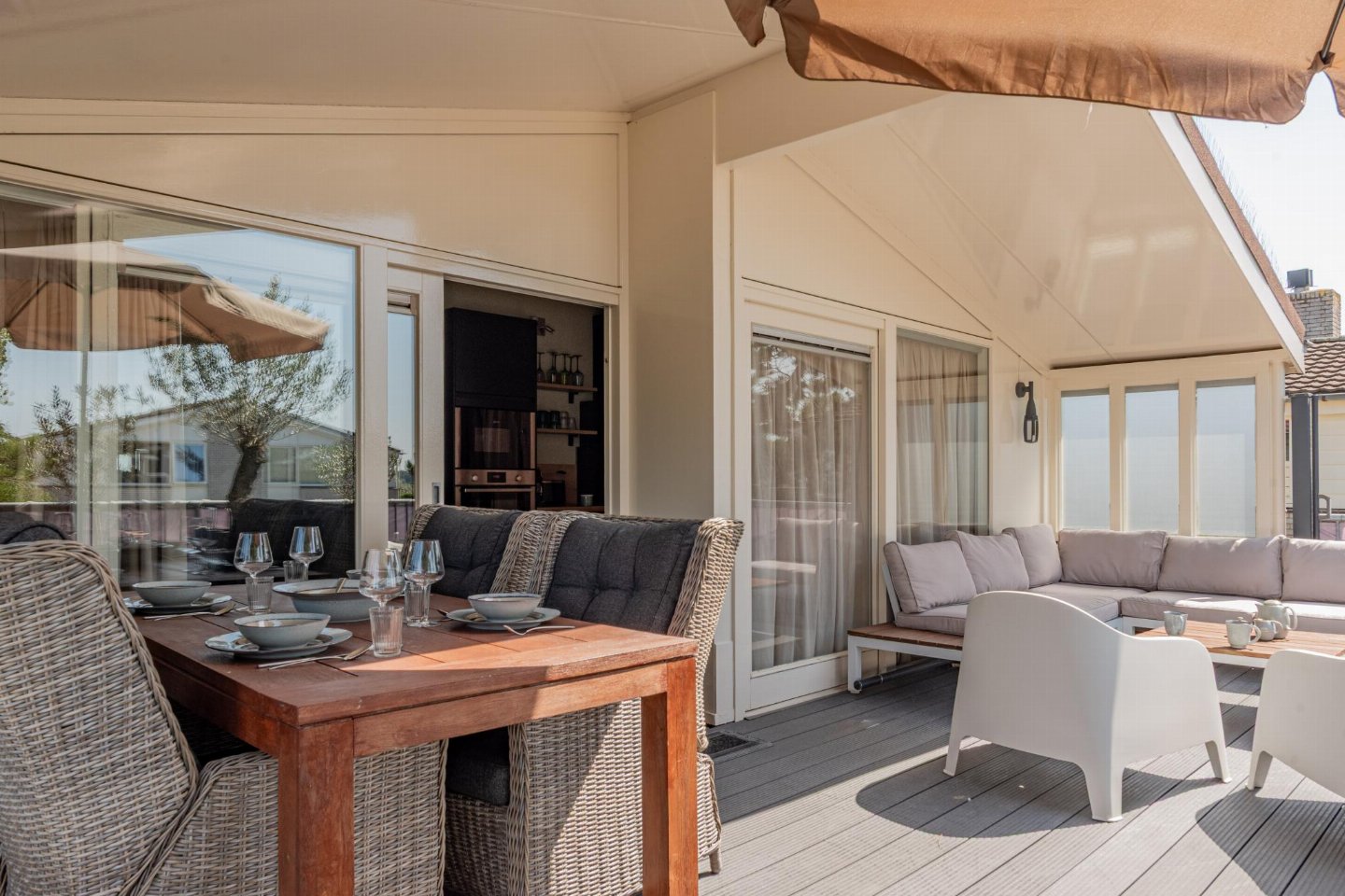 In de tuin, op het terras en het balkon kun je volop genieten. Het terras nodigt uit tot lange zomeravonden en gezellige diners. Op het balkon met loungeset vind je een rustige plek om te ontspannen met een boek of een glas wijn, terwijl de zon langzaam ondergaat.