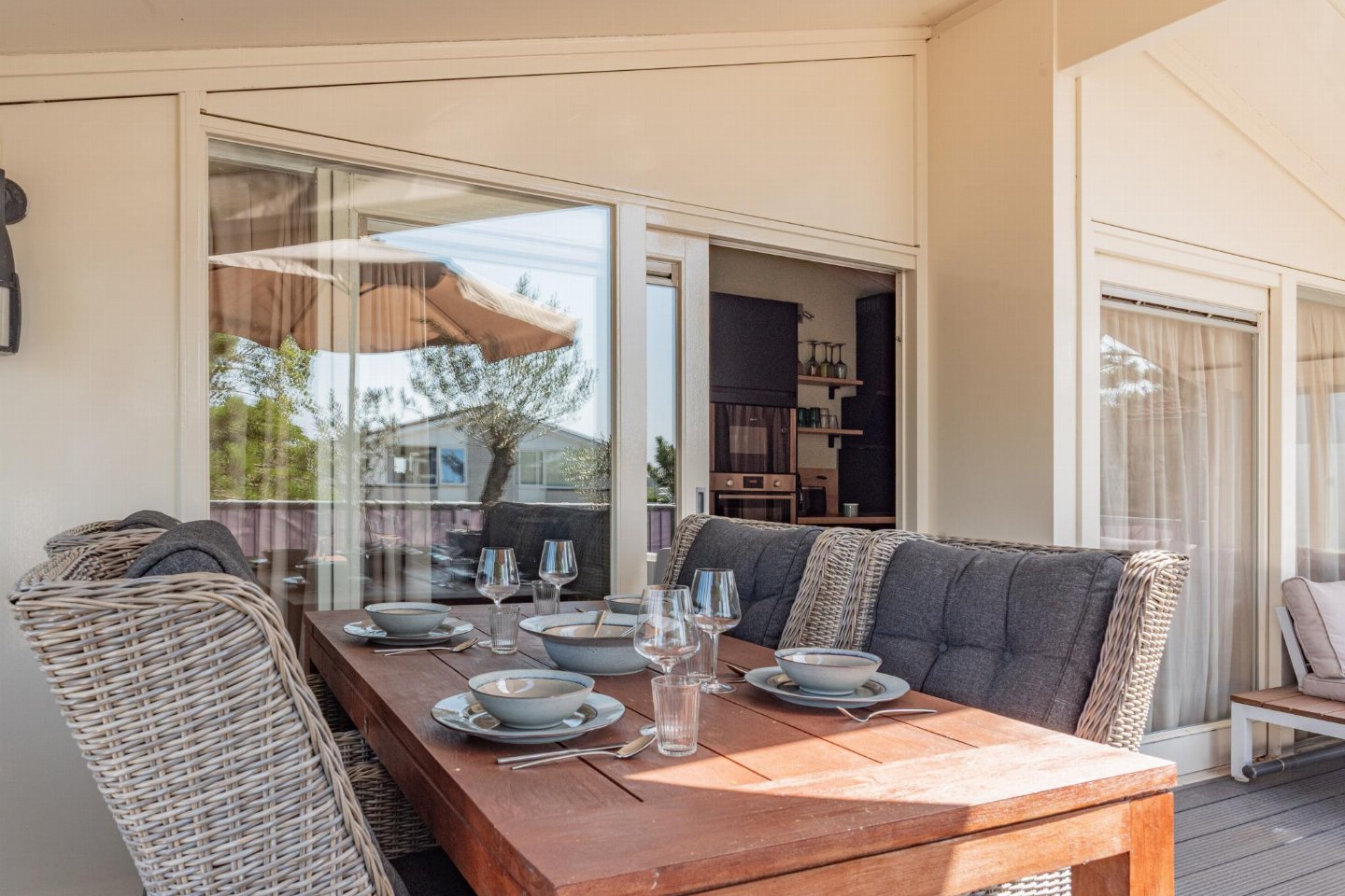 De woning heeft een sfeervolle woonkamer op de verdieping met aansluitend een groot terras aan de achterzijde: dé plek om samen te ontspannen na een dag strand of waterplezier. Aan de voorzijde is er mooi uitzicht over het water en de haven van het Beach Resort.