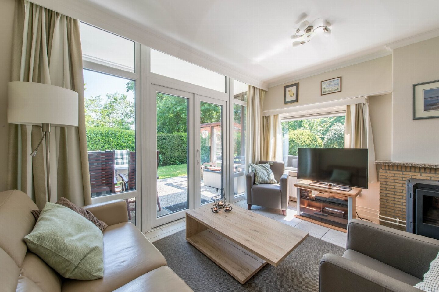 Nederland, Zeeland, KamperlandDeze kleine, sfeervolle 4-persoons vakantiebungalow is gelegen op een unieke locatie in vakantiepark De Banjaard, omringd door een prachtig begroeide, riante en omheinde tuin van ongeveer 1900 m2. U kunt in deze woning zowel digitaal- als via de satelliet televisie kijken. De badkamer heeft een douche en een wastafel.