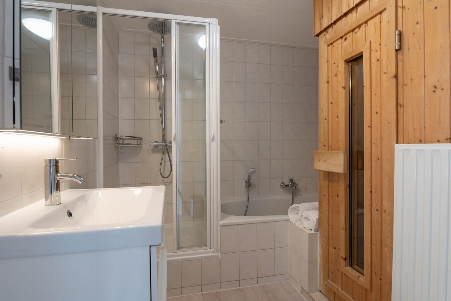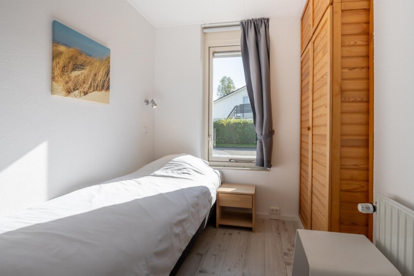 De entree van de woning biedt toegang tot drie slaapkamers met Auping bedden (extra lang, 2.10m), waarvan een slaapkamer met een tweepersoonsbed en twee slaapkamers met elk een éénpersoonsbed. Alle slaapkamers beschikken beide over een tv. De badkamer is voorzien van een douche, wastafel en een Finse sauna, waar u heerlijk kunt ontspannen na een fijne strandwandeling. In de hal is een gastentoilet.