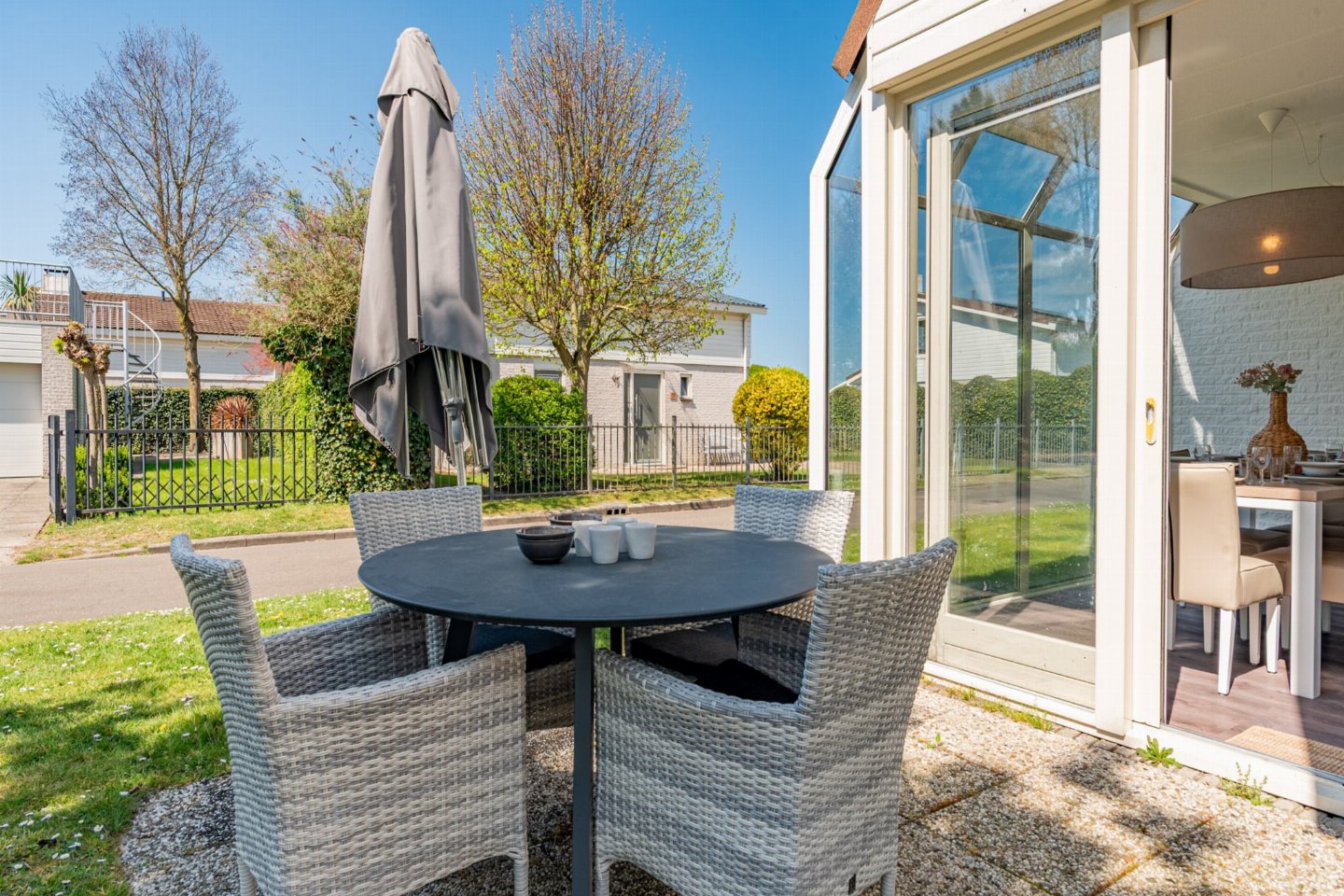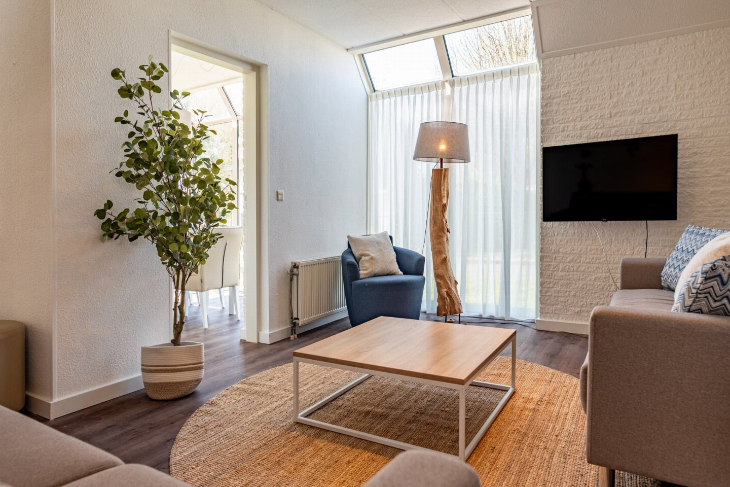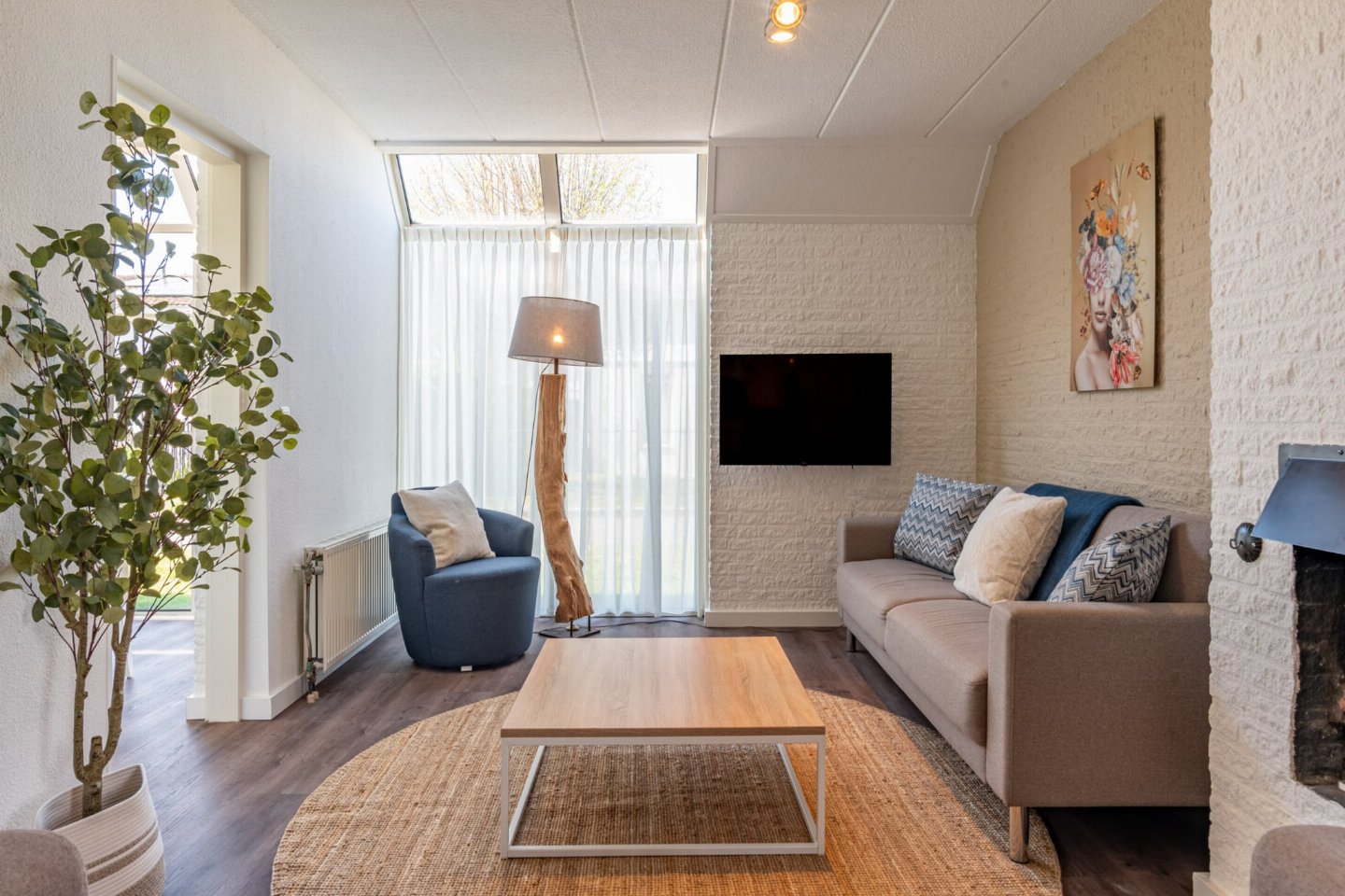 Vrijstaande 6-persoons vakantiewoning op Beach Resort Kamperland. De woning beschikt over 3 slaapkamers, waarvan één op de begane grond, een badkamer en apart toilet beneden en een tweede toilet boven. De gezellige woonkamer met open keuken grenst aan het terras en de groene tuin.