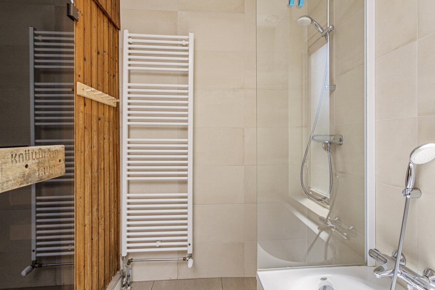 Begane grond: woonkamer met TV, open haard , open keuken met koffiezetapparaat(senseo pads), oven, magnetron, afwasmachine, koelkast , slaapkamer met 2x 1-pers. bed , badkamer met ligbad, douche, sauna, wastafel , wc