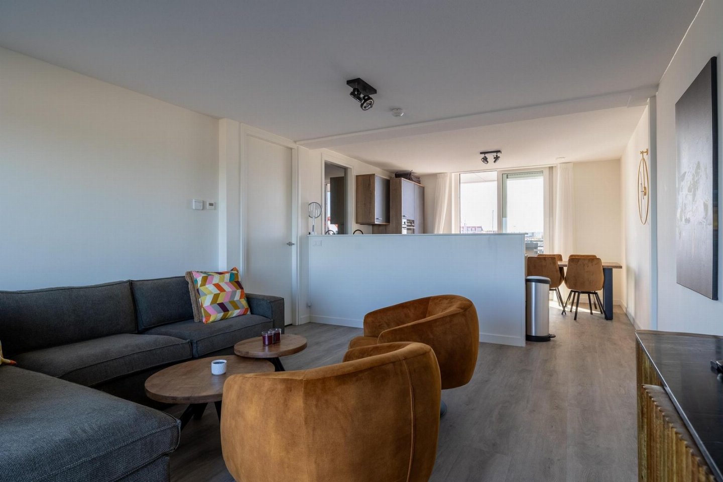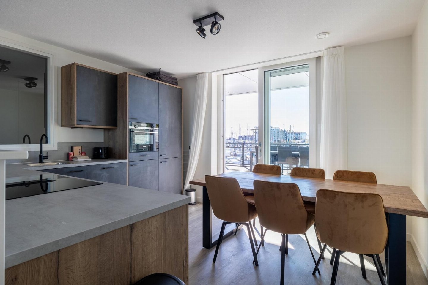 De open keuken, afgescheiden door een halfhoge wand, is volledig uitgerust om heerlijke maaltijden te bereiden. Met een kookplaat, combimagnetron, vaatwasser, koel-vriescombinatie en broodrooster heb je ook op je vakantieadres alles bij de hand voor culinaire hoogstandjes. Een heerlijk kopje koffie of thee zet je met de Nespresso-machine of waterkoker.