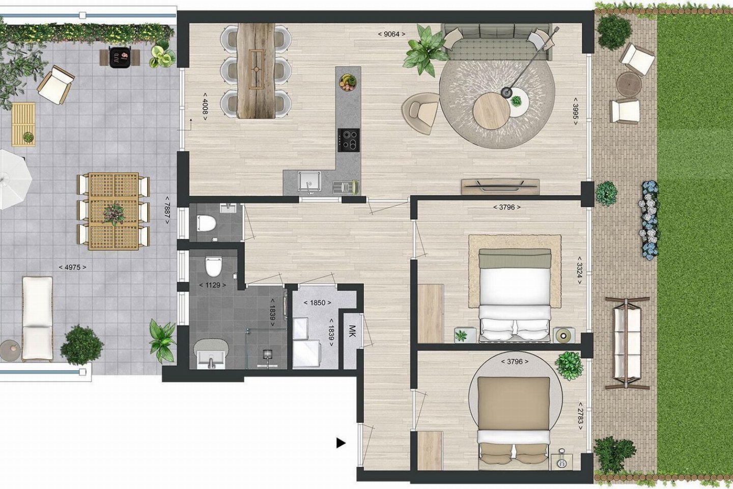 Bij dit appartement wordt het nog moeilijk kiezen tussen twee prachtige buitenruimtes. Het mooie ruime terras (57m2) aan de voorzijde kijkt uit op de haven en het dorpje Sint-Annaland. Het is zo ruim dat er naast een grote eettafel ook nog plaats is voor een fijne loungebank. Aan de achterzijde van het appartement word je vanuit de tuin (47m2) vanaf de ligbedden getrakteerd op een prachtig panoramisch uitzicht over de Oosterschelde.