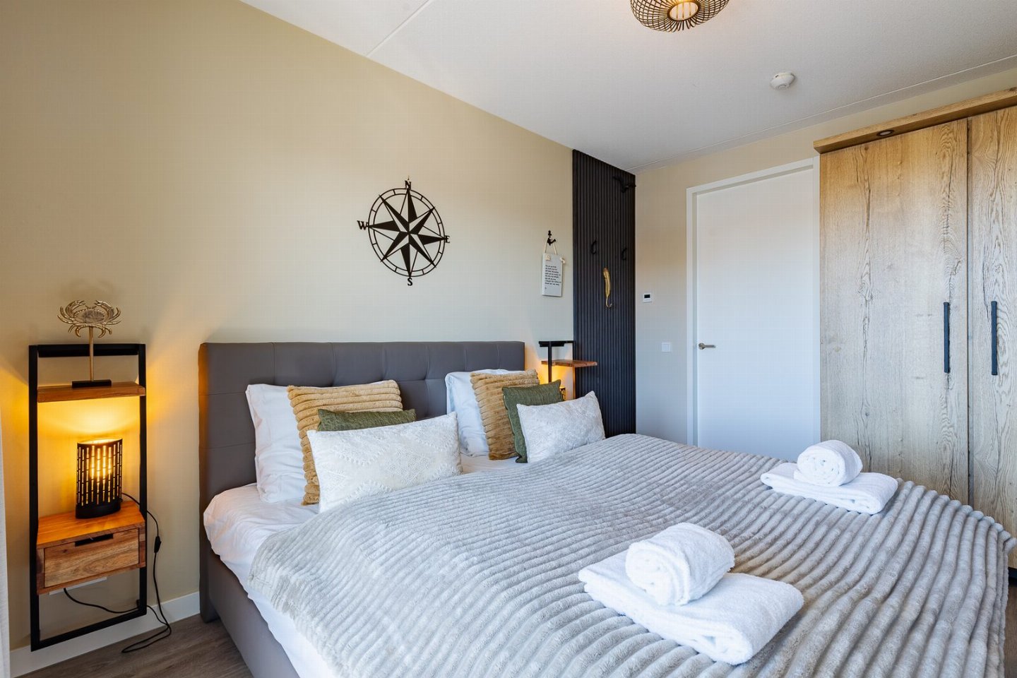 De accommodatie beschikt over twee slaapkamers, elk met twee eenpersoonsbedden (90x200cm) die samen een tweepersoonsbed vormen. Vanuit je bed kun je nog even je favoriete serie kijken. Beide kamers zijn voorzien van een kledingkast, nachtkastjes met verlichting en een kapstok.