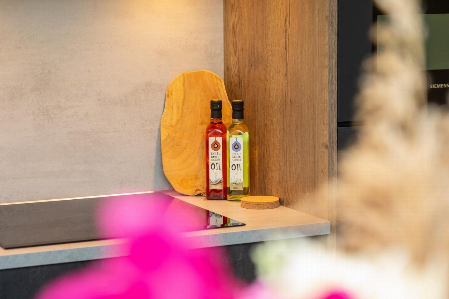 In de woonkeuken staat een grote robuuste tafel met zitruimte voor 6 personen. De strakke keuken is van alle gemakken voorzien. Met de aanwezigheid van een kookplaat, combi-magnetron, vaatwasser, koelkast en vriezer tover je in een handomdraai ook in je eigen vakantiewoning de lekkerste gerechten op tafel. Genieten van een heerlijk bakje koffie of thee, binnen of in de tuin of balkon, gaat zeker lukken met behulp het Nespresso koffiezetapparaat en de aanwezige waterkoker.Â