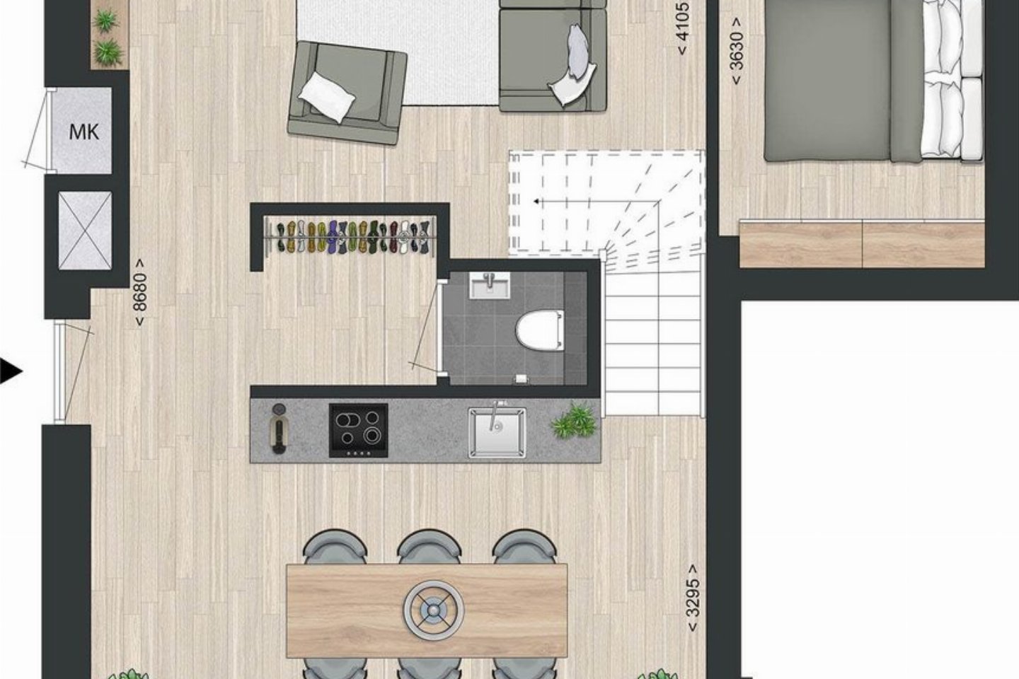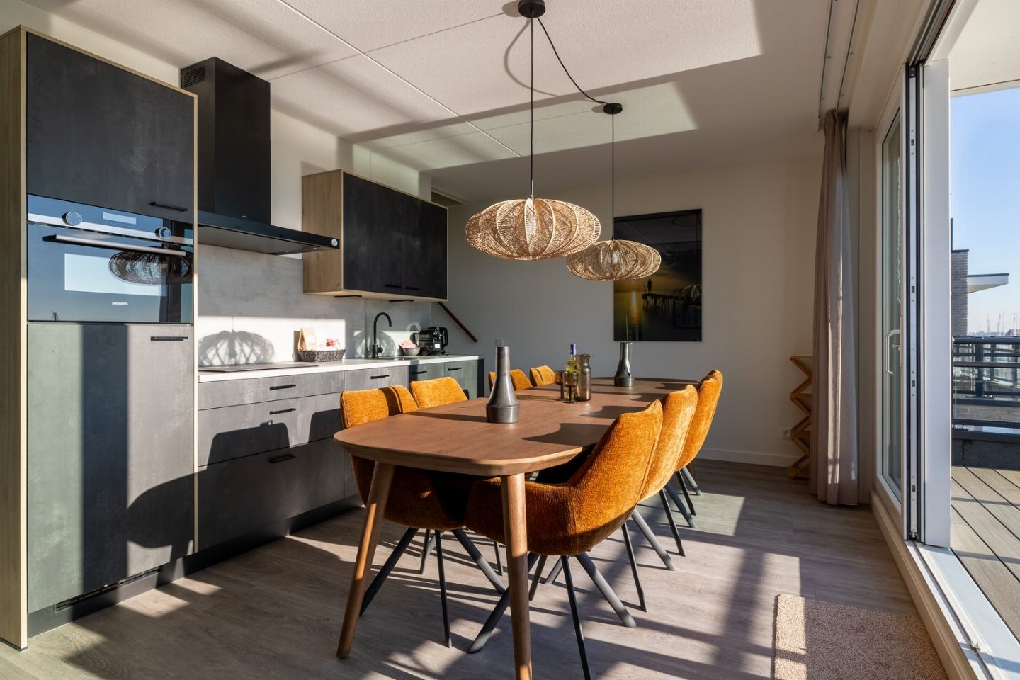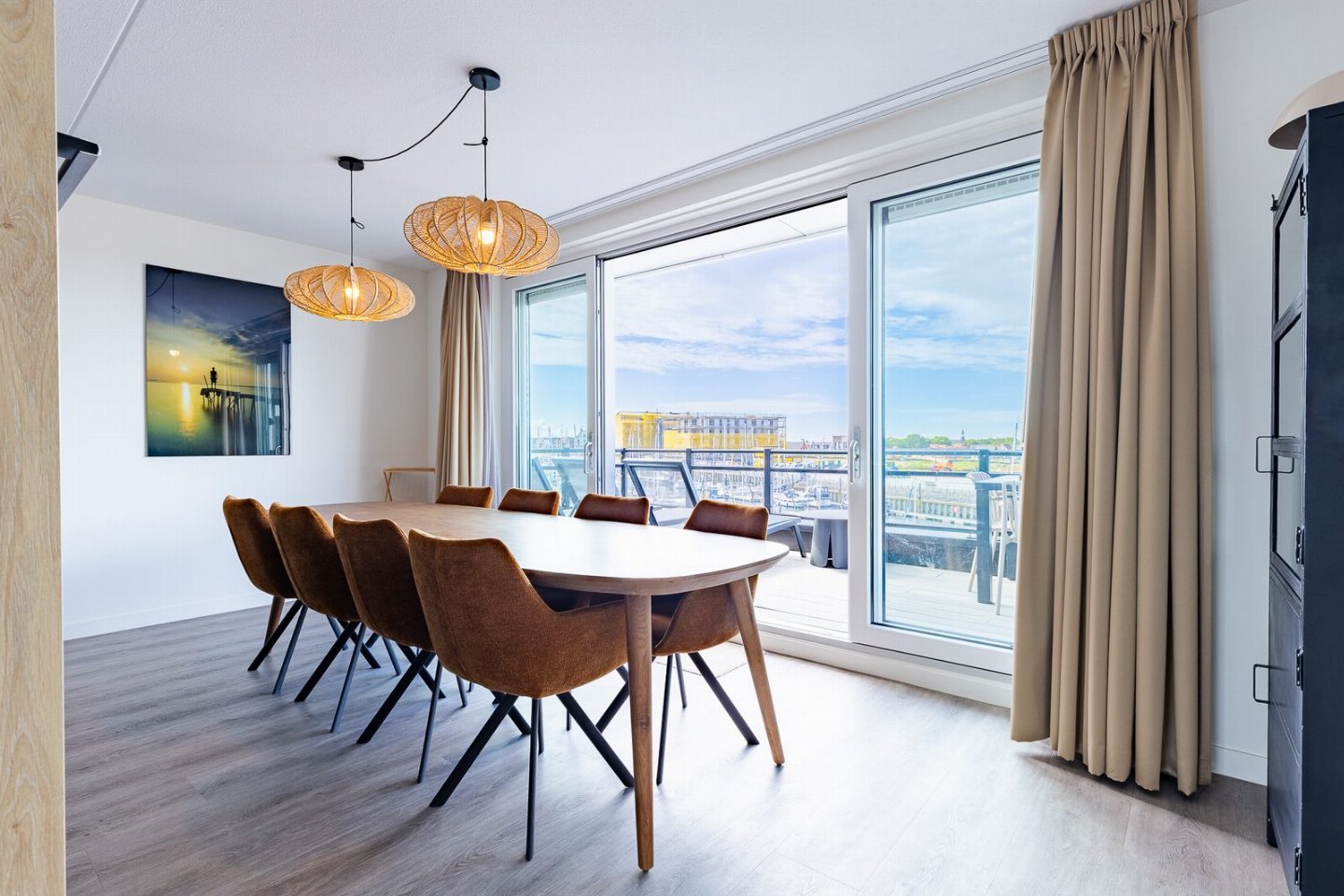 De eettafel in de woonkeuken voor 8 personen is de perfecte plek om samen te komen. Op warme dagen schuif je de pui open en verplaats je het diner naar het terras (tafel voor 4 personen). Er zijn ook drie heerlijke ligbedden om op te relaxen. Hier heb je een fantastisch uitzicht over de haven van Sint-Annaland.