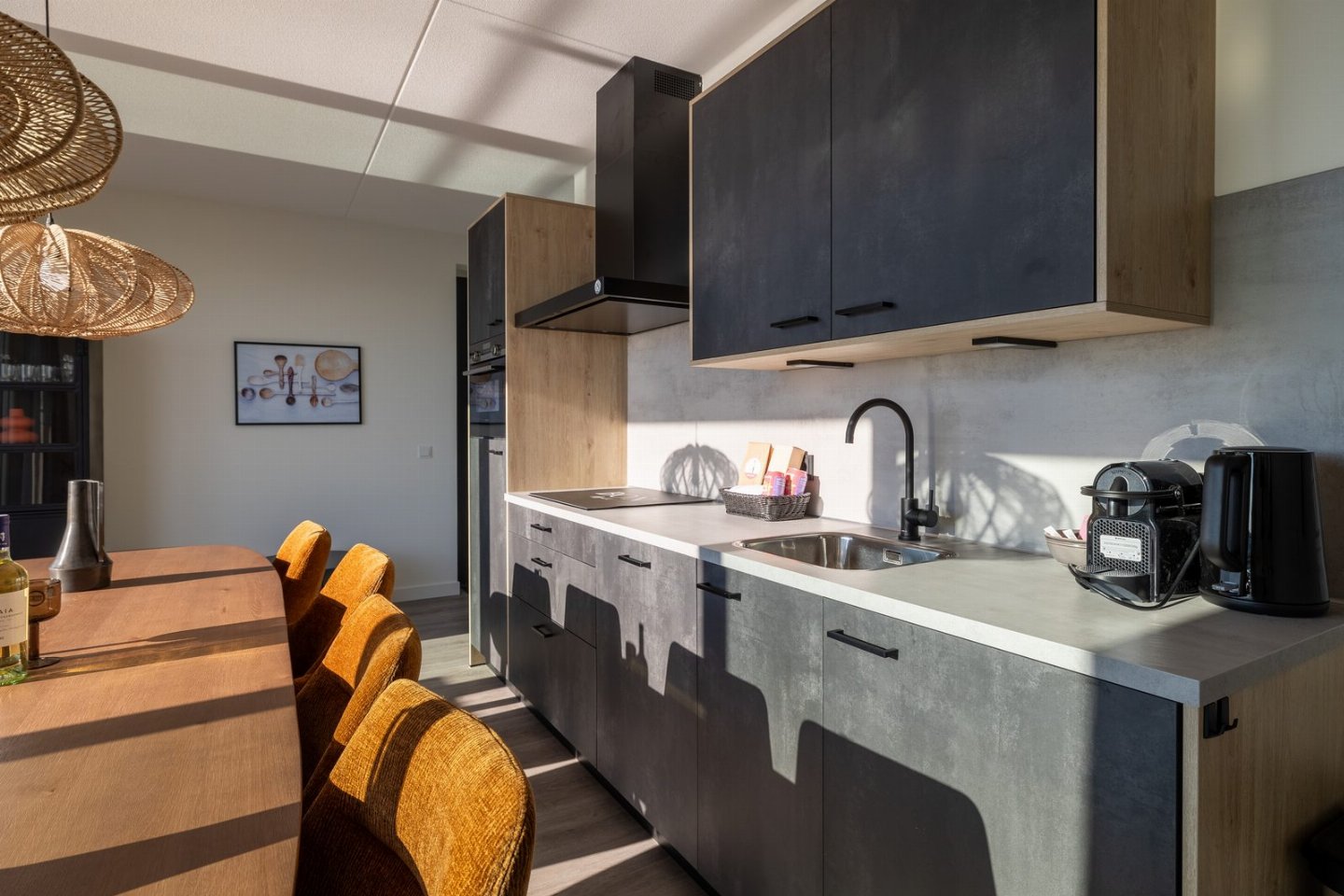 In je tijdelijke thuis word je verrast door de doordachte indeling. De woonkamer nodigt uit tot ontspannen met een ruime hoekbank en twee comfortabele fauteuils. Terwijl je televisie kijkt, heb je constant dat prachtige uitzicht over de Oosterschelde. In de open keuken bereid je met gemak een heerlijke maaltijd. Met een kookplaat, oven, vaatwasser en koelkast met vriesvak heb je alles bij de hand. Geniet van je verse koffie uit de Nespresso-machine of zet een kopje thee met de waterkoker.