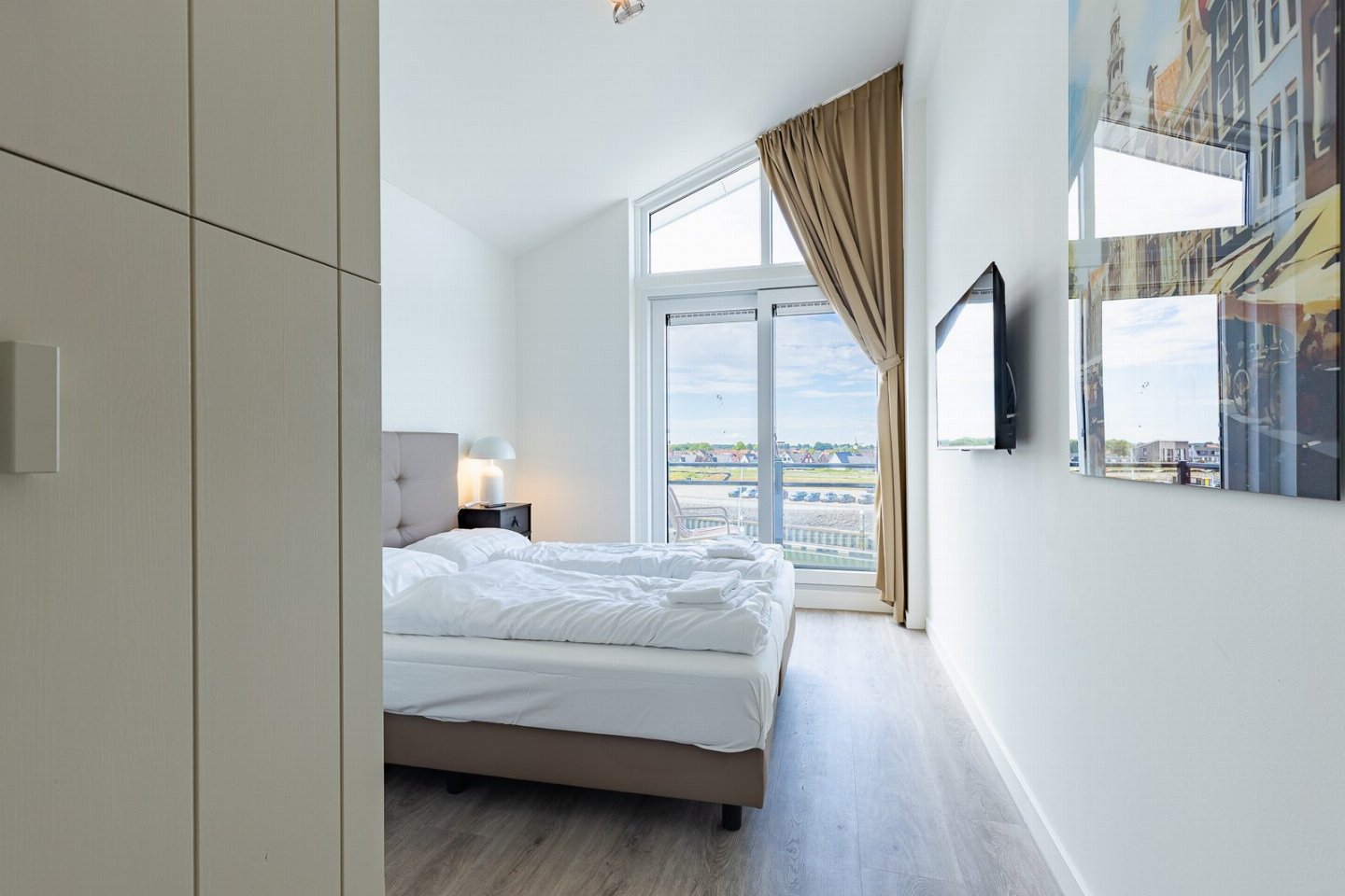 Op de eerste verdieping wachten nog drie slaapkamers op je. Twee aan de havenzijde, beide met een tweepersoonsbed (160x200cm) en opbergruimte. In één van deze kamers hangt ook een televisie. De derde slaapkamer op deze verdieping heeft eveneens een tweepersoonsbed (160x200cm) en een televisie. Het hoge plafond en de bijzondere raampartij geven deze kamer een unieke sfeer.