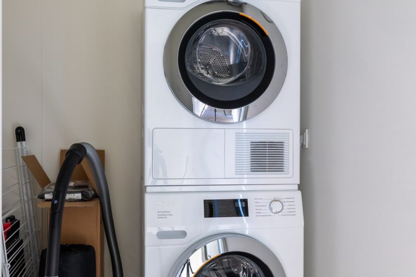 Je vindt in Haus am See twee complete badkamers, beide voorzien van een ruime inloopdouche en wastafel met spiegel. Er zijn twee aparte toiletten in het appartement, voor extra gemak, een bij de woonkamer en keuken en een op de verdieping. En vergeet niet de handige opbergruimte met wasmachine en droger.