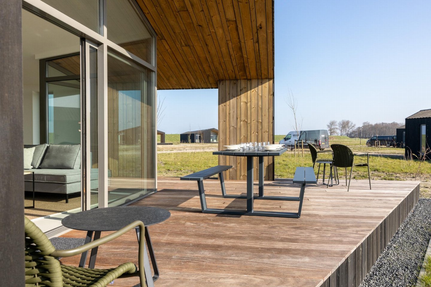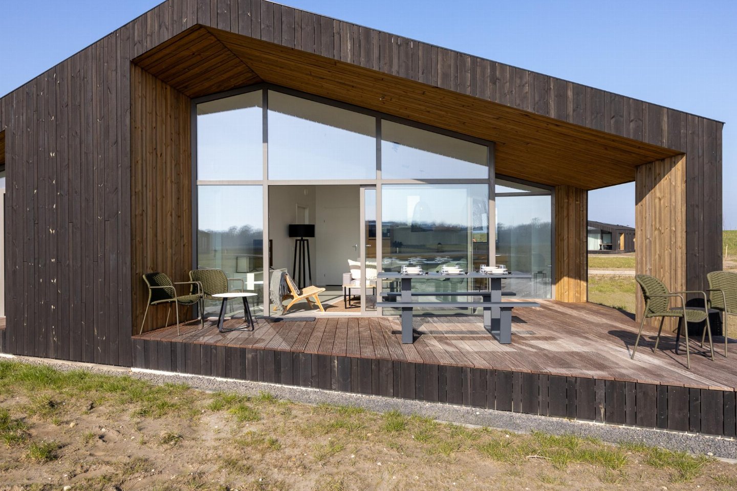 Dit vrijstaande natuurhuis ligt in het hart van Zeeland. De lichte woonkamer, dankzij grote raampartijen en open keuken zorgen ervoor dat het fijn vertoeven is in huis. Er zijn drie slaapkamers, een badkamer met douche en wastafel en een apart toilet. Wandel- en fietsroutes starten direct vanaf het park.