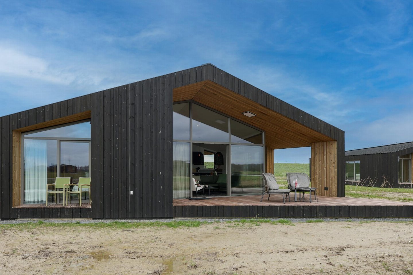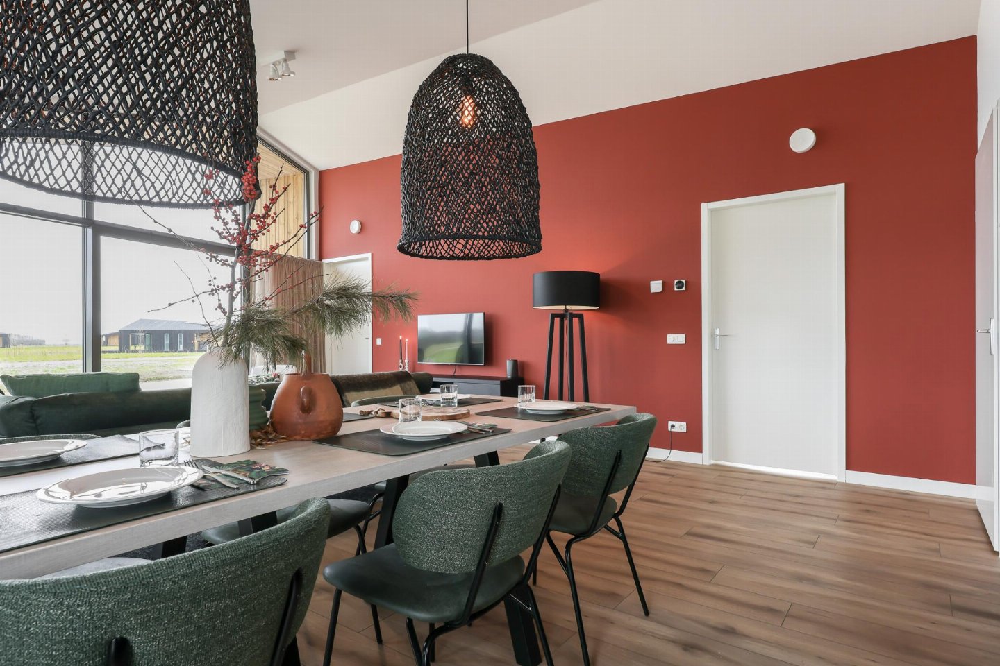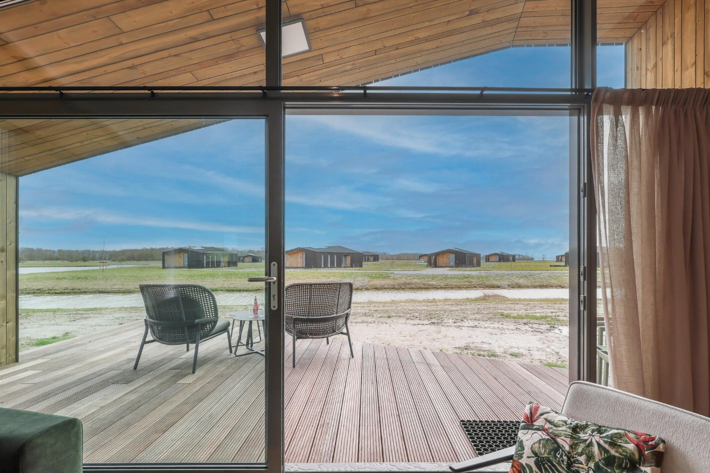 Vrijstaand natuurhuis met woonkamer en open keuken en uitzicht op de waterpartij. Beschikt over 3 slaapkamers en twee badkamers: één ensuite met douche en wastafel en één met douche, wastafel en toilet, plus een separaat toilet in de hal. Rondom meerdere terrassen met verschillende zitplekken