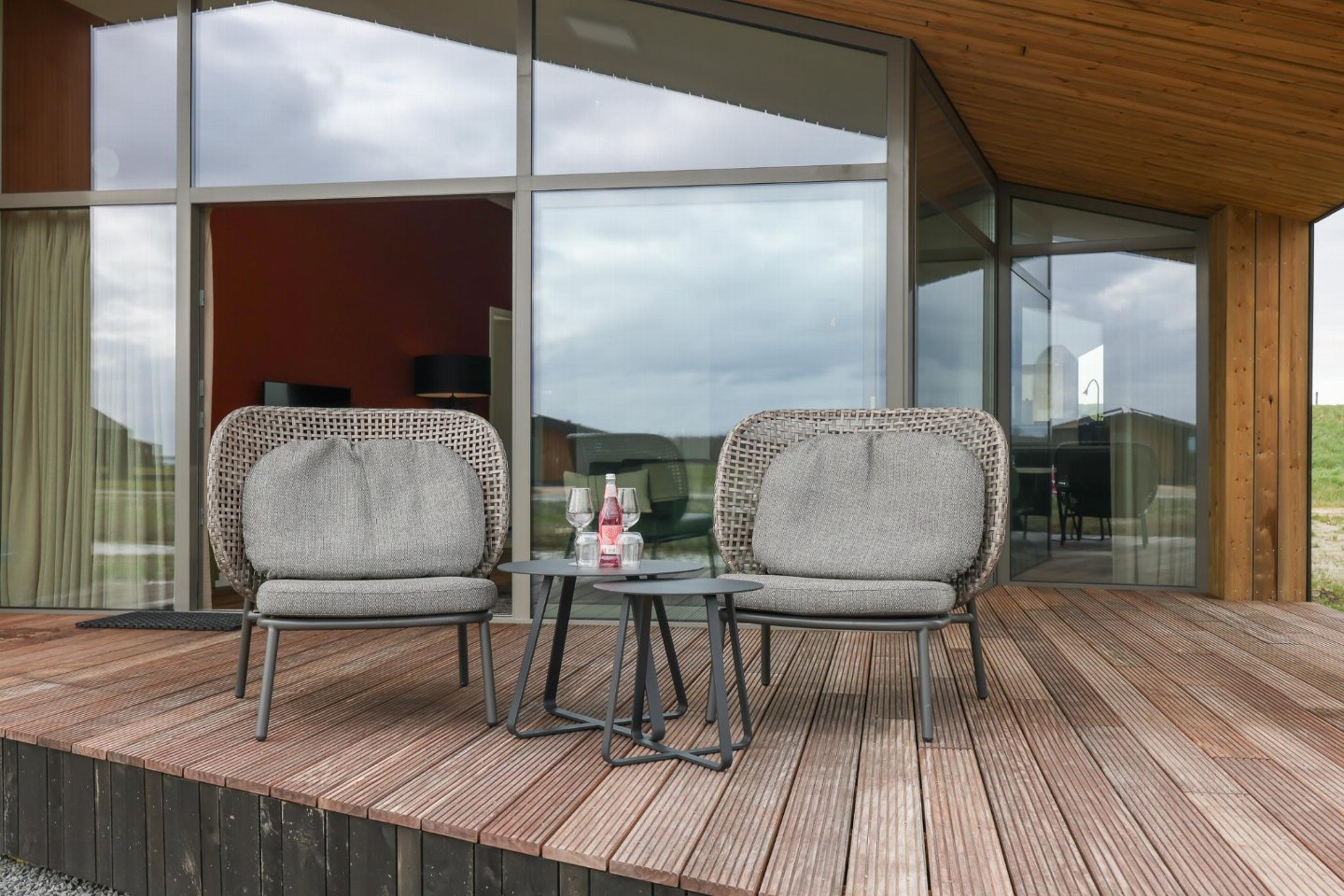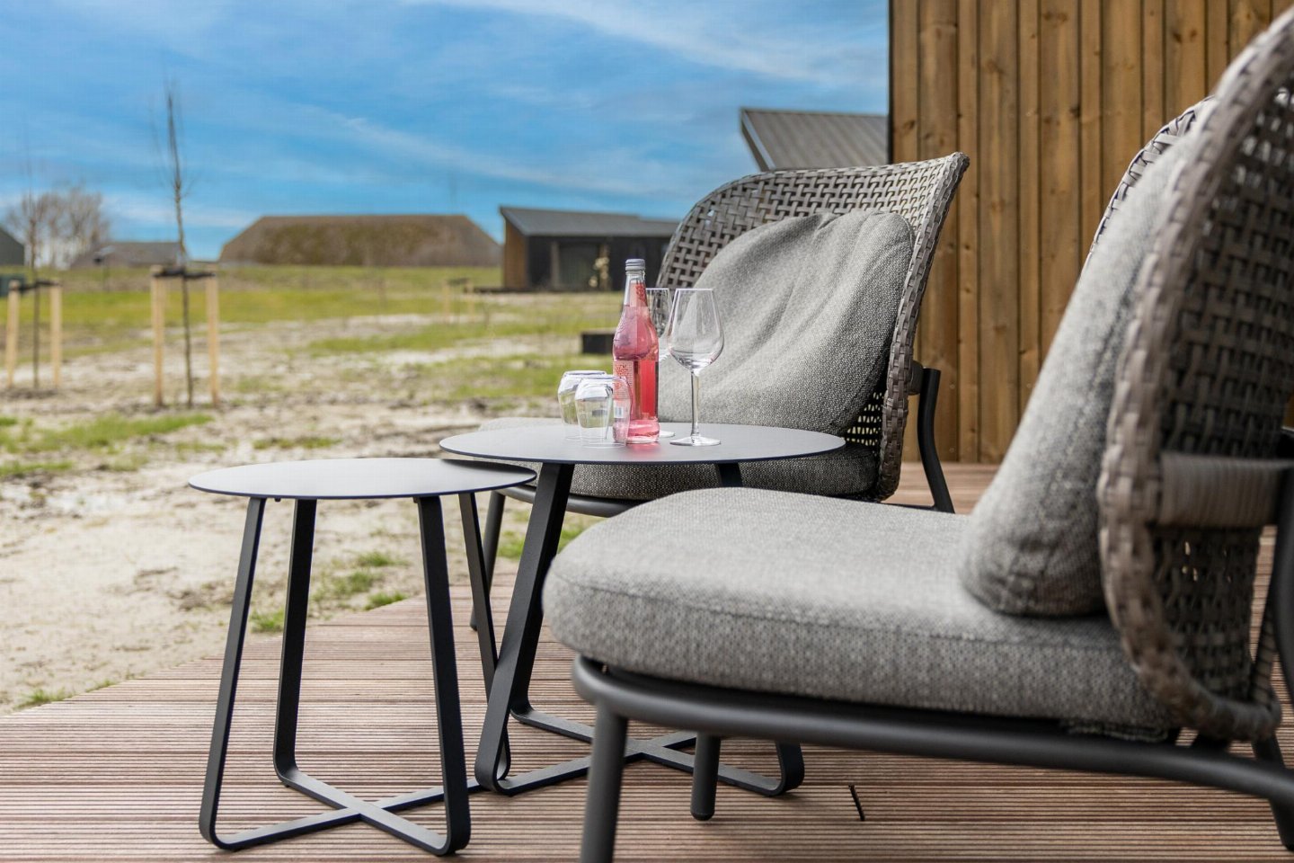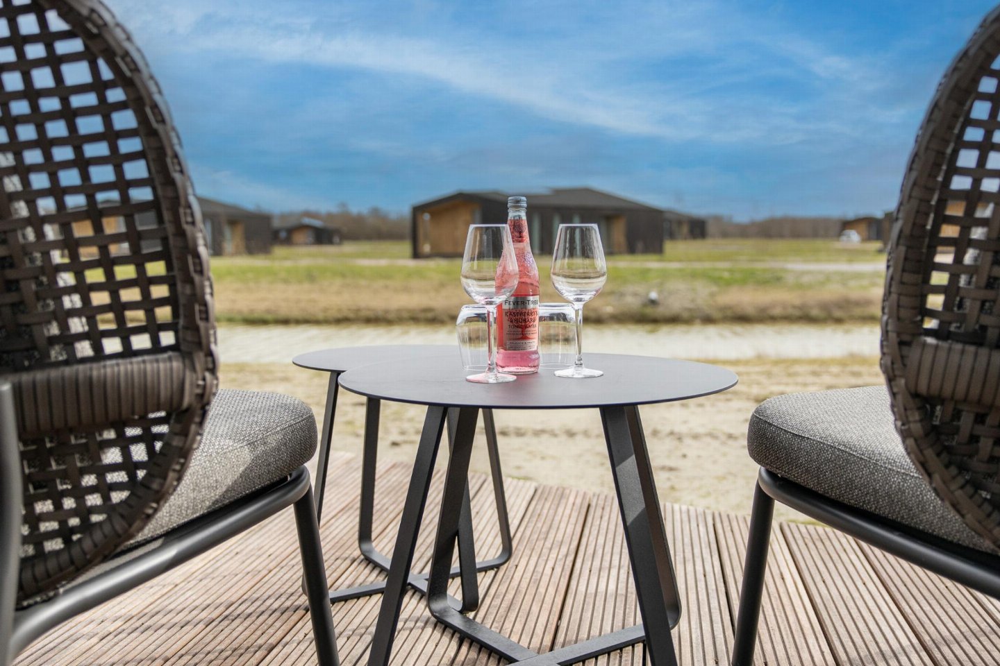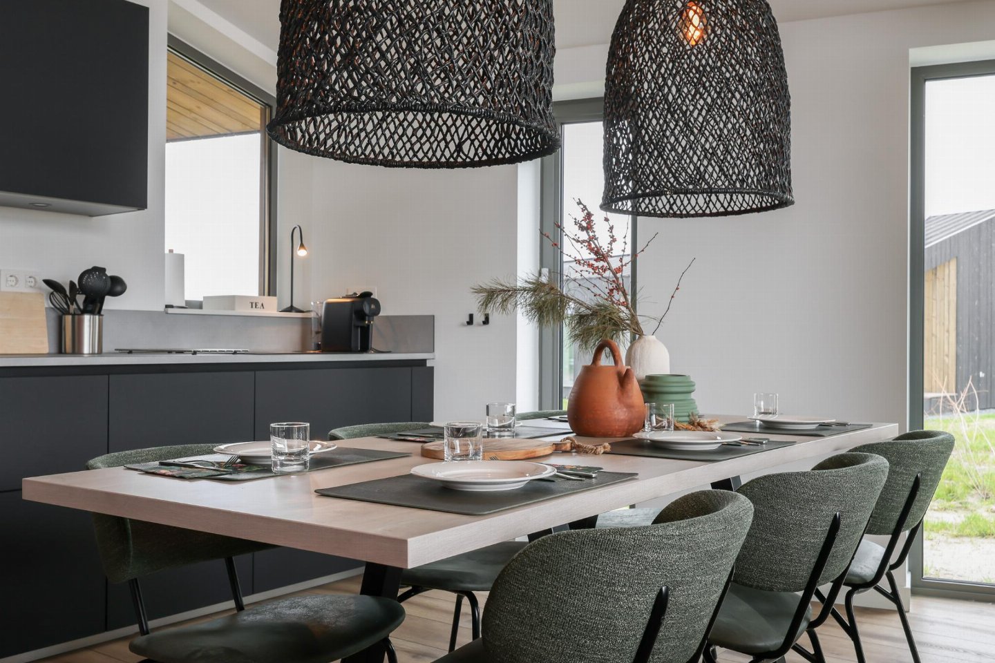 Vrijstaand natuurhuis met woonkamer en open keuken en uitzicht op de waterpartij. Beschikt over 3 slaapkamers en twee badkamers: één ensuite met douche en wastafel en één met douche, wastafel en toilet, plus een separaat toilet in de hal. Rondom meerdere terrassen met verschillende zitplekken
