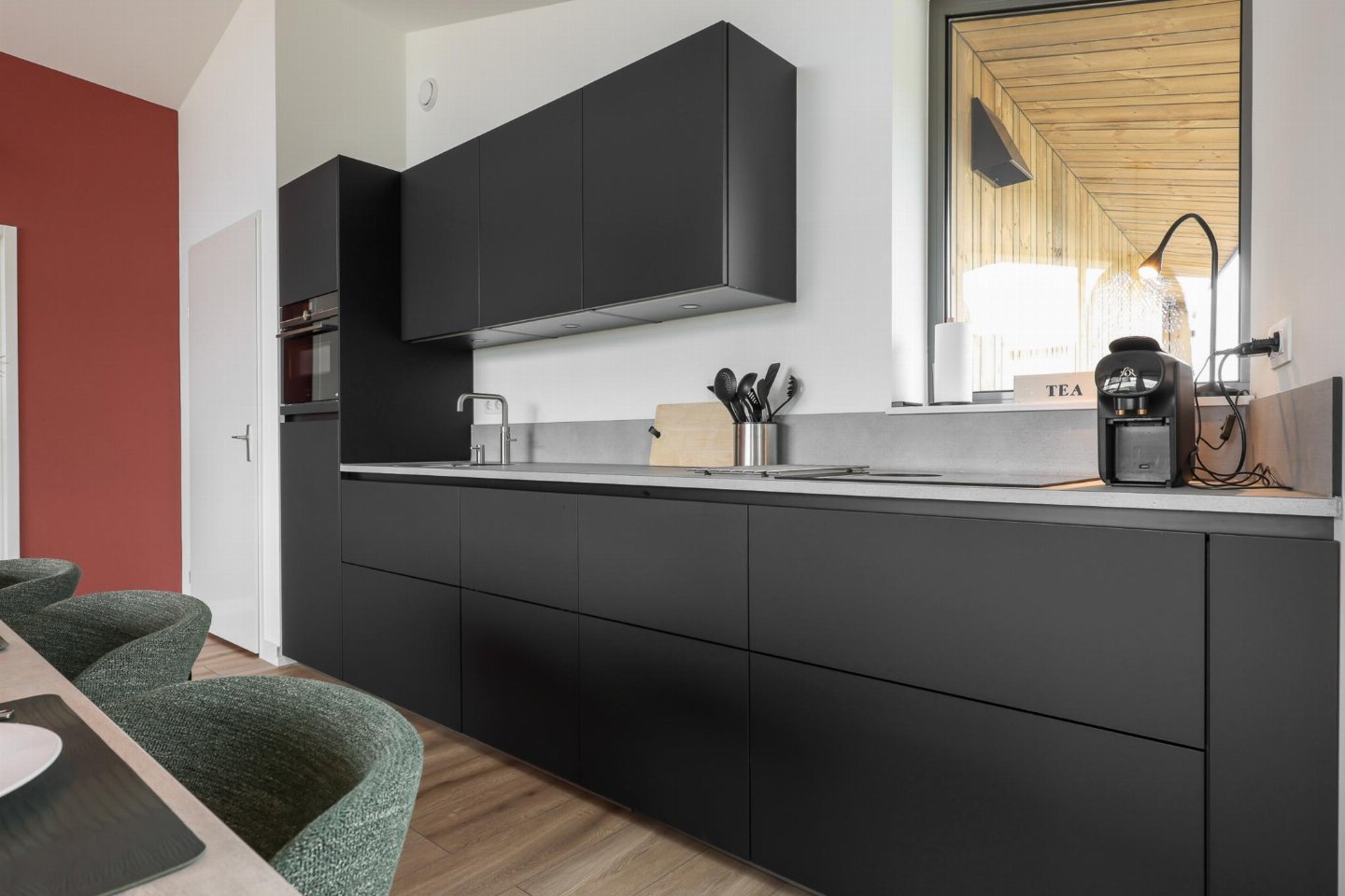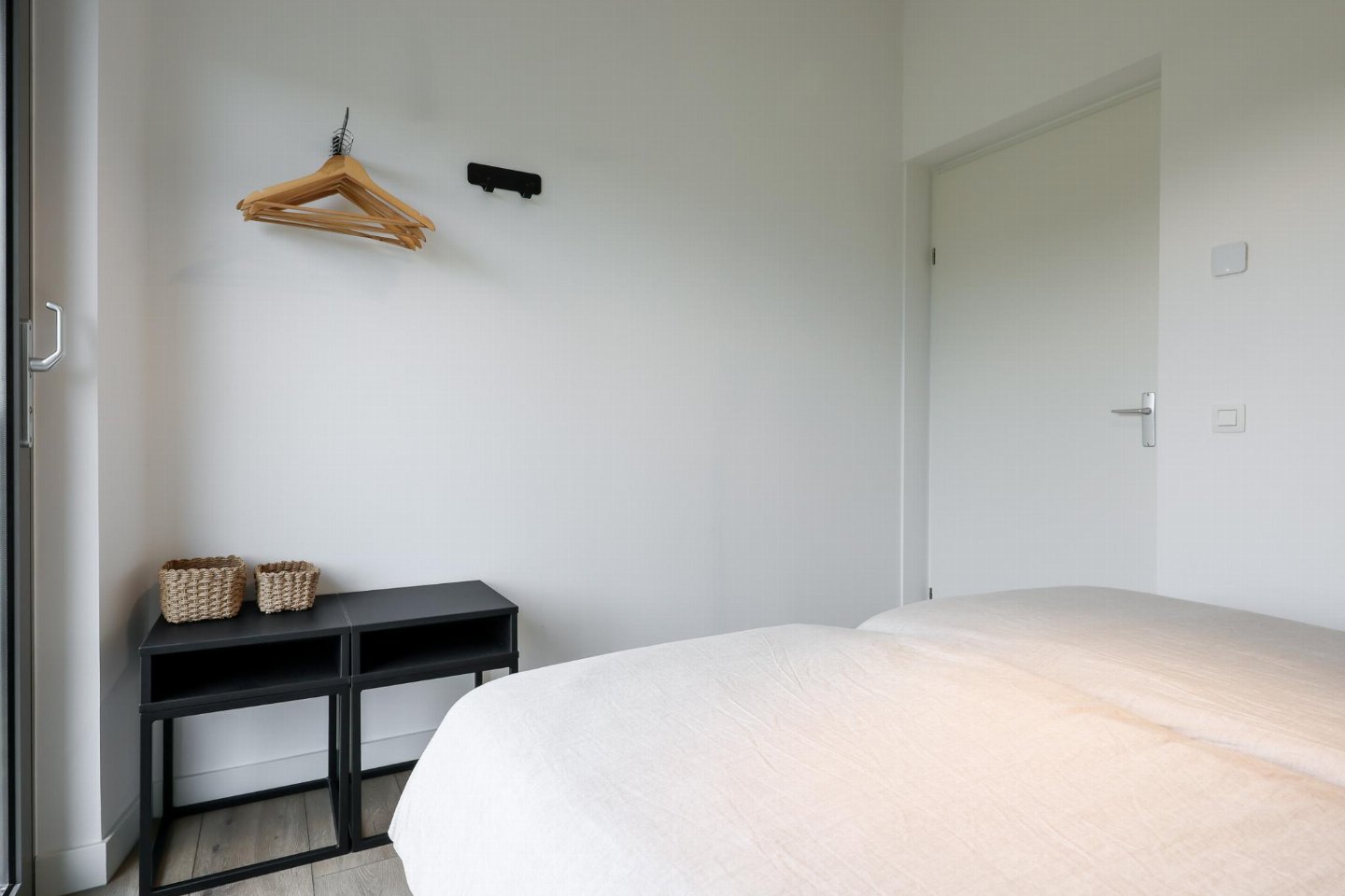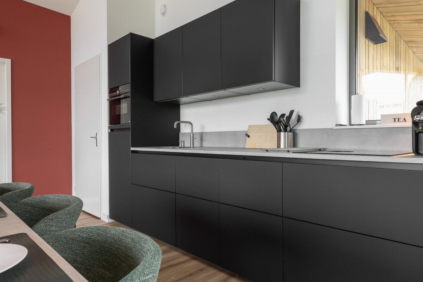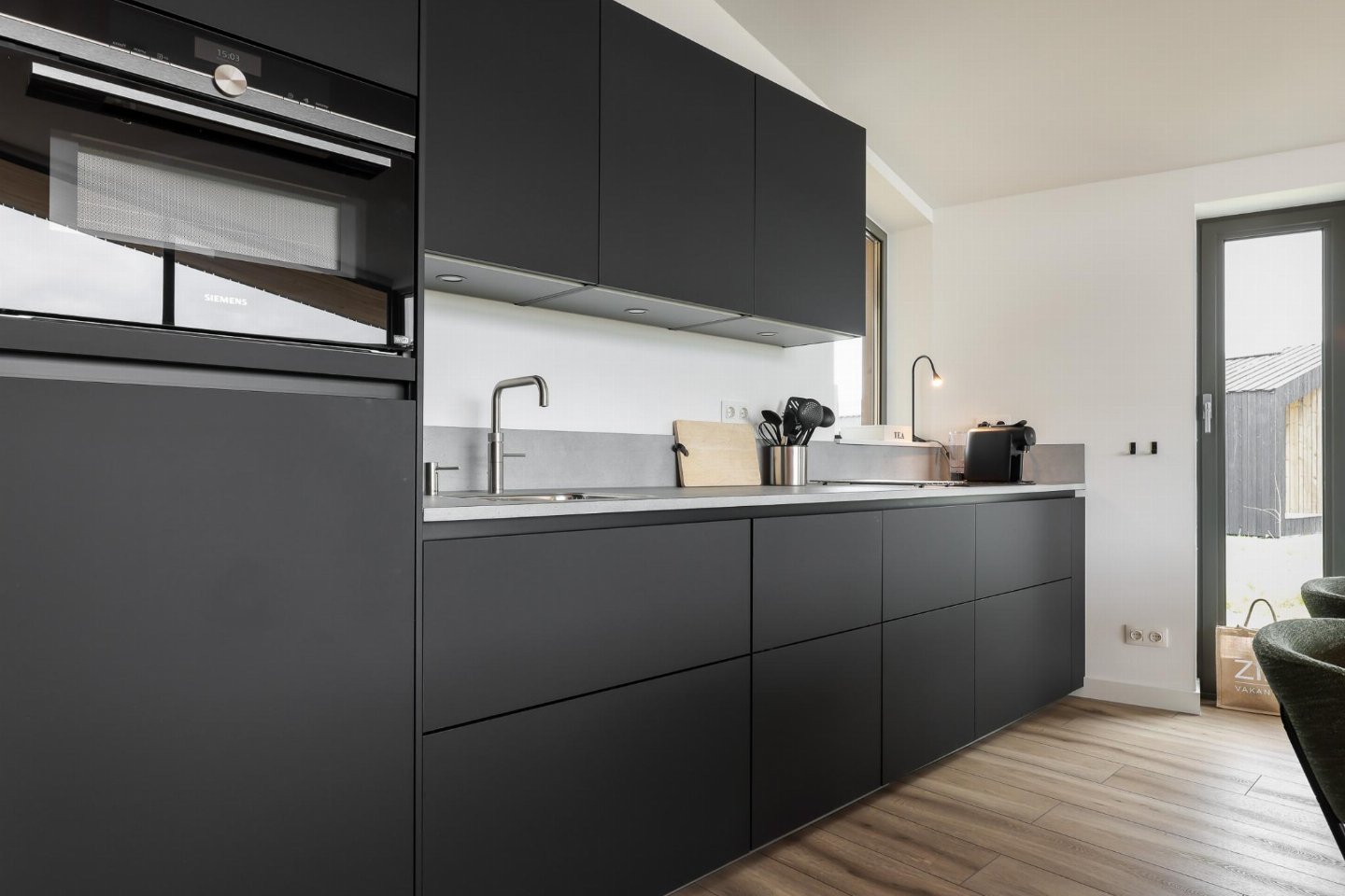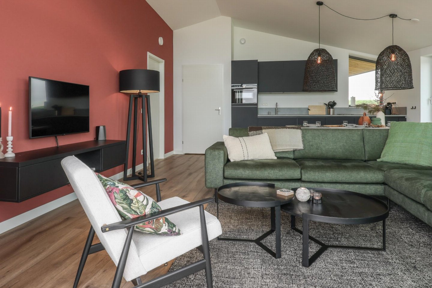 Vrijstaand natuurhuis met woonkamer en open keuken en uitzicht op de waterpartij. Beschikt over 3 slaapkamers en twee badkamers: één ensuite met douche en wastafel en één met douche, wastafel en toilet, plus een separaat toilet in de hal.