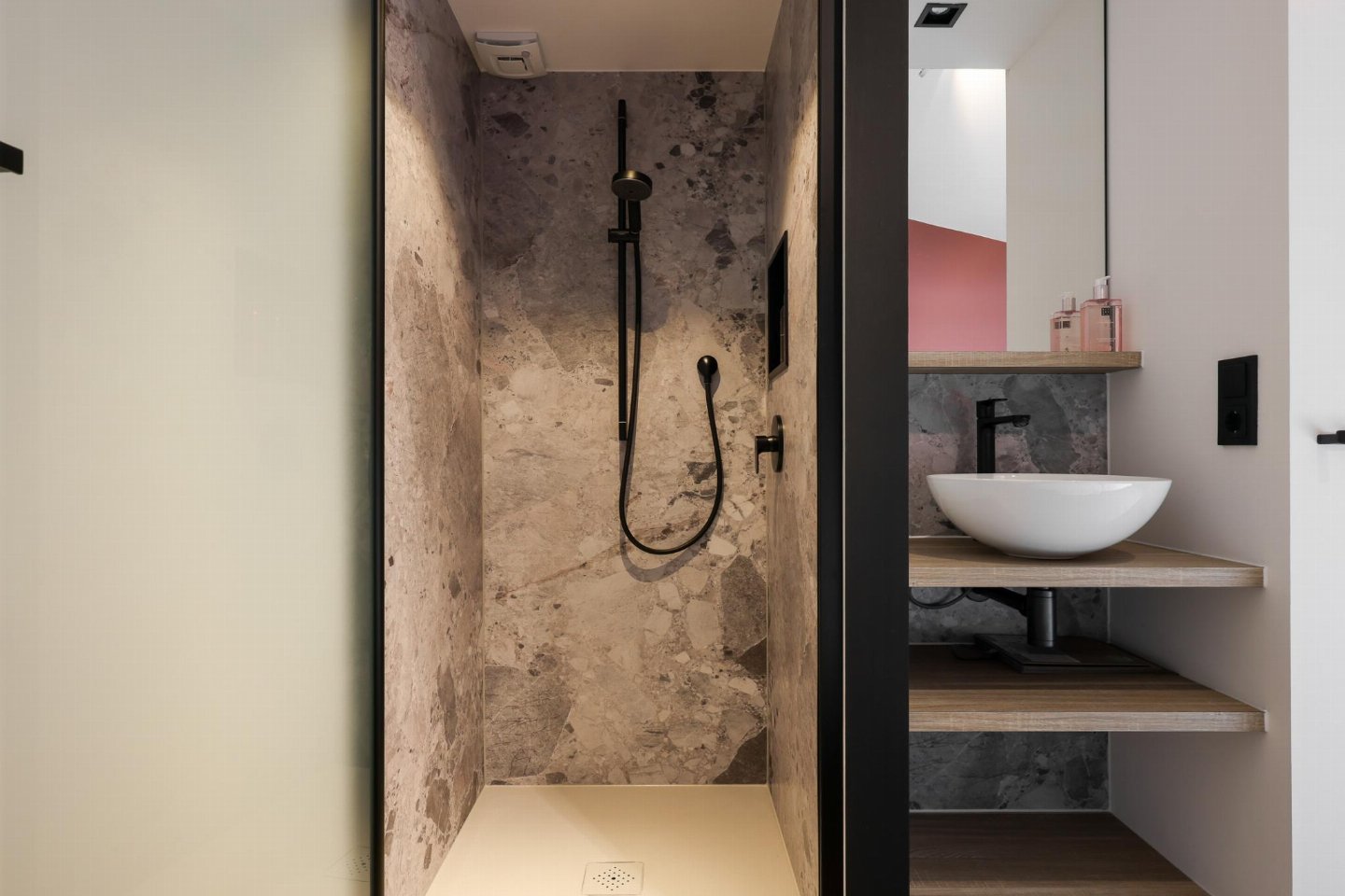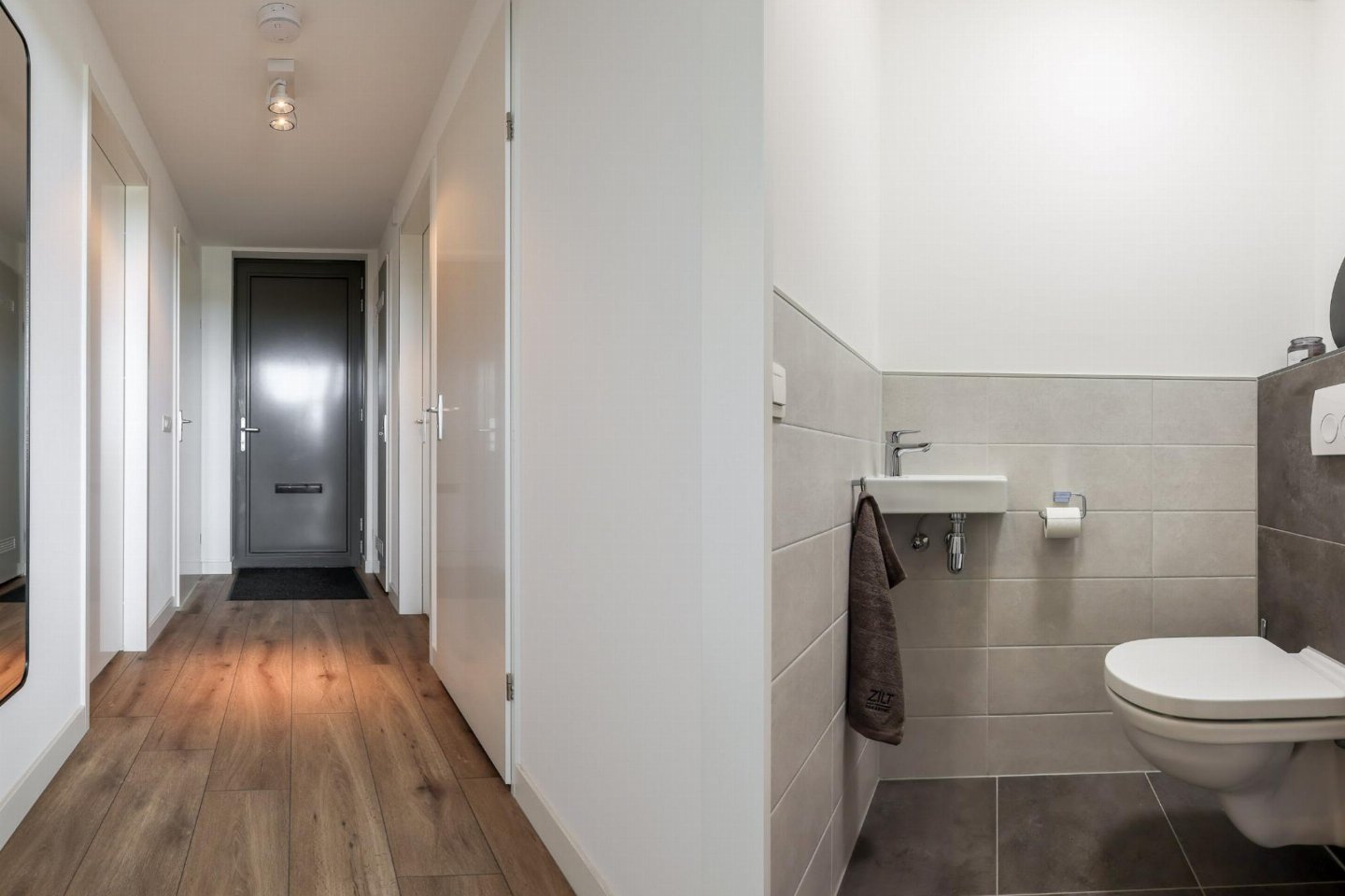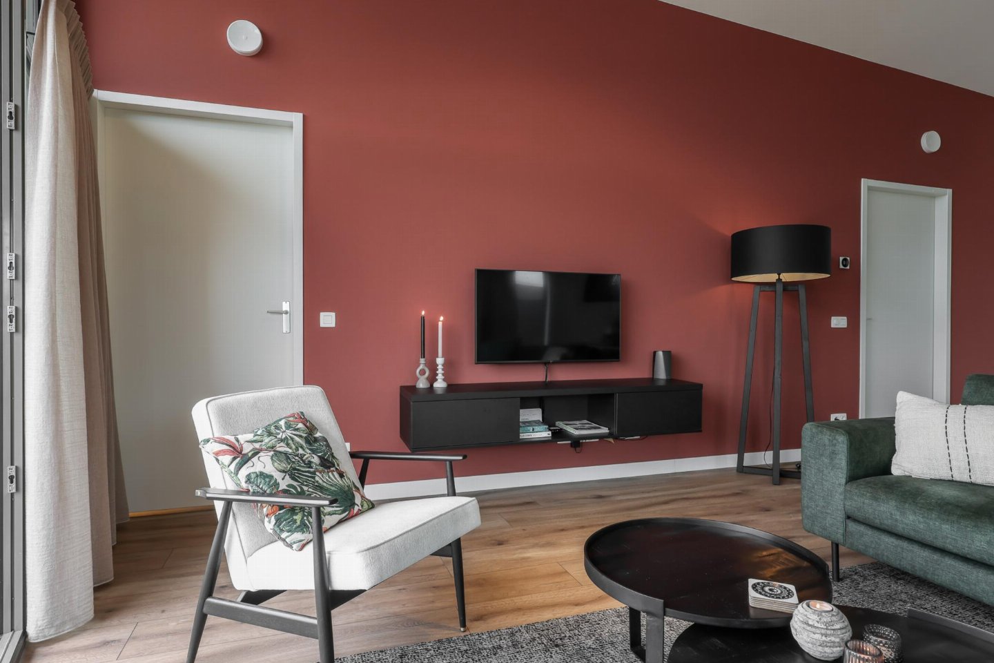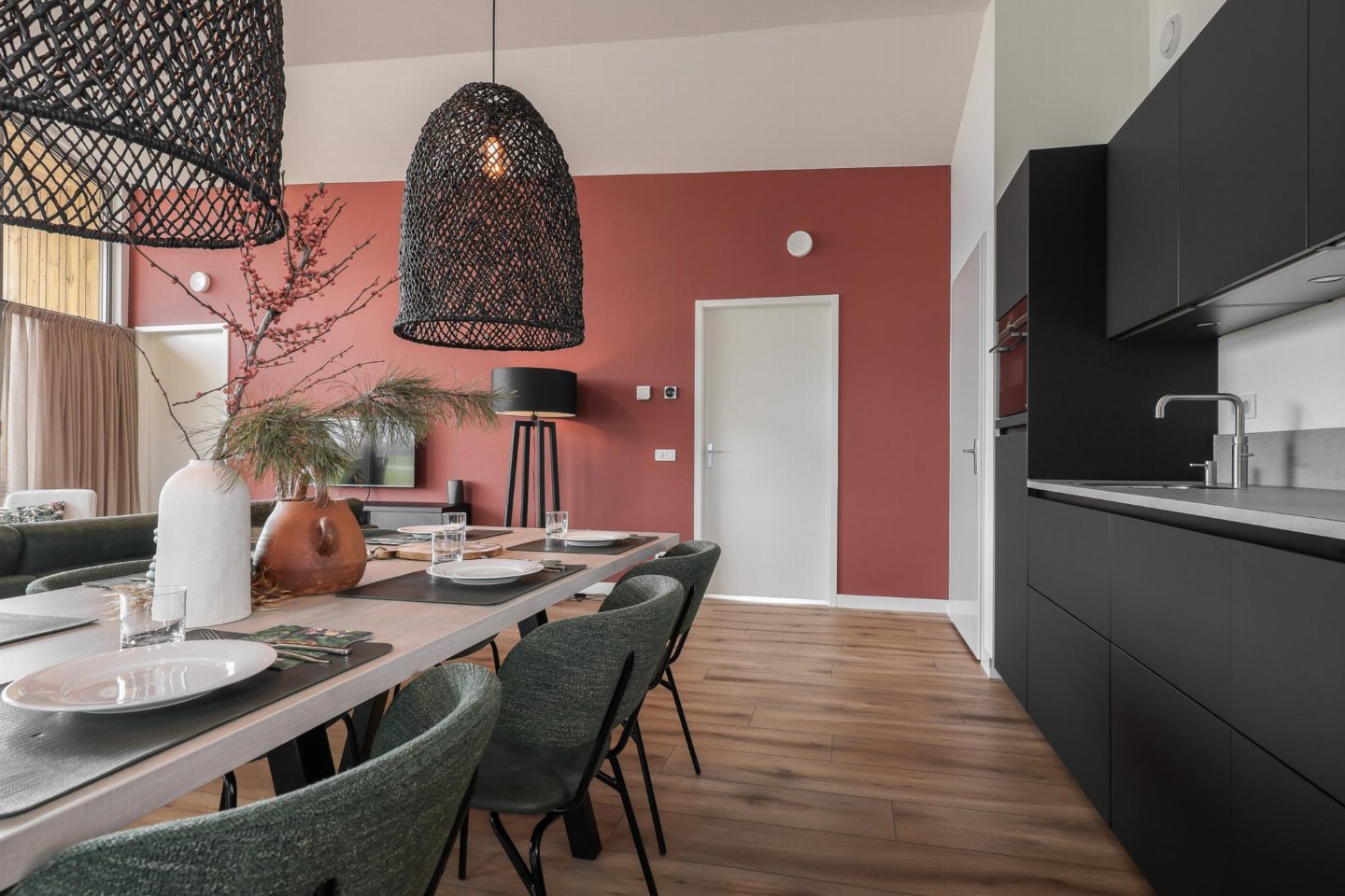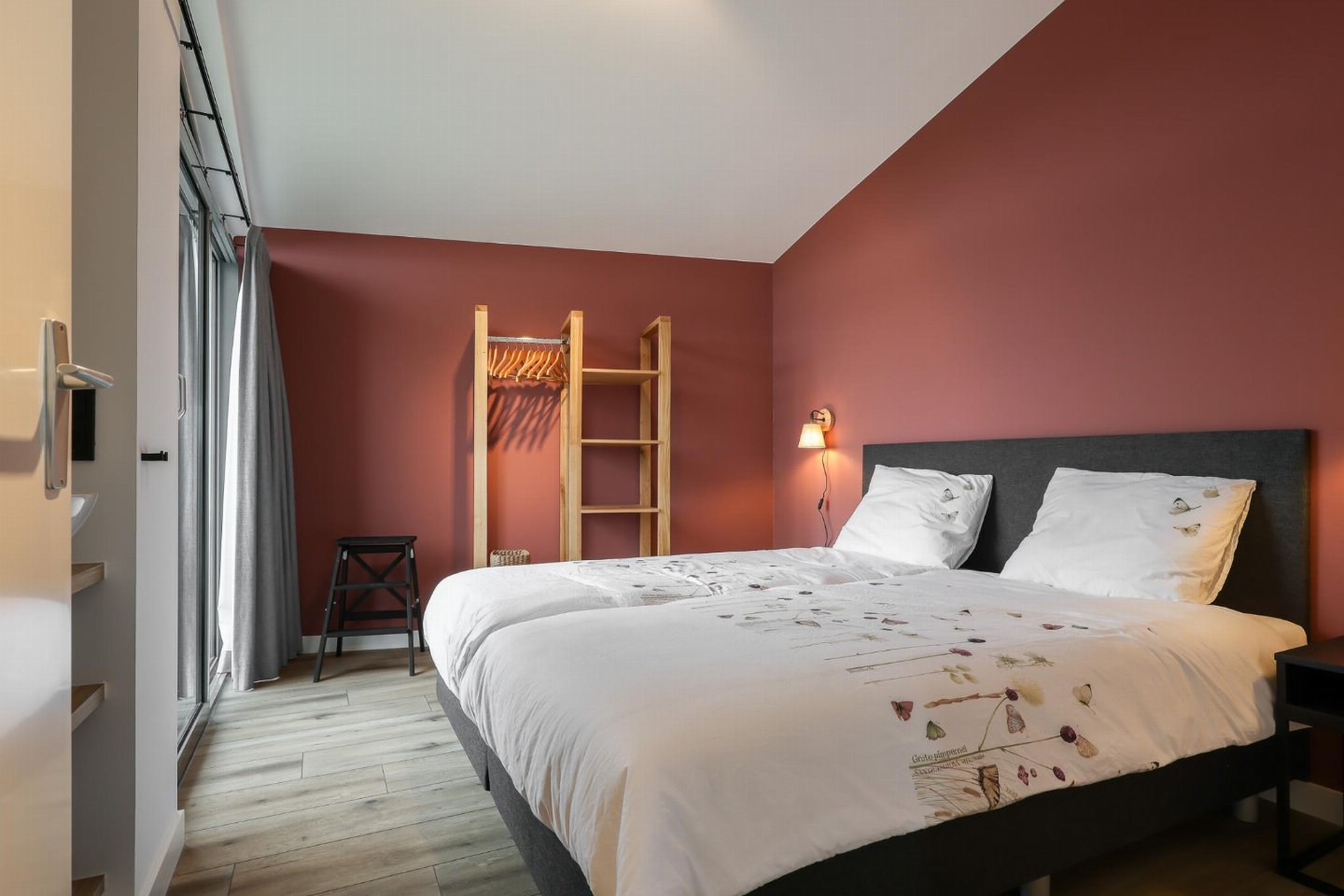 Vrijstaand natuurhuis met woonkamer en open keuken en uitzicht op de waterpartij. Beschikt over 3 slaapkamers en twee badkamers: één ensuite met douche en wastafel en één met douche, wastafel en toilet, plus een separaat toilet in de hal.