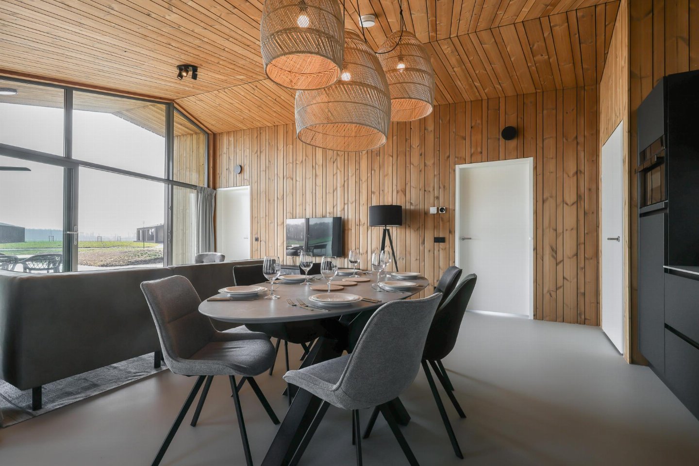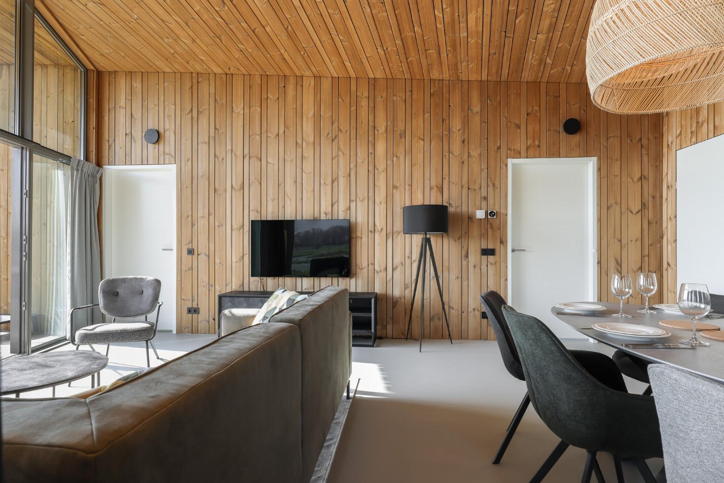 Vrijstaand natuurhuis met woonkamer en open keuken. Beschikt over 3 slaapkamers en twee badkamers: één met douche, wastafel en toilet en één met douche en wastafel, plus een separaat toilet in de hal. Via de schuifpui bereik je direct het grote overdekte terras met uitzicht op de waterpartij. Kinderbed en kinderstoel aanwezig. Hond toegestaan (max. 1)