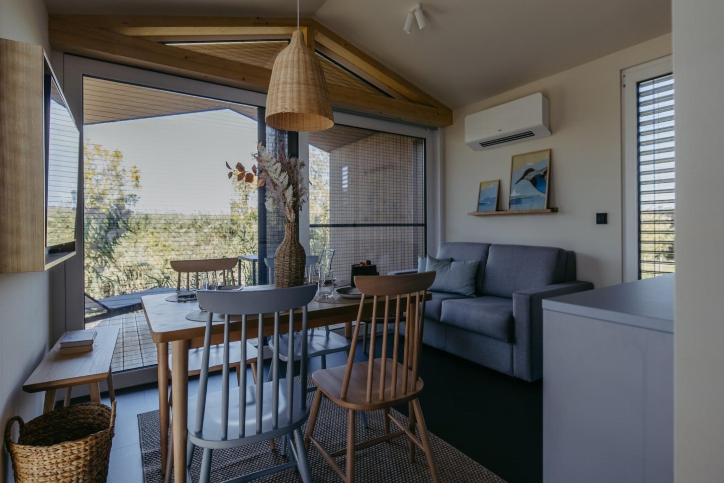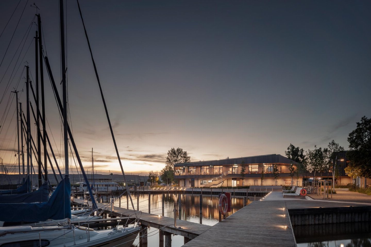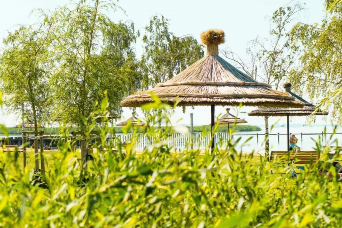 Ontdek de Neusiedlersee vanuit deze moderne lodge/guesthouse midden in een weids, natuurlijk decor op een luxe resort met eigen restaurant en shop in Breitenbrunn, verscholen tussen golvende rietvelden en wijngaarden, en geniet van het ochtendlicht en uitzicht vanuit het ruime terras.