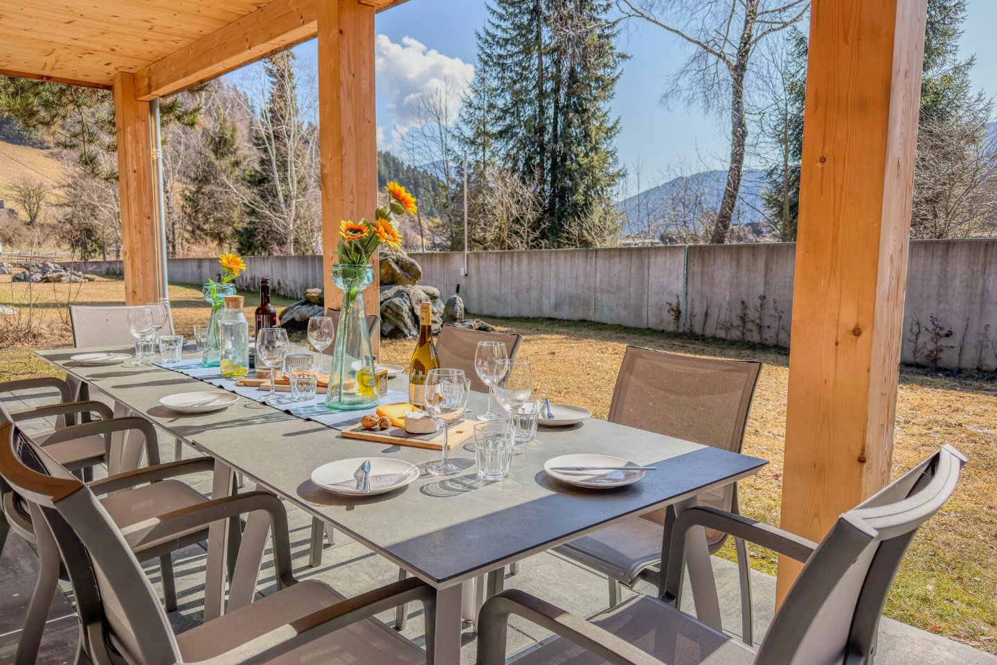 Begane grond(eigen entree): hal, open keuken met kookplaat(4 kookplaten, inductie), waterkoker, afzuigkap, koffiezetapparaat(nespresso cups), combimagnetron, afwasmachine, koel-/vriescombinatie , woon/eetkamer met TV(flatscreen, smart TV), eettafel(8 personen), zithoek , slaapkamer met 2-pers. bed(180 x 200 cm) , badkamer met douche(inloopdouche, Regen), wastafel , toilet met wastafel, wc , skiberging(buitenom bereikbaar), terras(privé, overdekt, verlicht, 45 m2) met eettafel