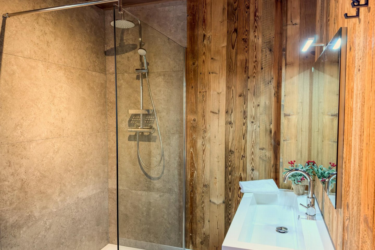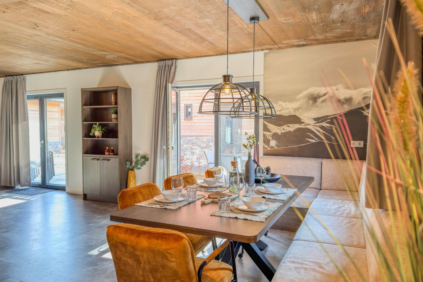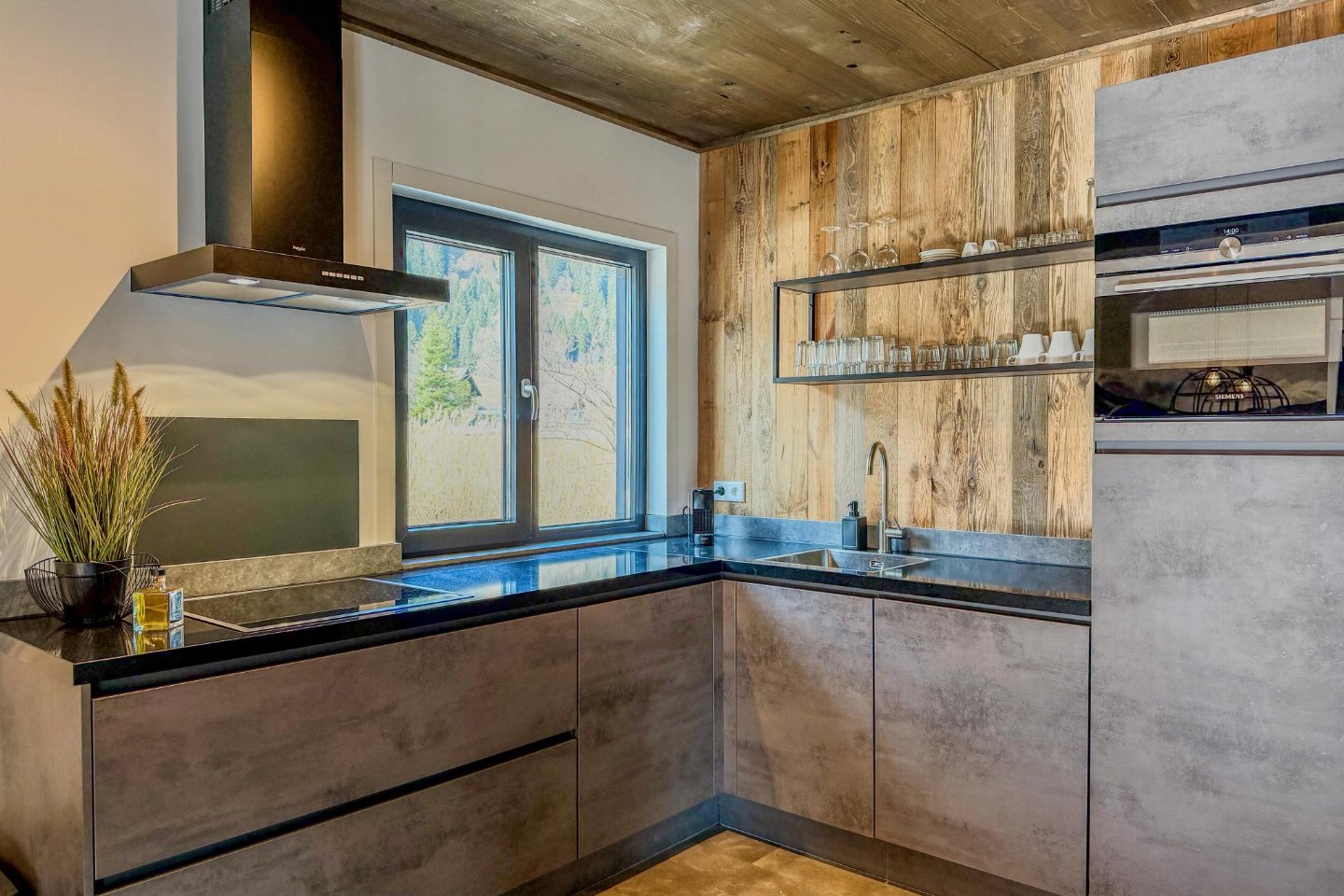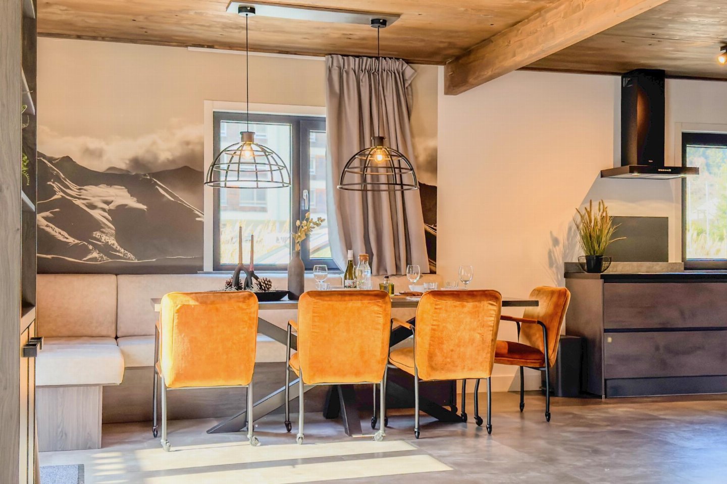 Begane grond(eigen entree): hal met stofzuiger , open keuken met kookplaat(4 kookplaten, inductie), waterkoker, afzuigkap, koffiezetapparaat(nespresso cups), combimagnetron, afwasmachine, koel-/vriescombinatie , woon/eetkamer met 2-pers. slaapbank(160 x 200 cm), TV(flatscreen, smart TV), eettafel(8 personen) , badkamer met douche(inloopdouche, Regen), wastafel , toilet met wastafel, wc , skiberging(buitenom bereikbaar), terras(privé, overdekt, verlicht, 25 m2)