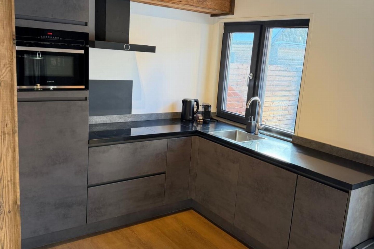 Begane grond(eigen entree): hal, open keuken met kookplaat(4 kookplaten, inductie), waterkoker, afzuigkap, koffiezetapparaat(nespresso cups), combimagnetron, afwasmachine, koel-/vriescombinatie , woon/eetkamer met TV(flatscreen, smart TV), eettafel(6 personen), zithoek , slaapkamer met 2-pers. slaapbank(160 x 200 cm), TV(flatscreen, smart TV) , toilet met wastafel, wc , skiberging(buitenom bereikbaar), terras(privé, overdekt, verlicht, 25 m2)