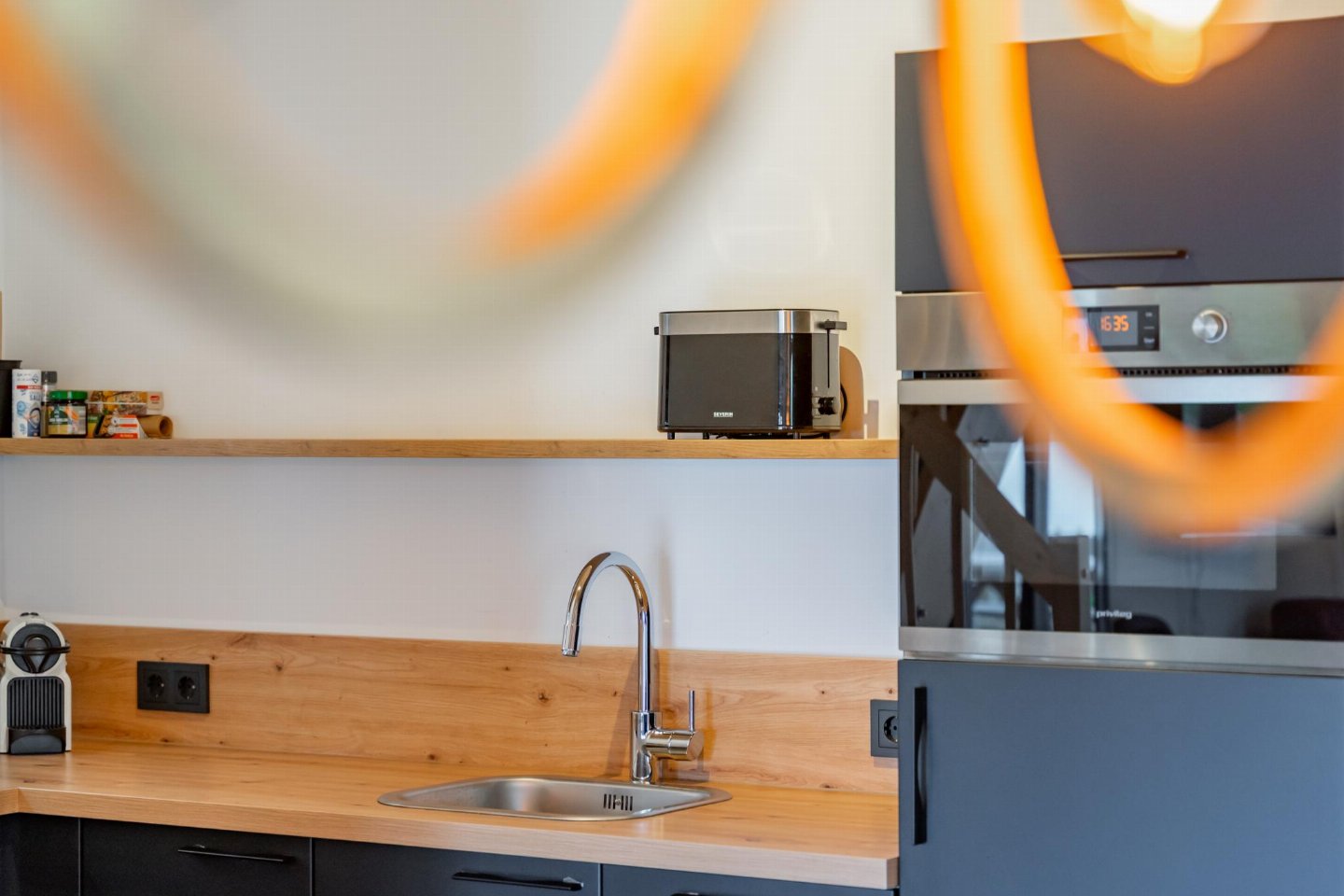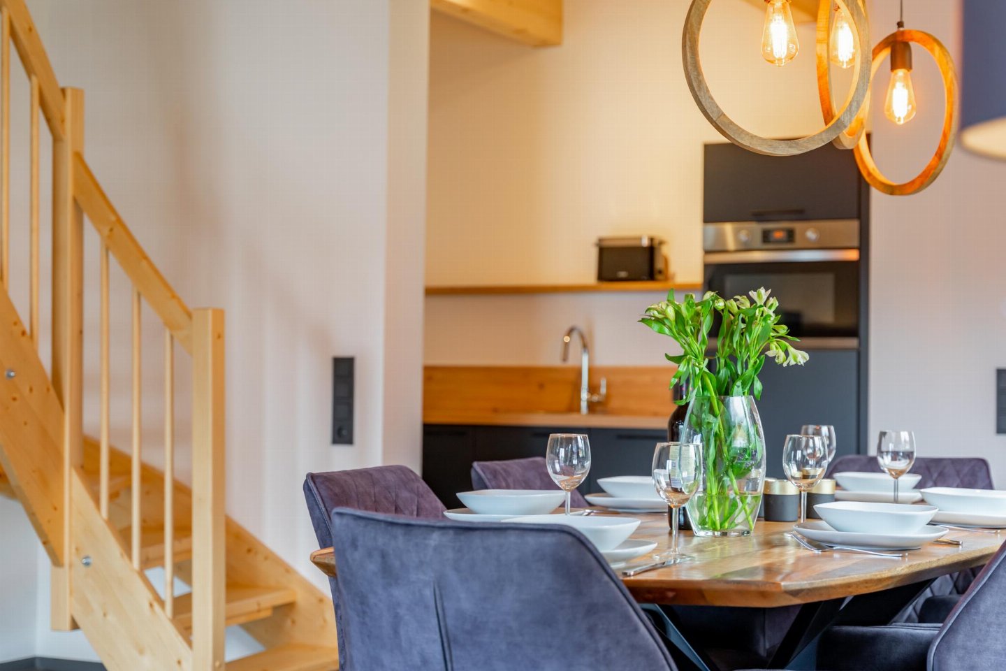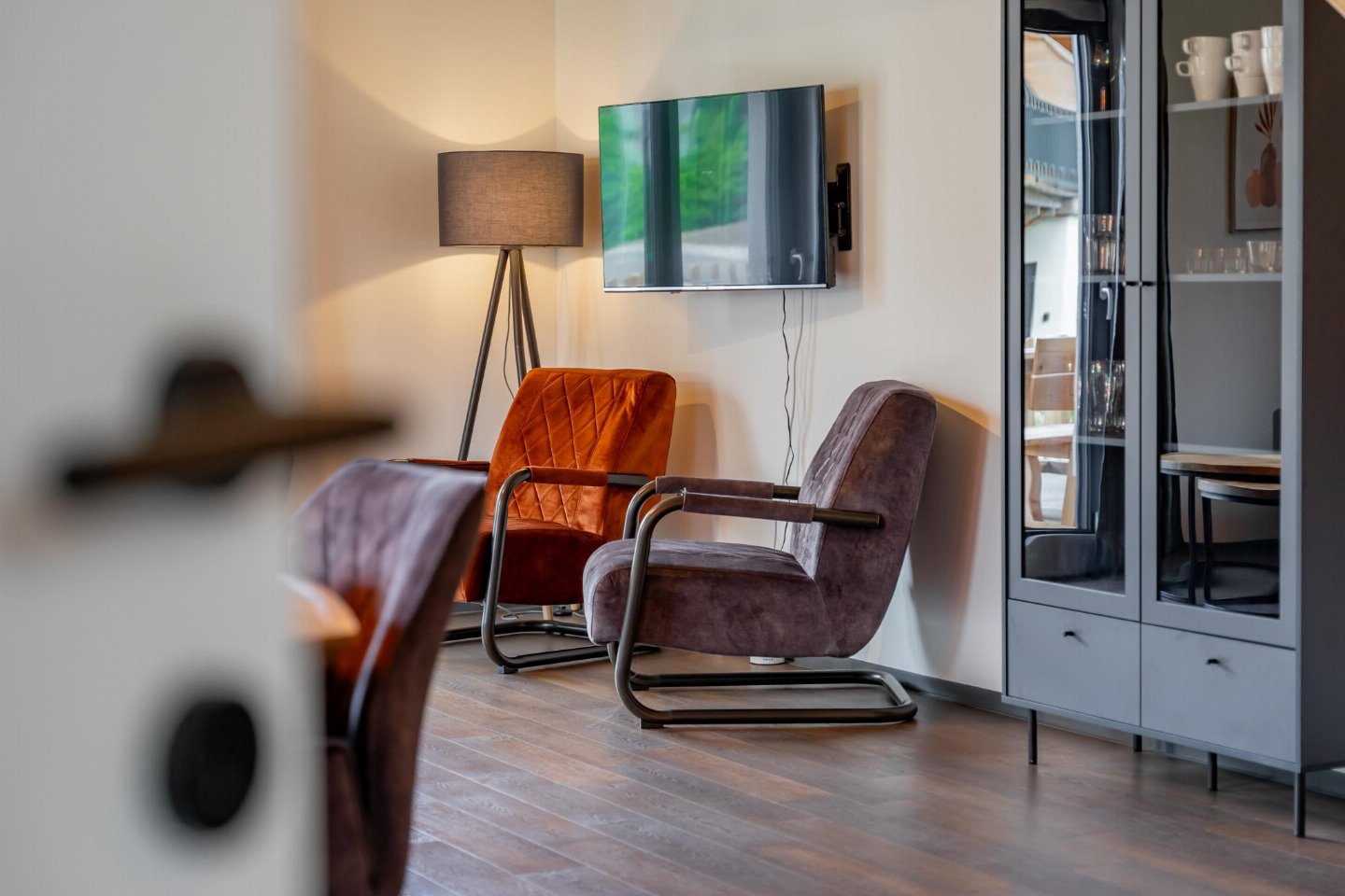 Begane grond: woonkamer met TV, eettafel(6 personen), zithoek , open keuken met kookplaat, waterkoker, afzuigkap, koffiezetapparaat(filtermaling), oven, afwasmachine, koel-/vriescombinatie , toilet met wastafel, wc , terras(privé), 1x kinderstoel
