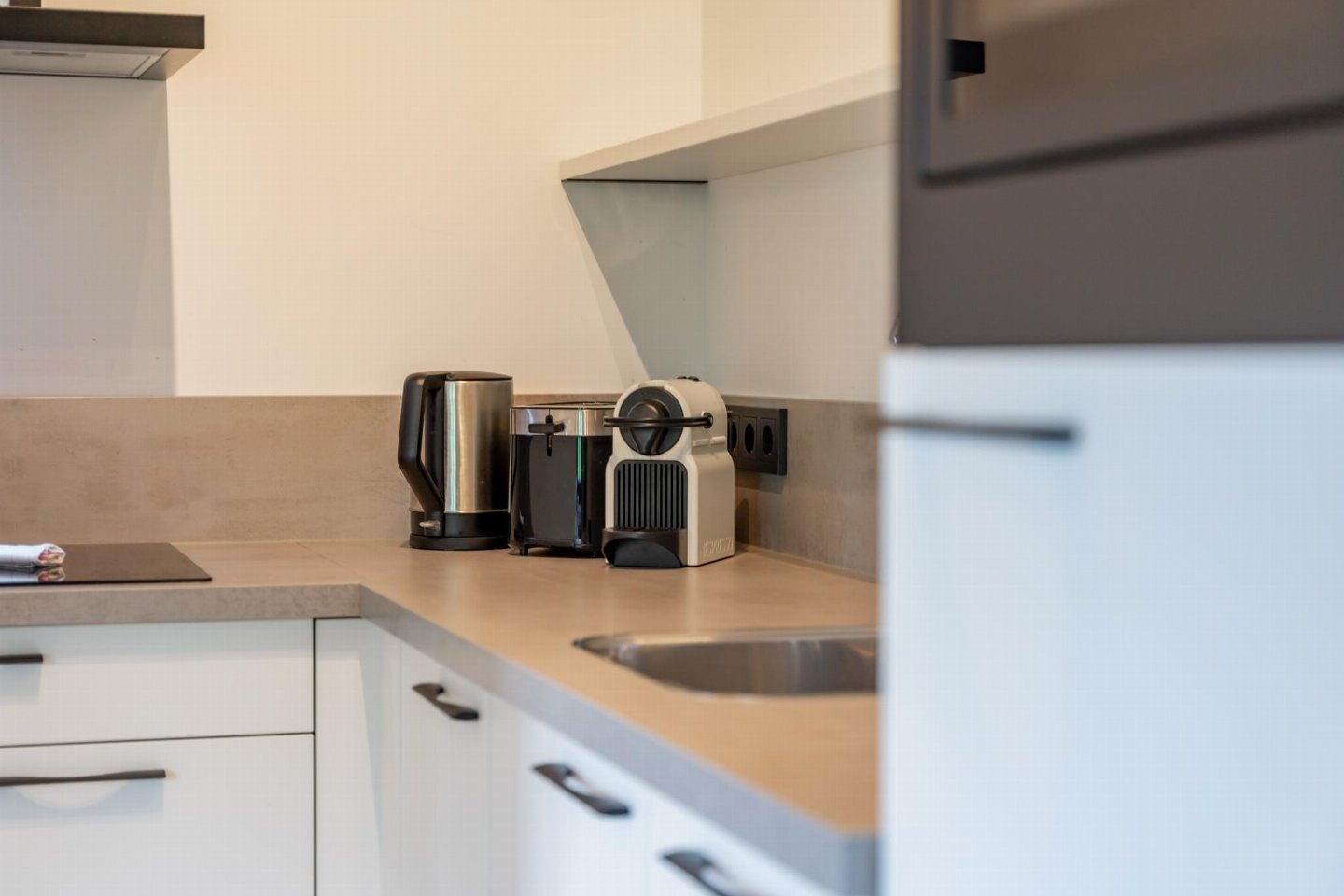 Begane grond: woonkamer met TV, eettafel(6 personen), zithoek , open keuken met kookplaat, waterkoker, afzuigkap, koffiezetapparaat(filtermaling), oven, afwasmachine, koel-/vriescombinatie , toilet met wastafel, wc , terras(privé)