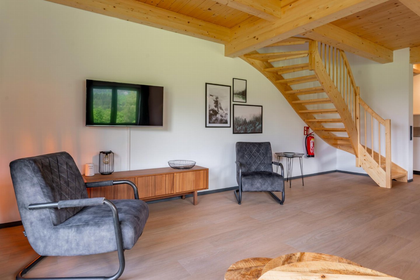 Op de 1e etage: slaapkamer met 2-pers. bed, TV , slaapkamer met 2-pers. bed, stapelbed, TV , badkamer met douche, wastafel, wc , relaxruimte met sauna(privé) , 2x balkon